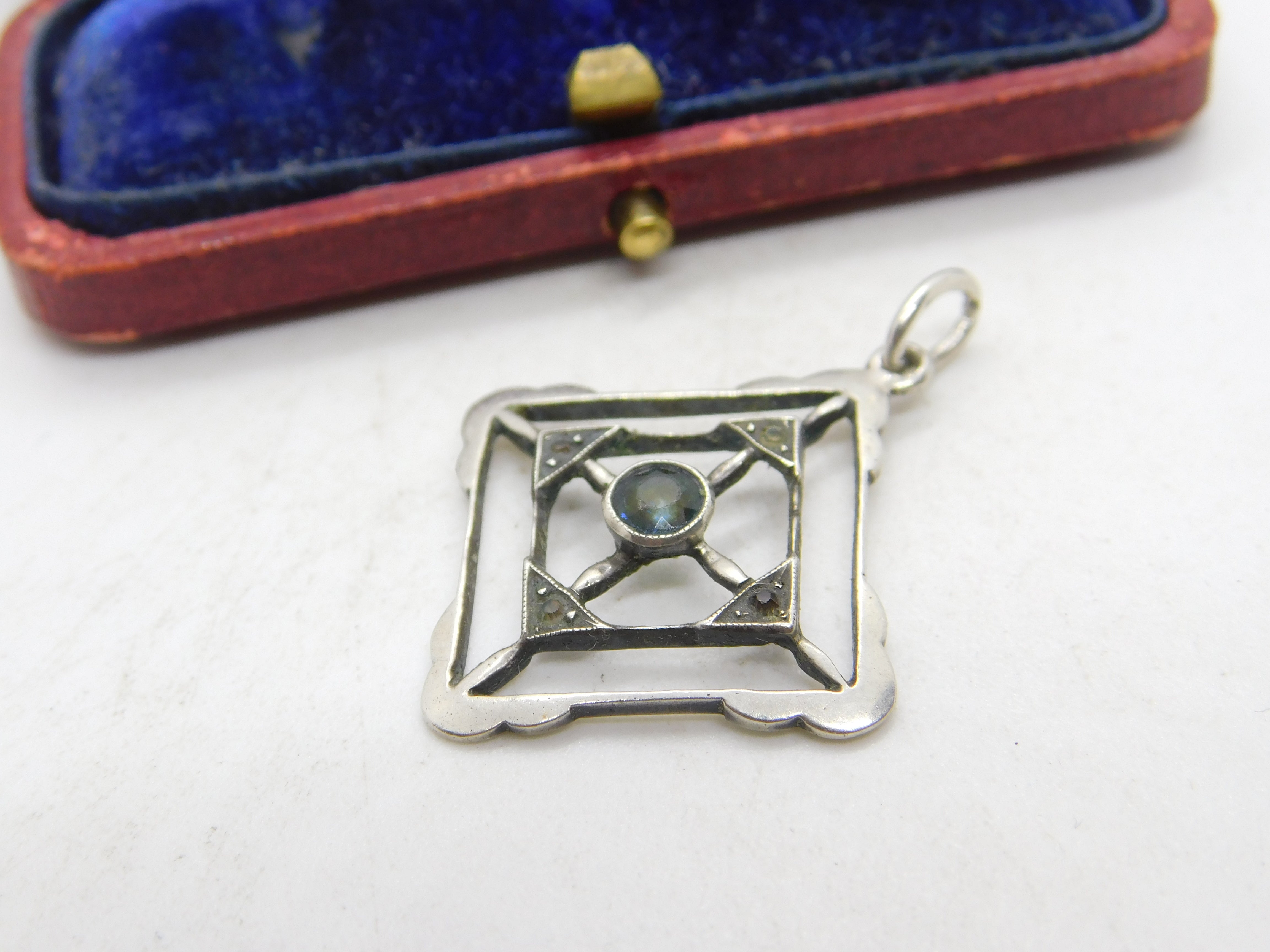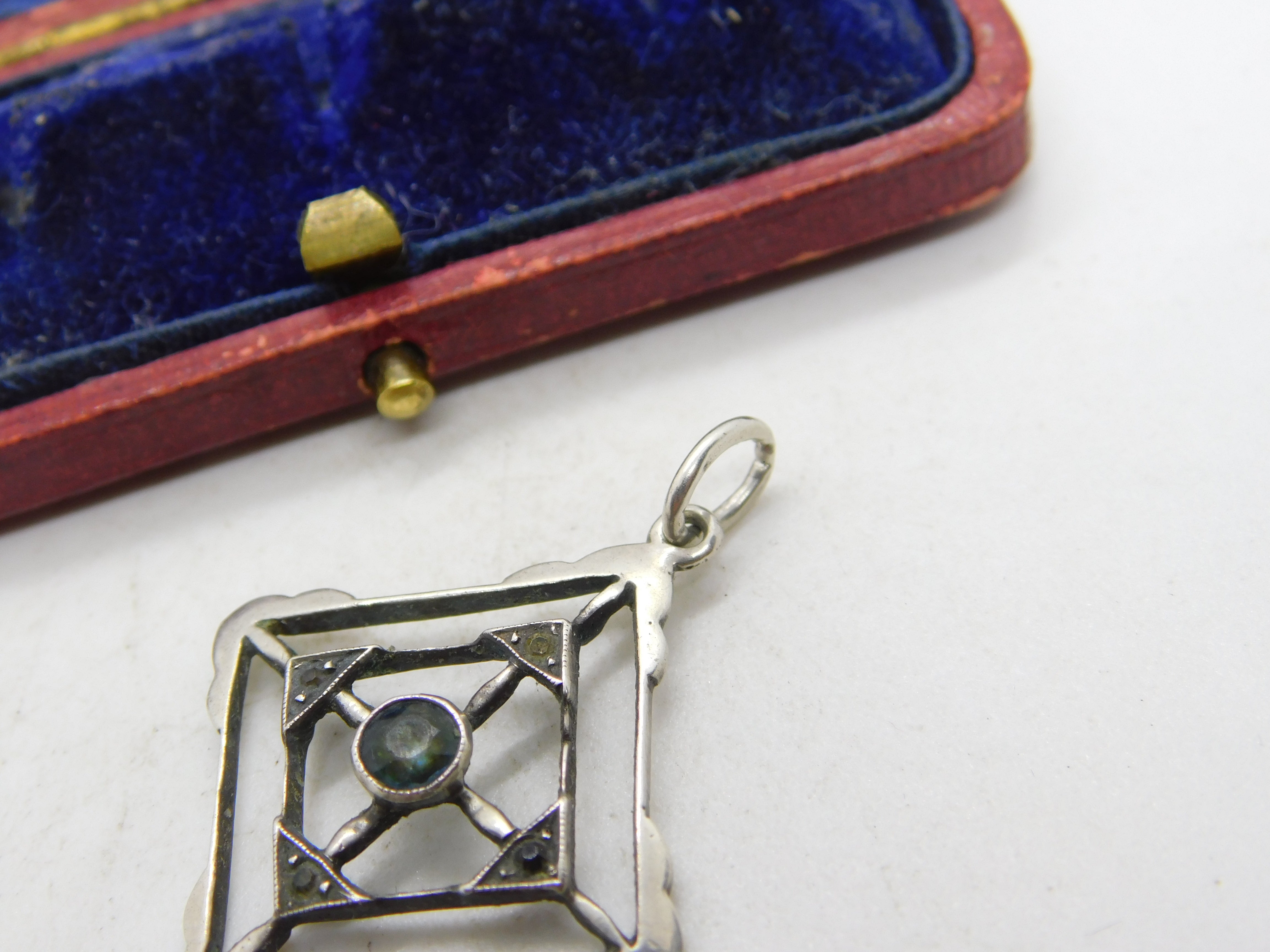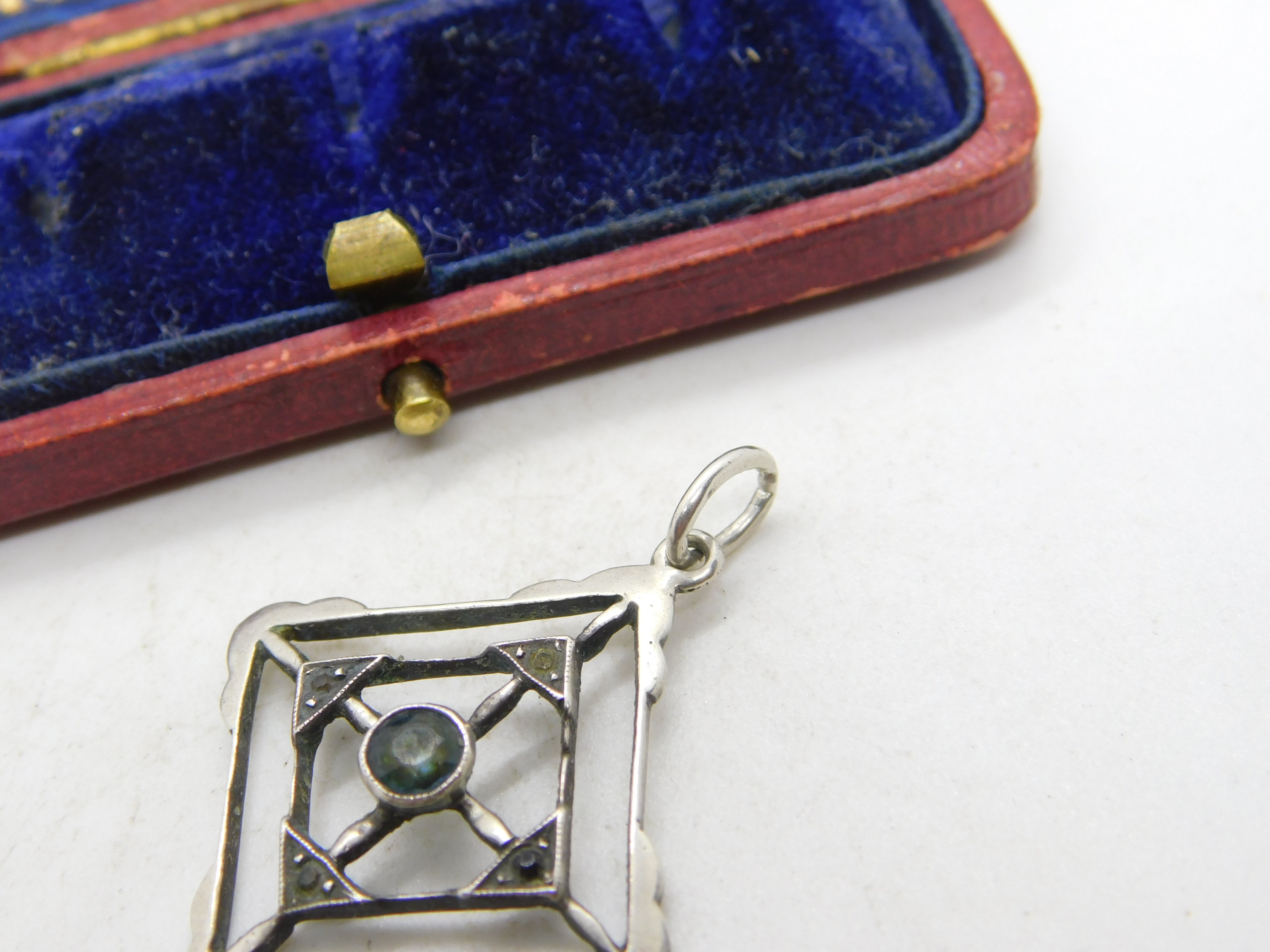 Details: A fantastic and wonderfully designed antique Edwardian sterling silver lavalier drop pendant set with topaz and spinel stones c1910, the silver has been XRF tested. This is a wonderful item that would make a perfect gift or addition to any collection. The BOX pictured is for PRESENTATION ONLY and is NOT included in the listings but used to frame the pictures unless specifically stated otherwise.