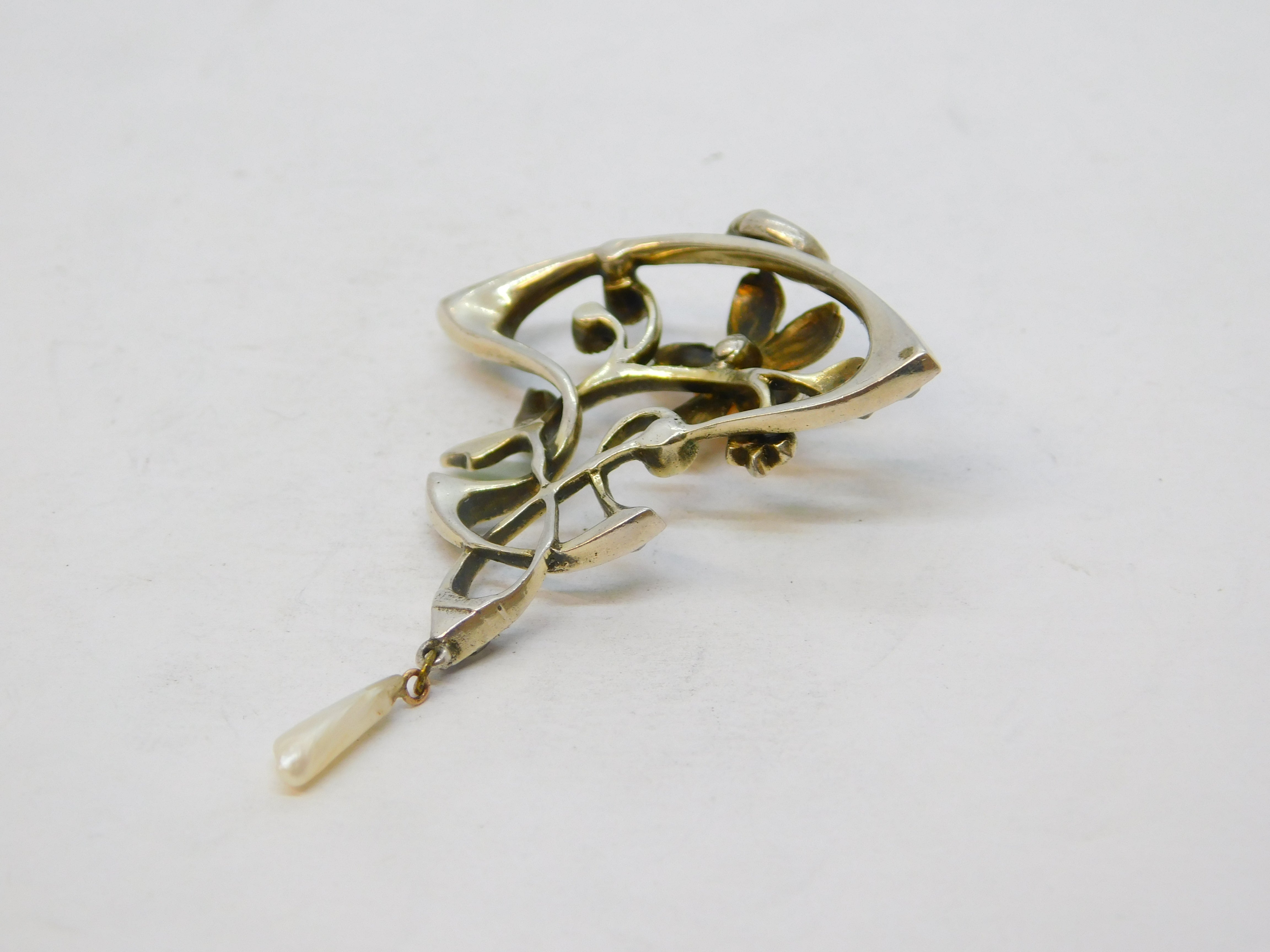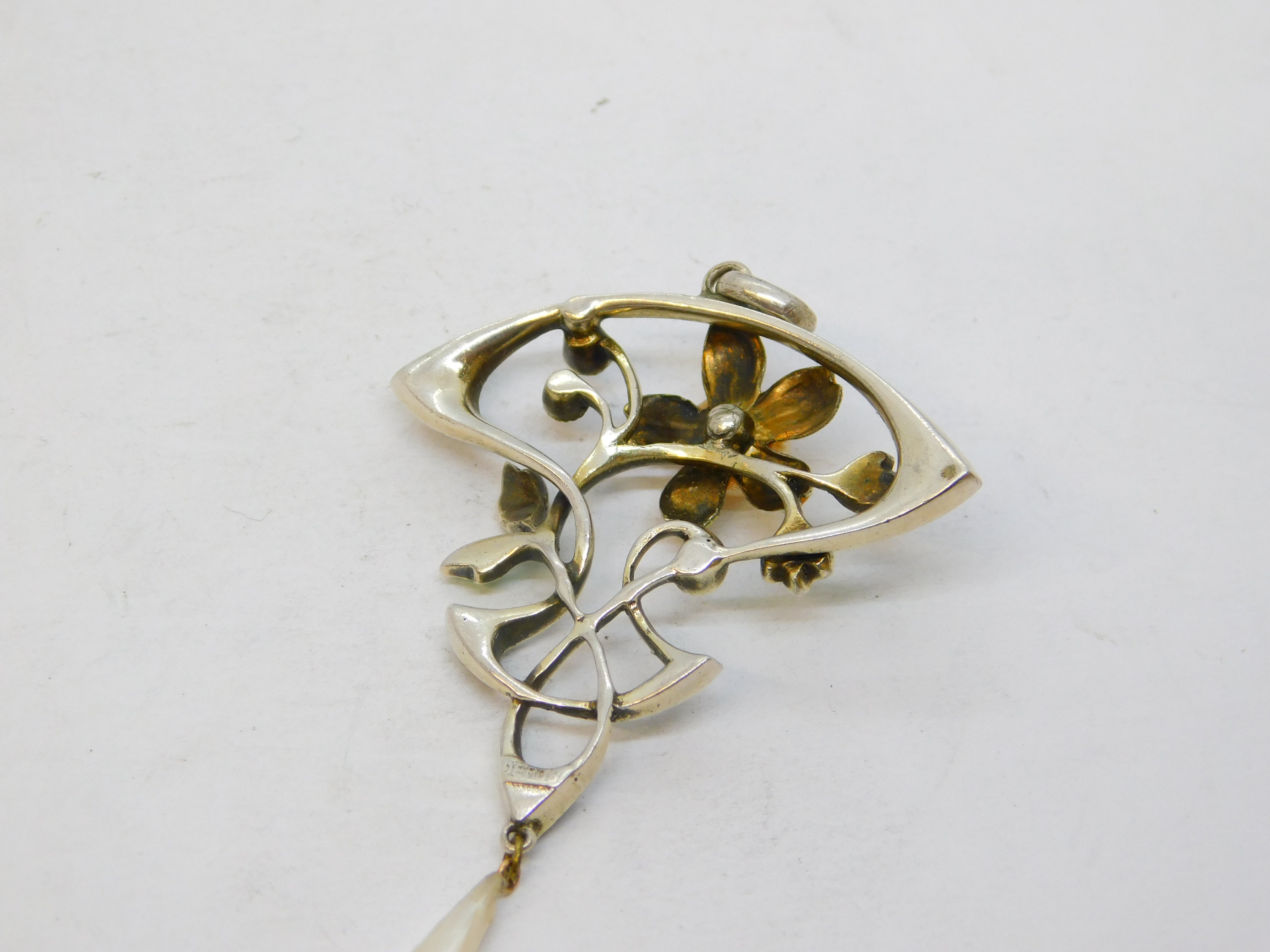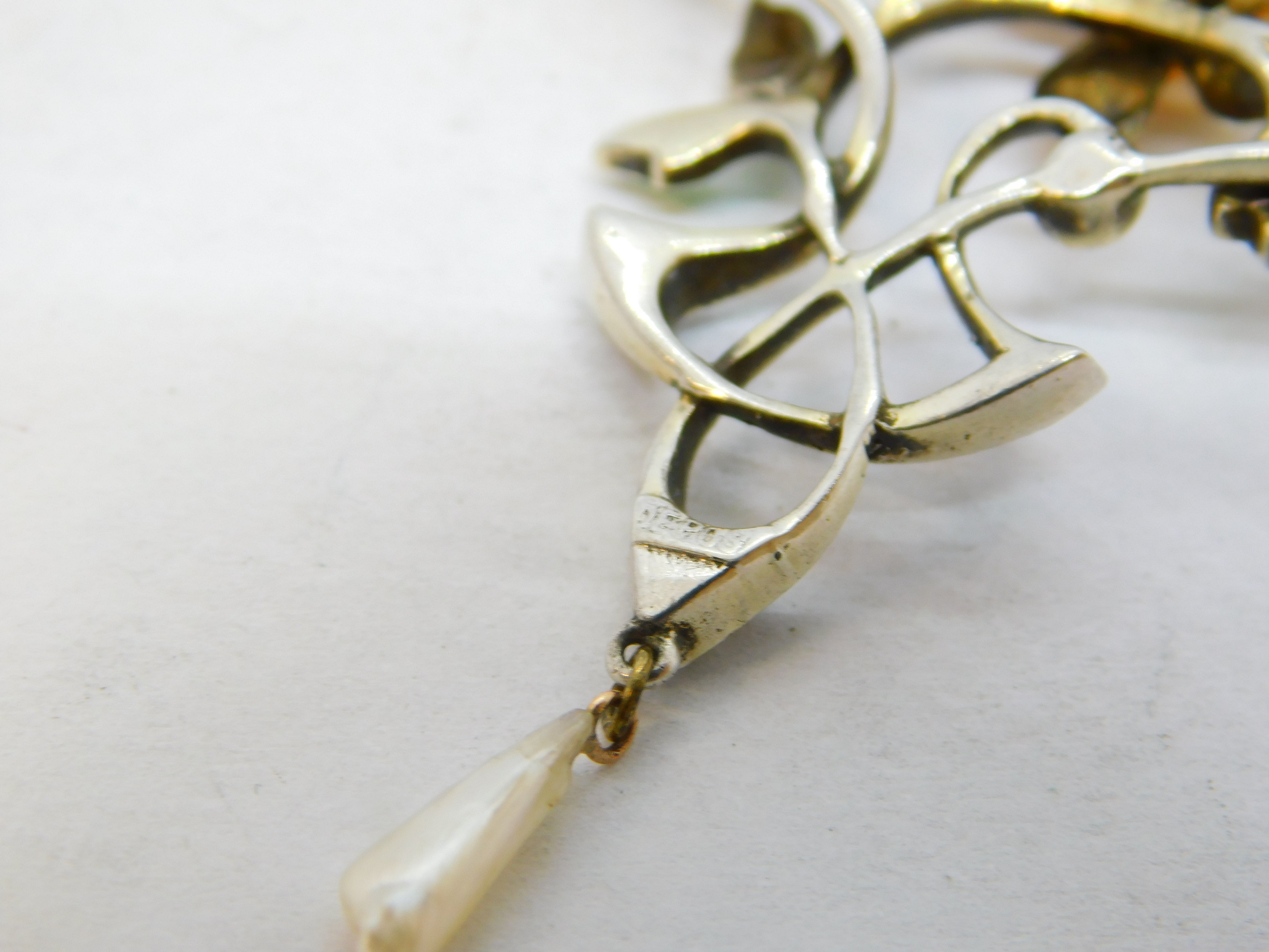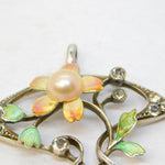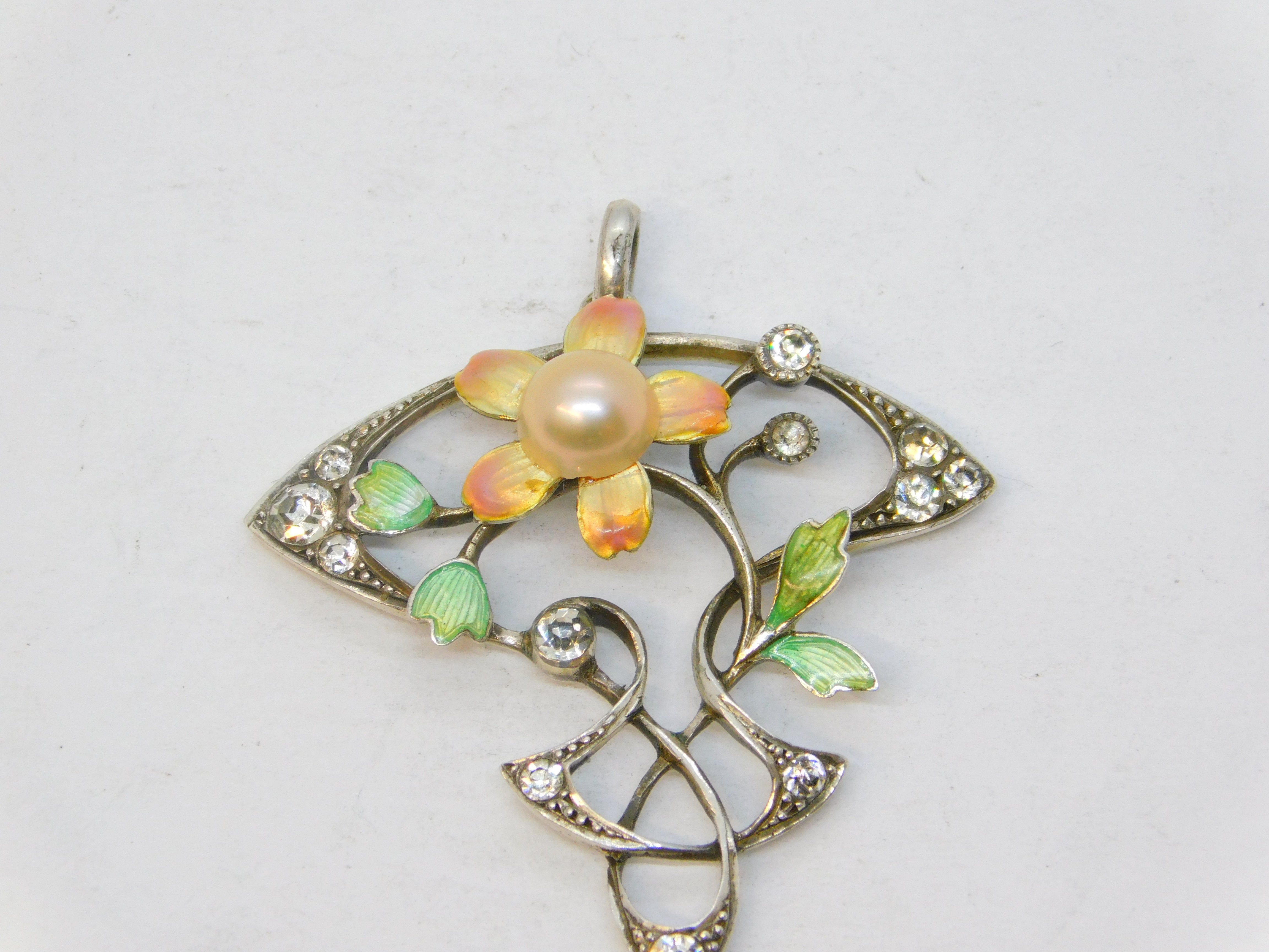 French 19th Century, Sterling Silver, Paste, Enamel, Pearl Floral Pendant c1880