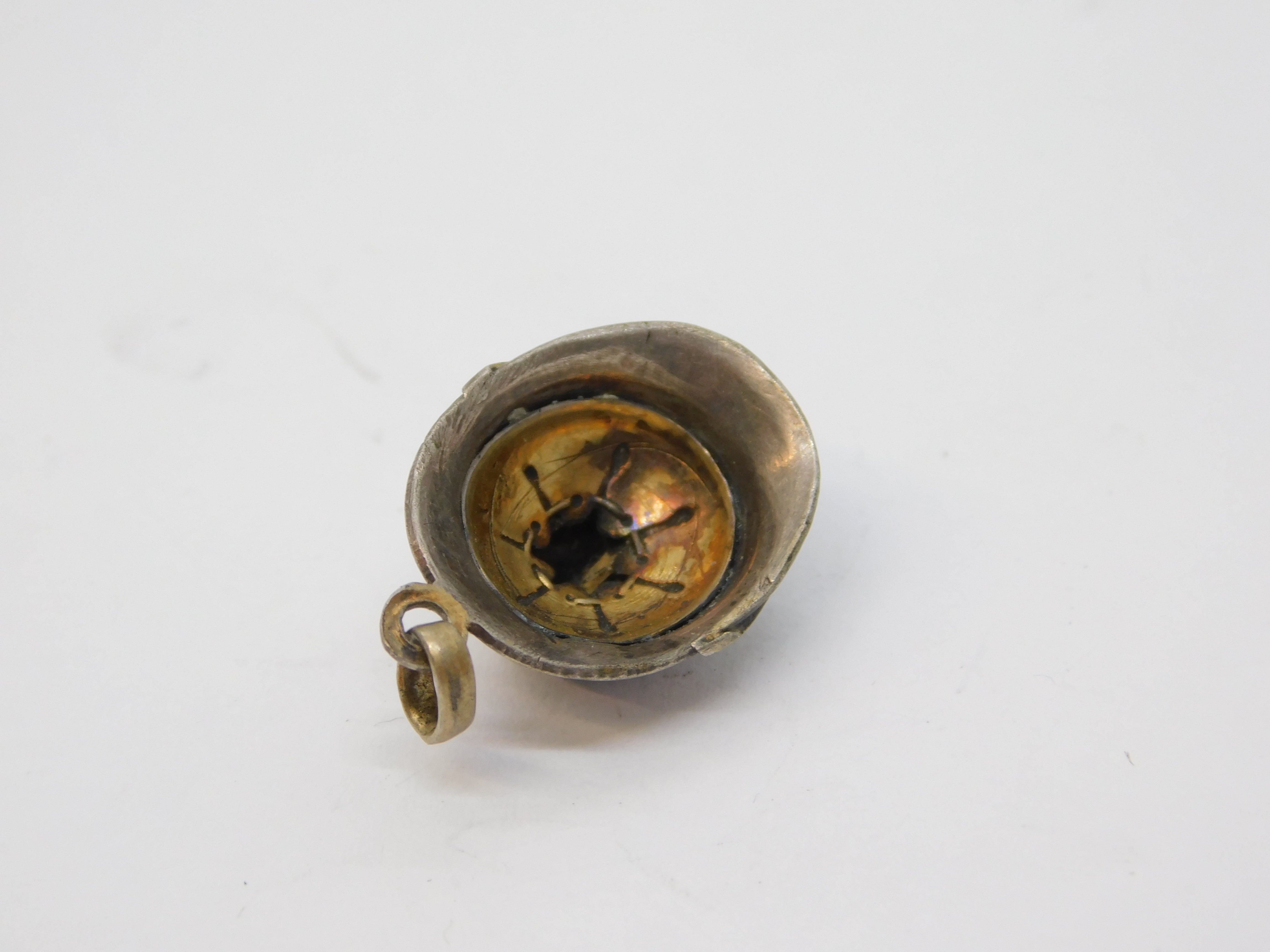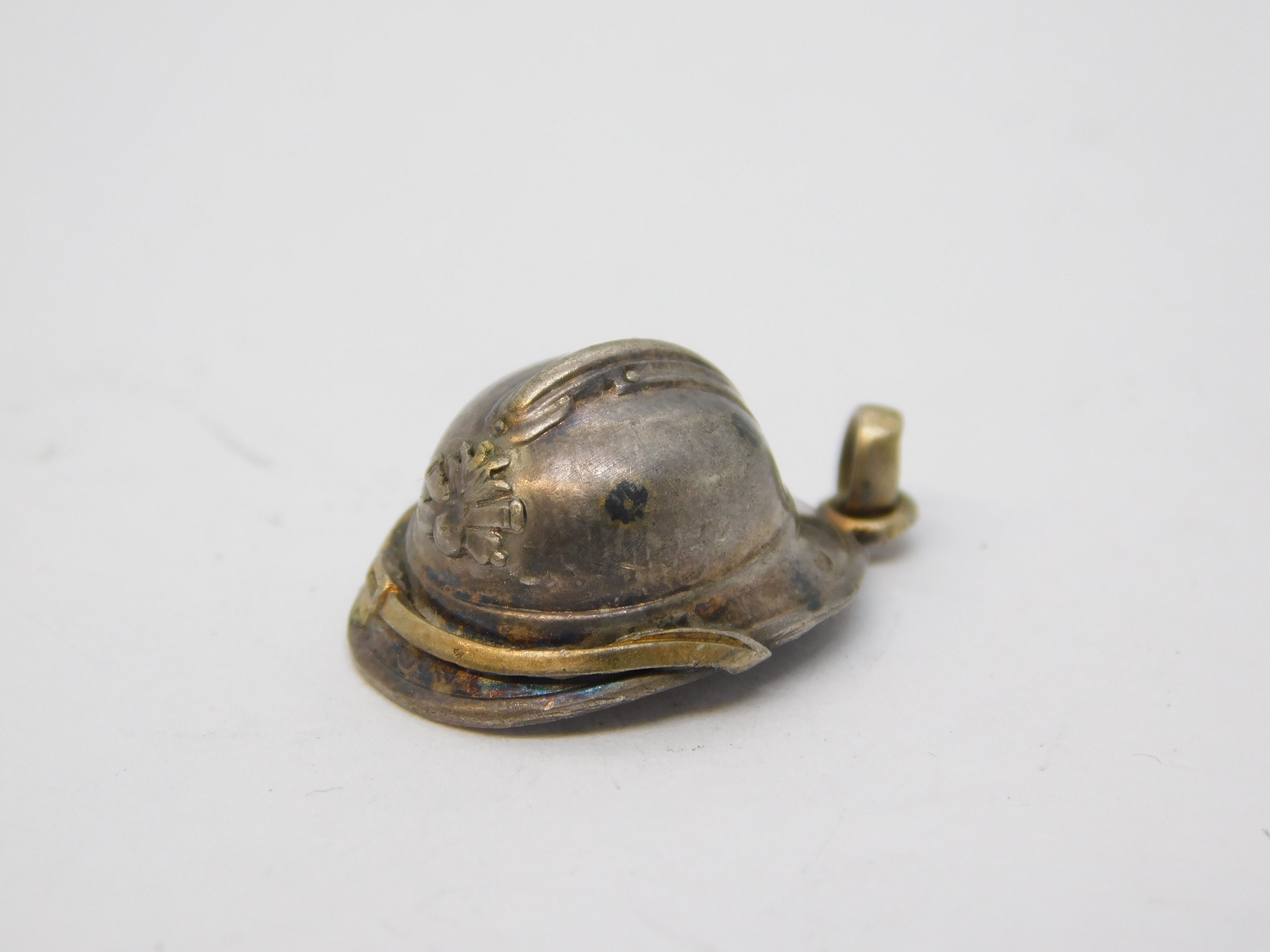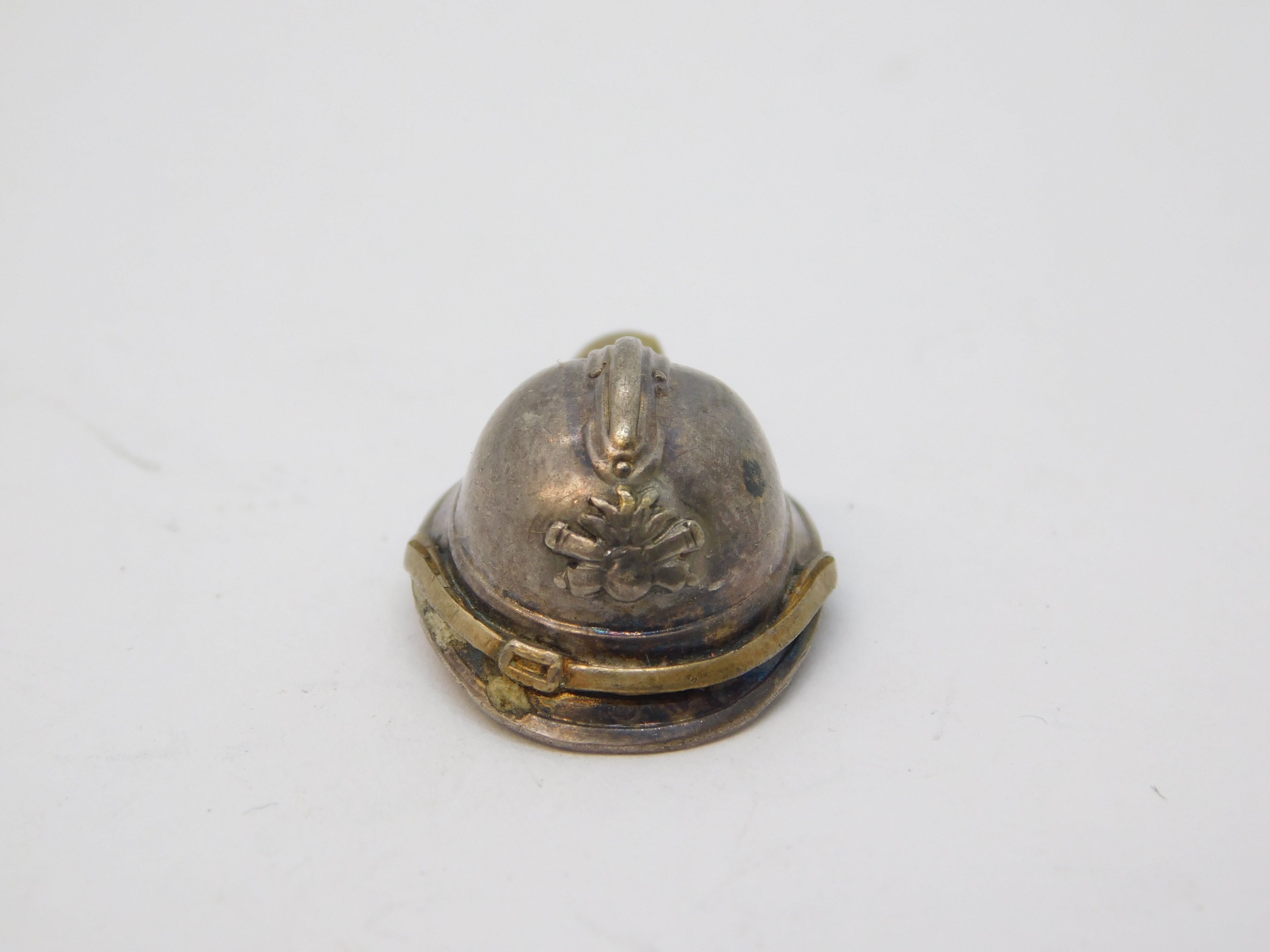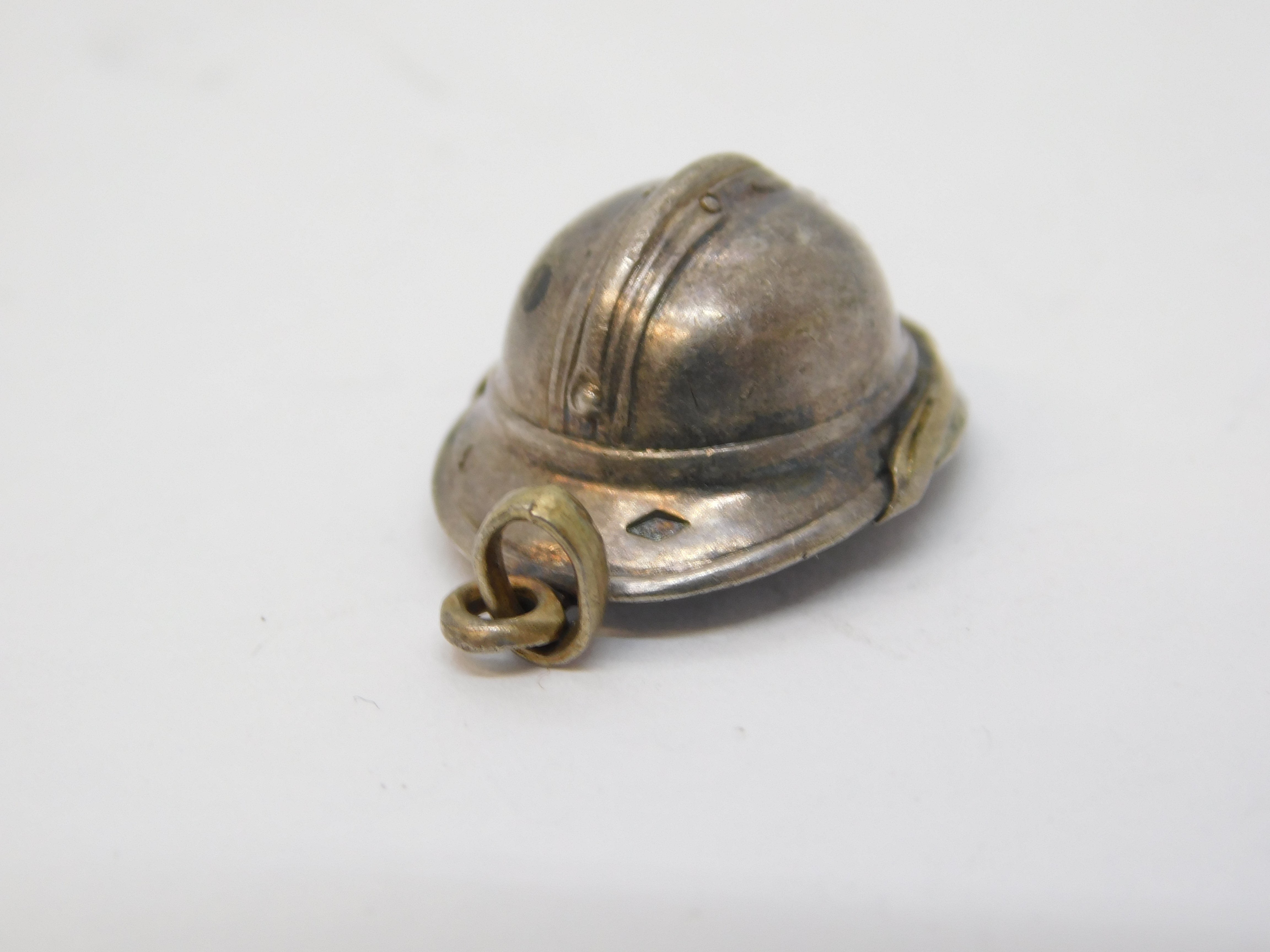 French Sterling Silver Miniature 'WW1 Adrian Helmet' Charm Antique c1915
