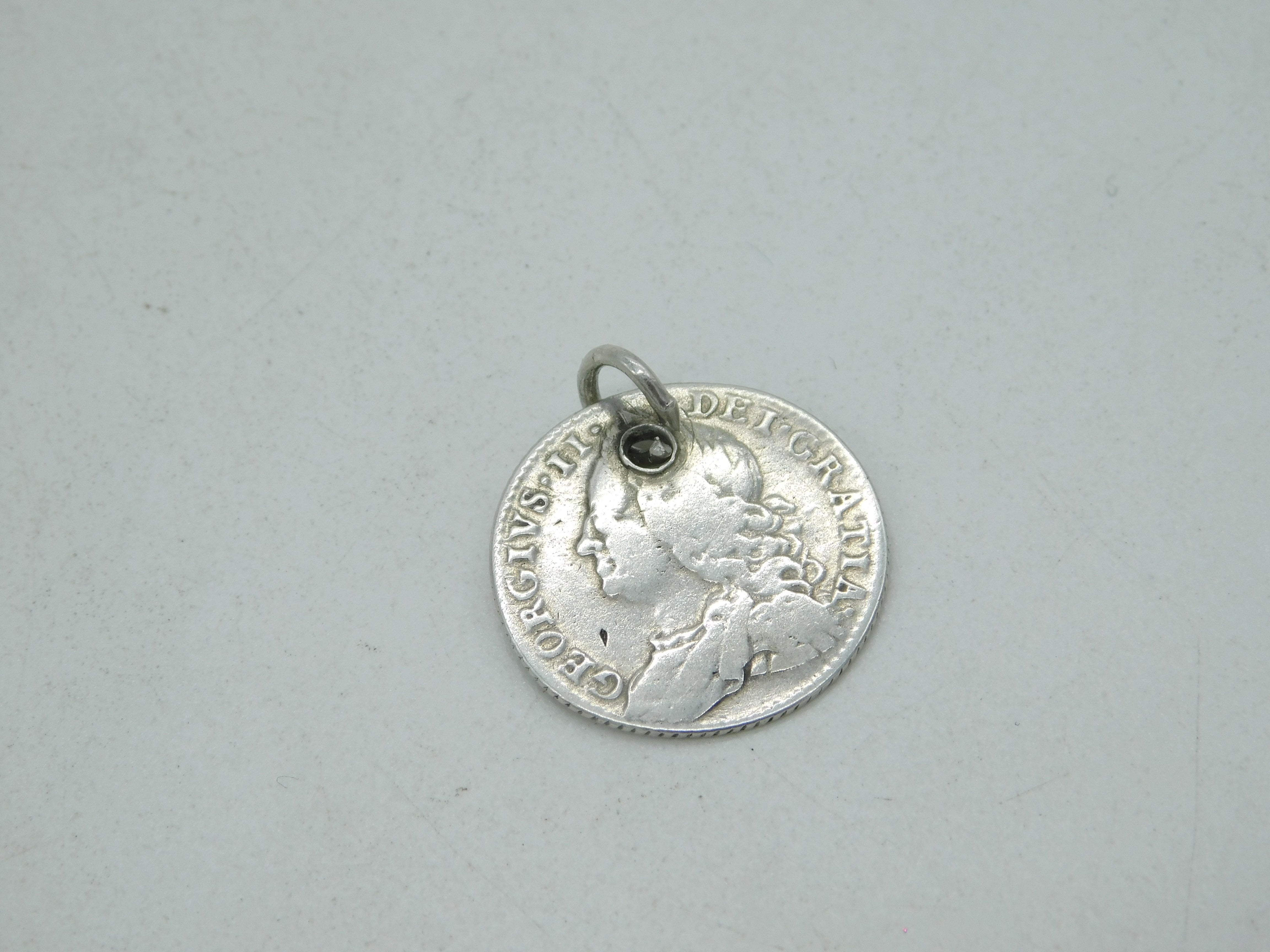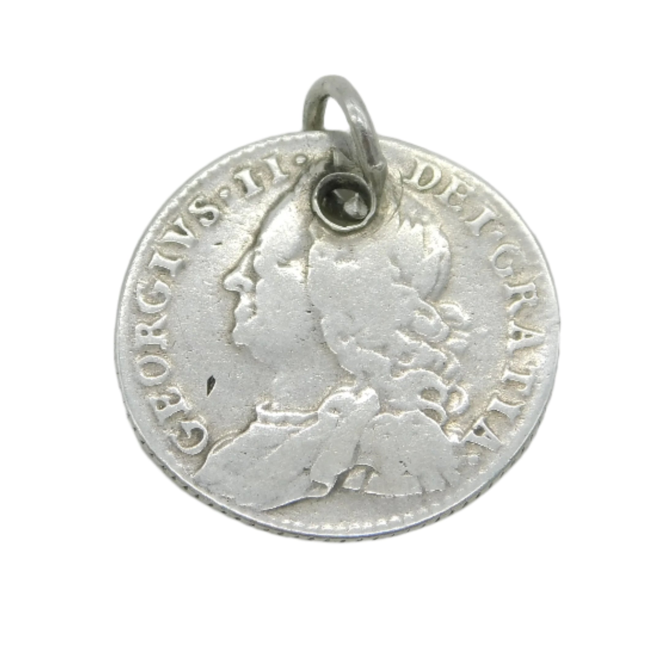 George II Sterling Silver 1757 LIMA Shilling Coin Charm Fob Antique