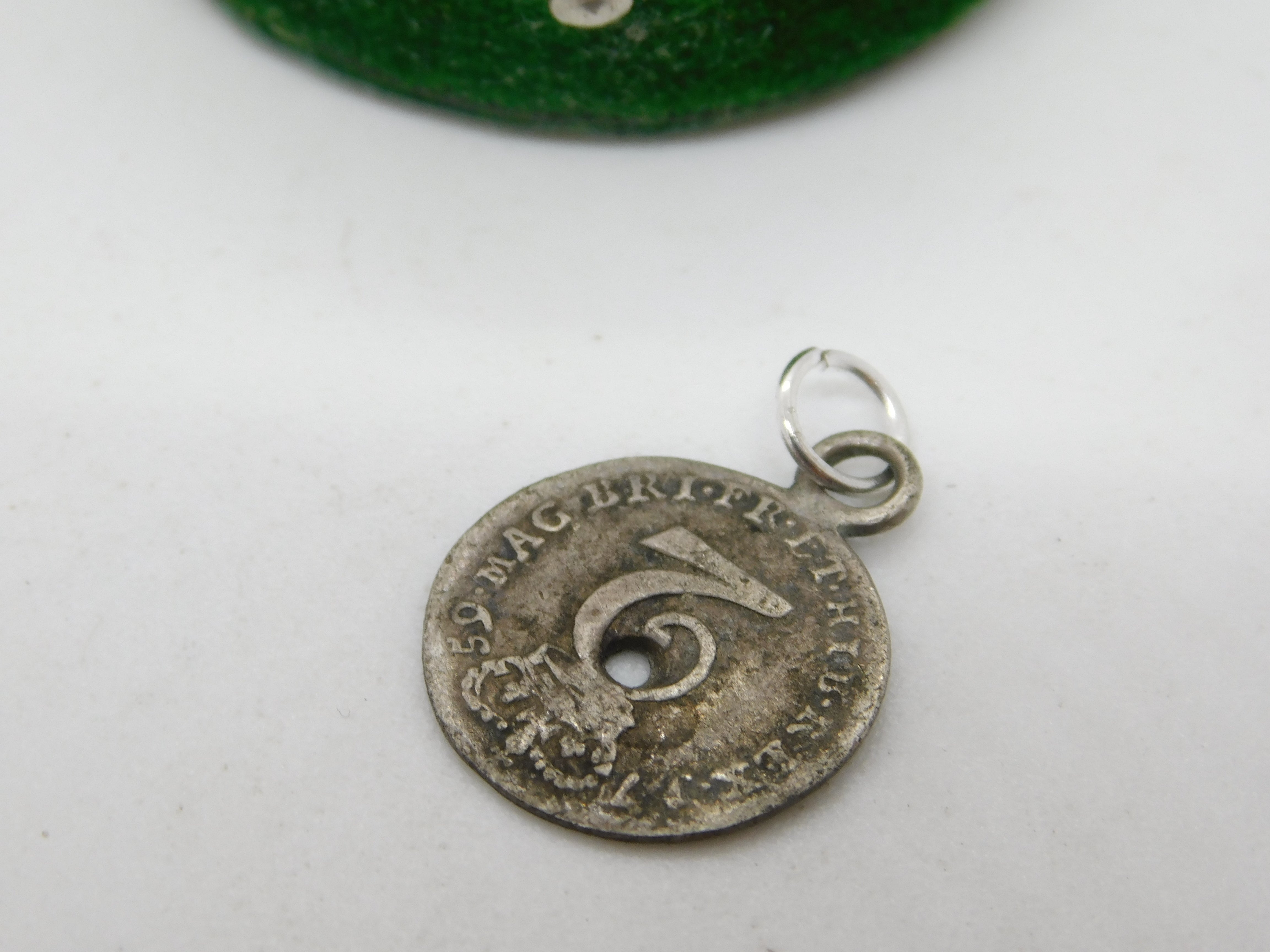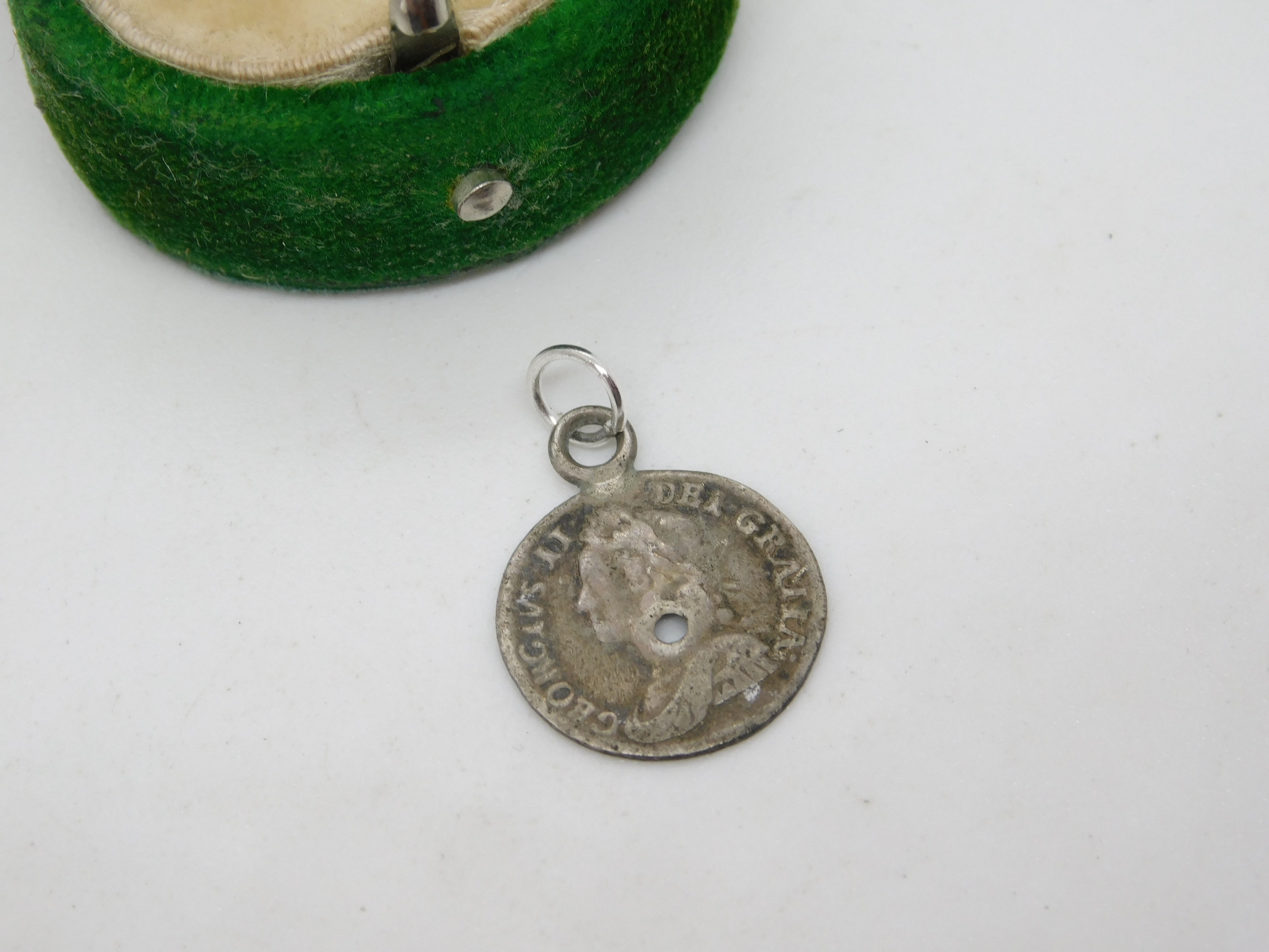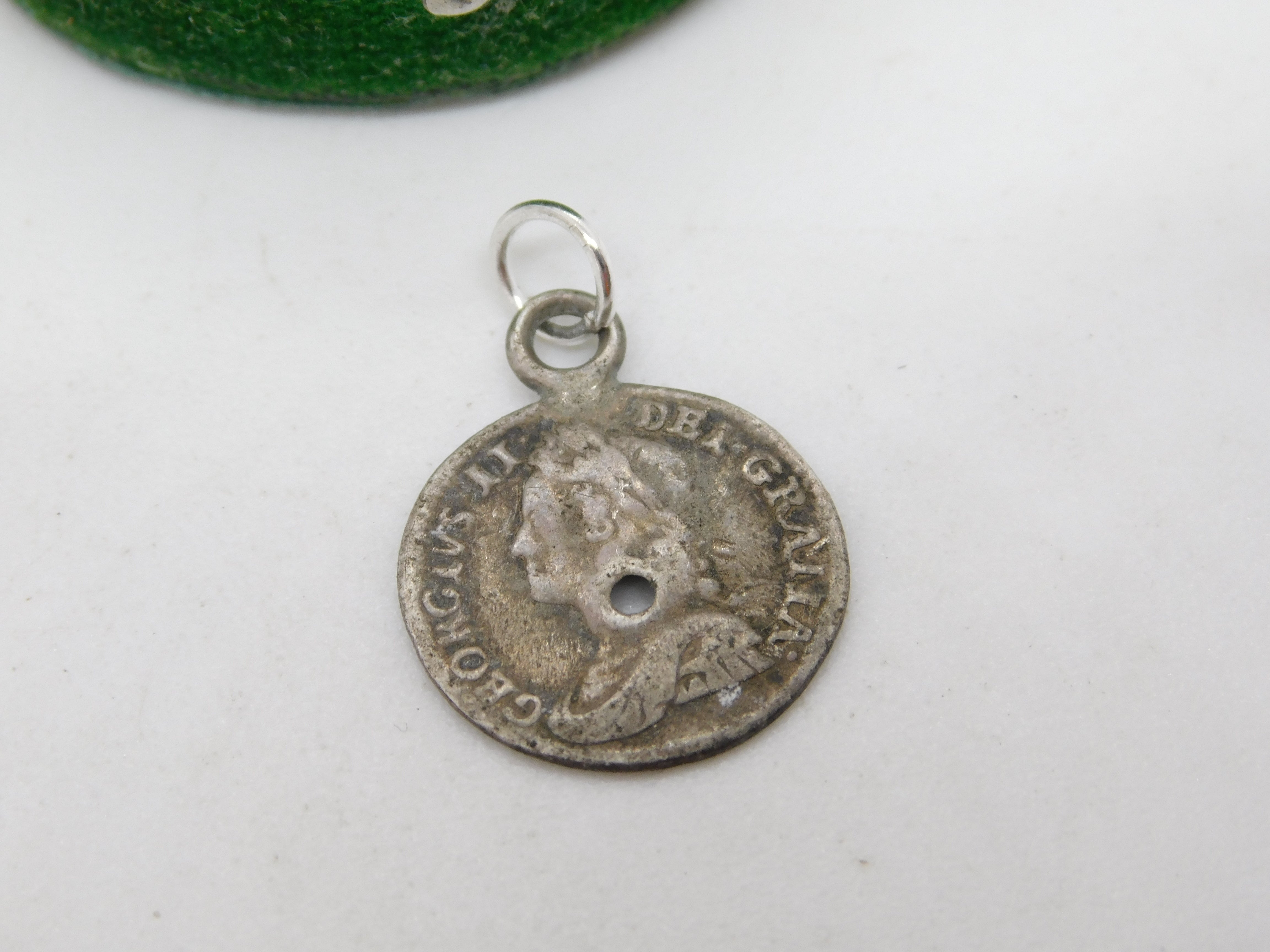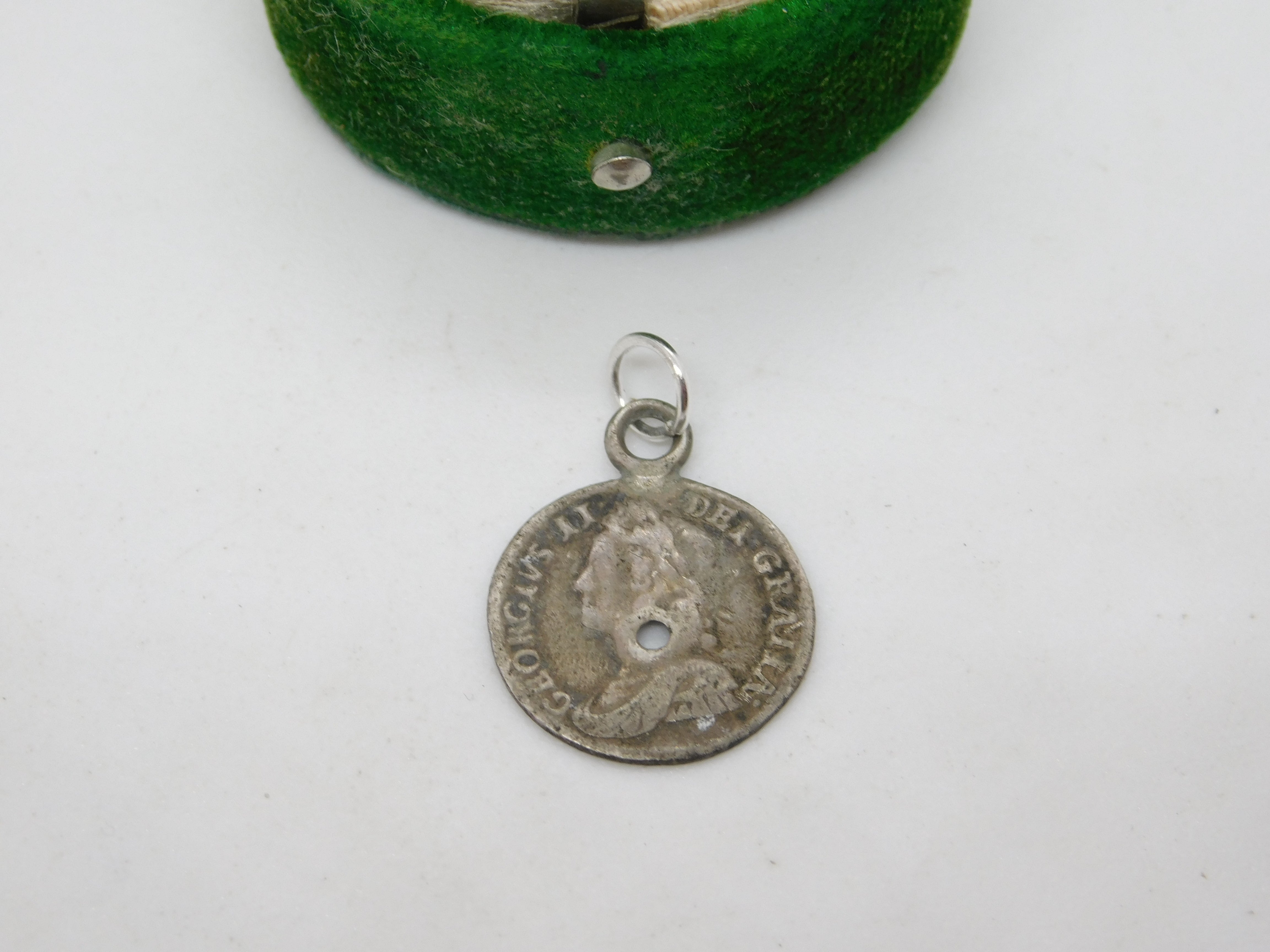 George II Sterling Silver Maundy Two Pence Coin Charm Pendant Antique 1759