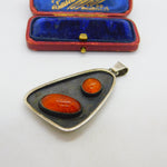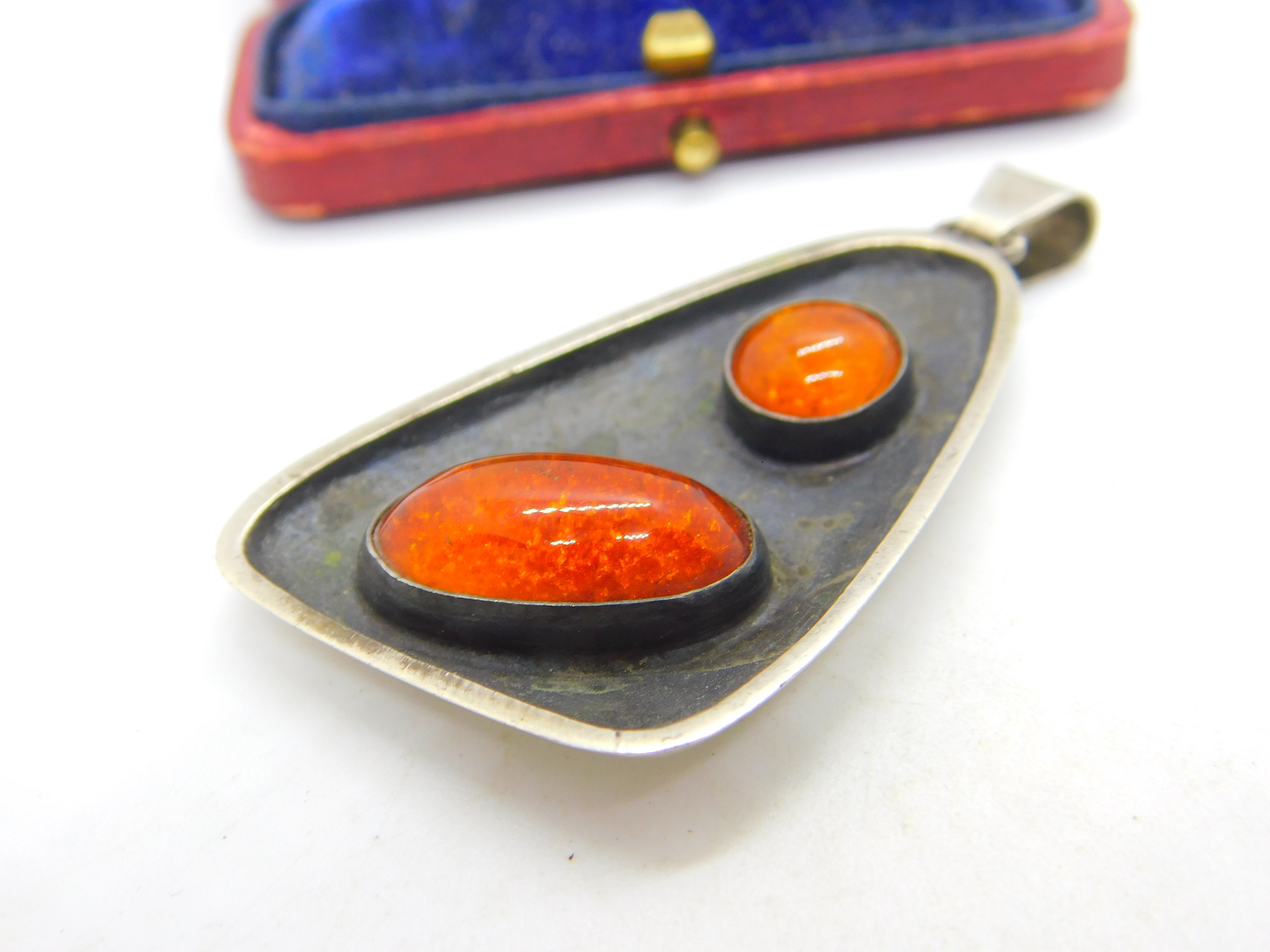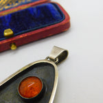 German .835 Grade Silver & Baltic Amber Modernist Drop Pendant Vintage