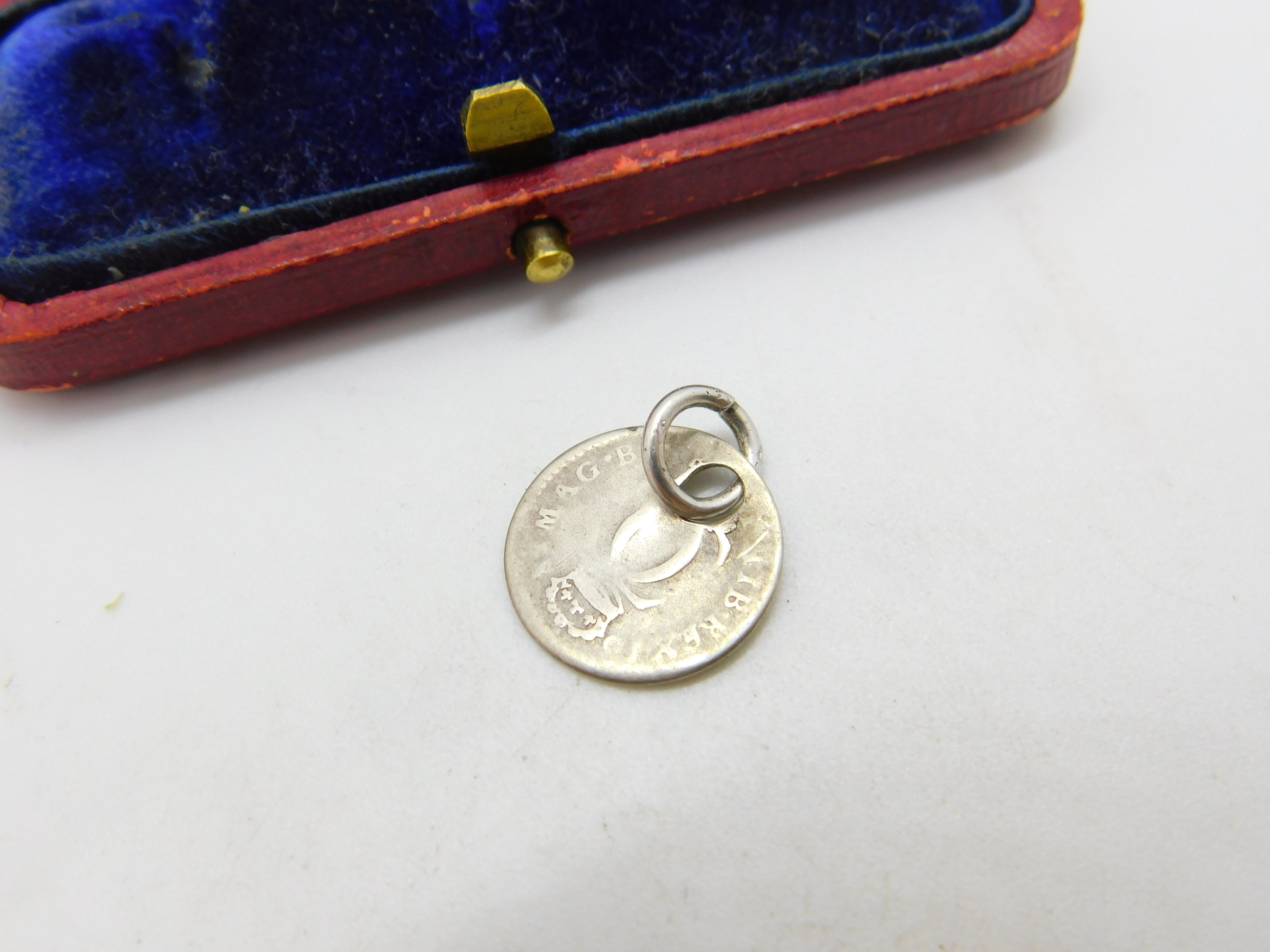 Details: A fantastic and wonderfully designed antique King Charles II sterling silver maundy two pence coin charm with lovely detailing dated c1679. This is a wonderful item that would make a perfect gift or addition to any collection. The BOX pictured is for PRESENTATION ONLY and is NOT included in the listings but used to frame the pictures unless specifically stated otherwise.