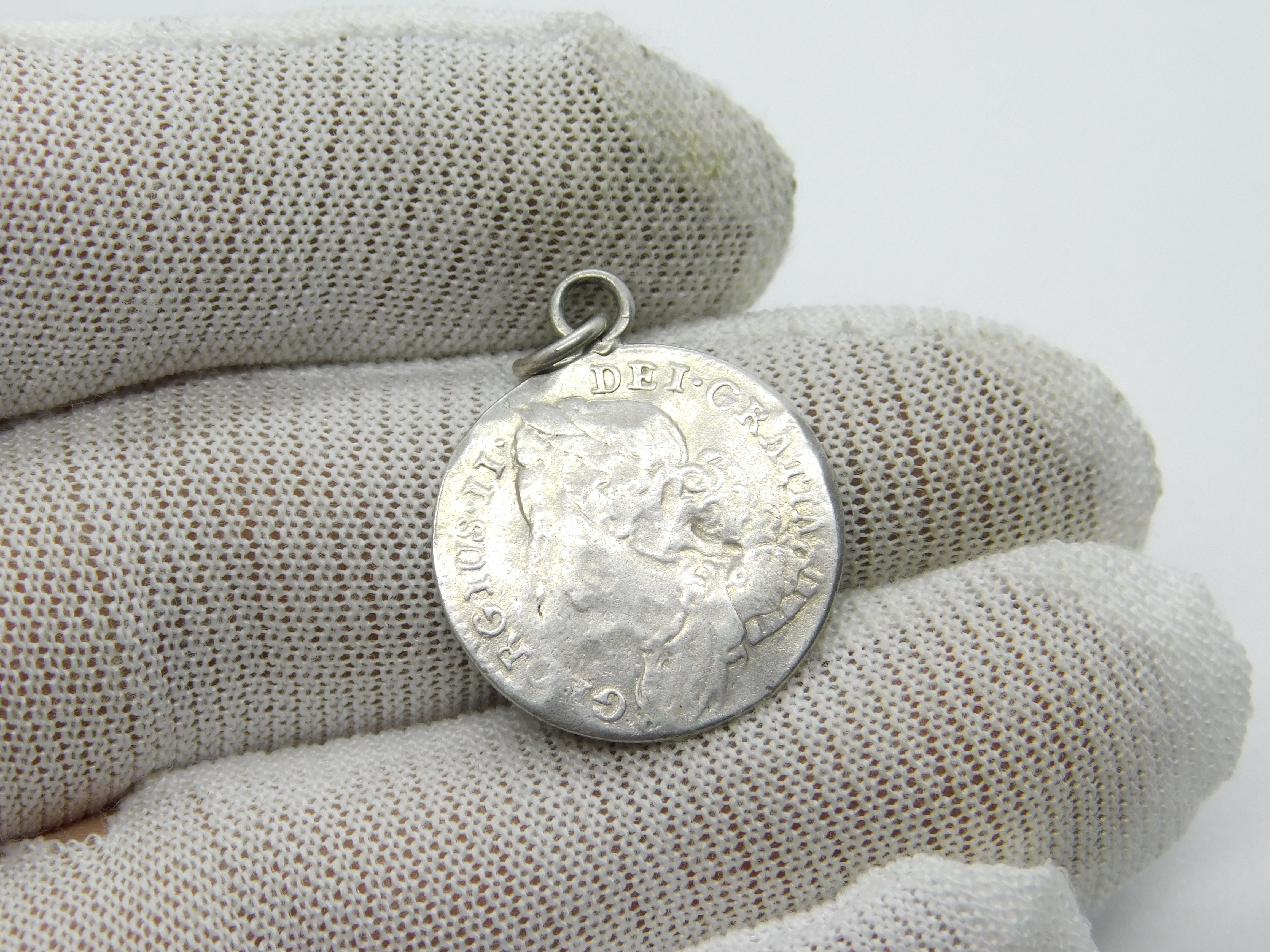 Details: A fantastic and wonderfully designed antique King George II sterling silver shilling coin charm or pendant dated 1745 in fair condition. This is a wonderful item that would make a perfect gift or addition to any collection. The BOX pictured is for PRESENTATION ONLY and is NOT included in the listings but used to frame the pictures unless specifically stated otherwise.