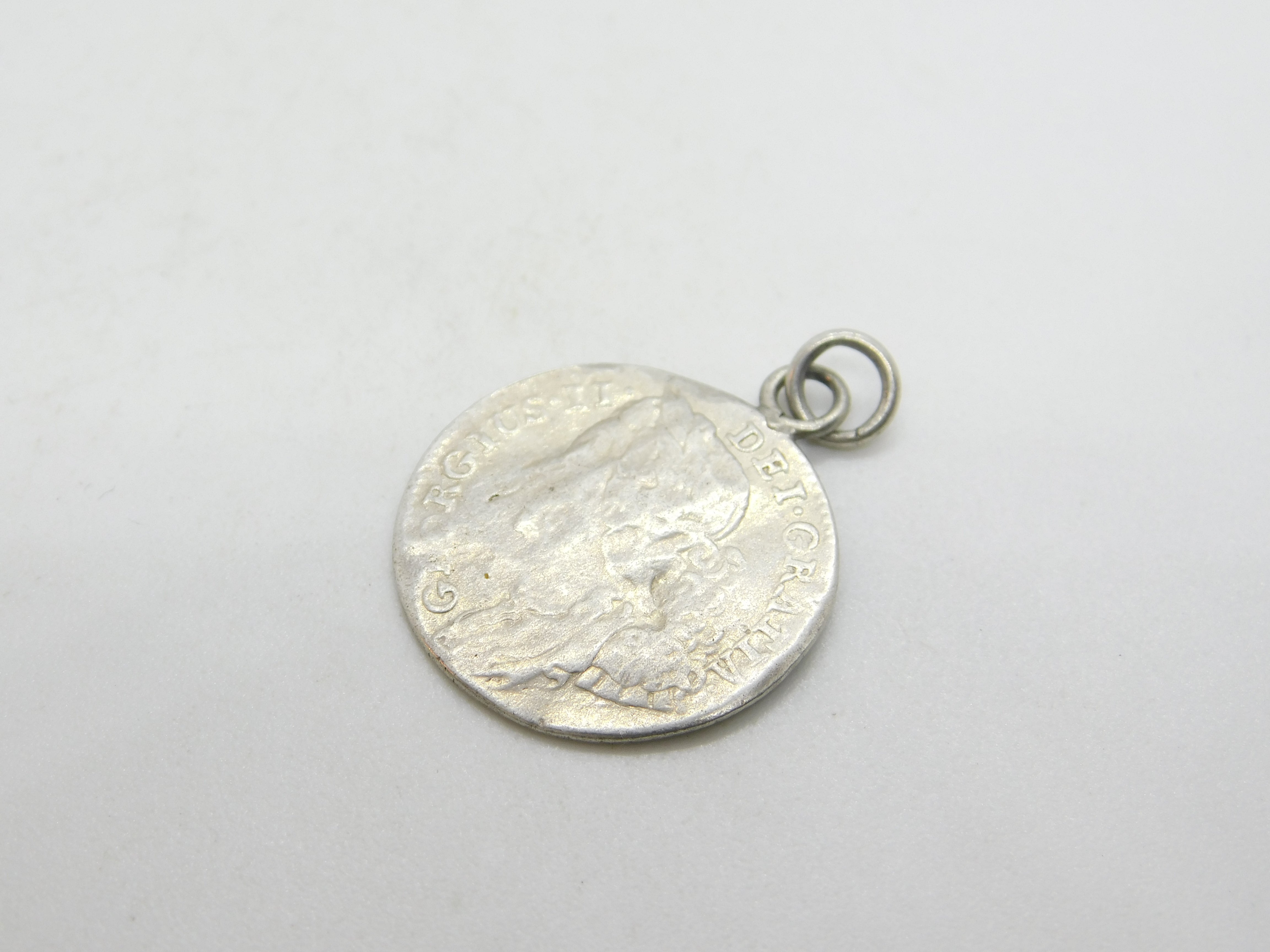 King George II Silver Shilling 1745 Coin Charm or Pendant Fair Condition Antique