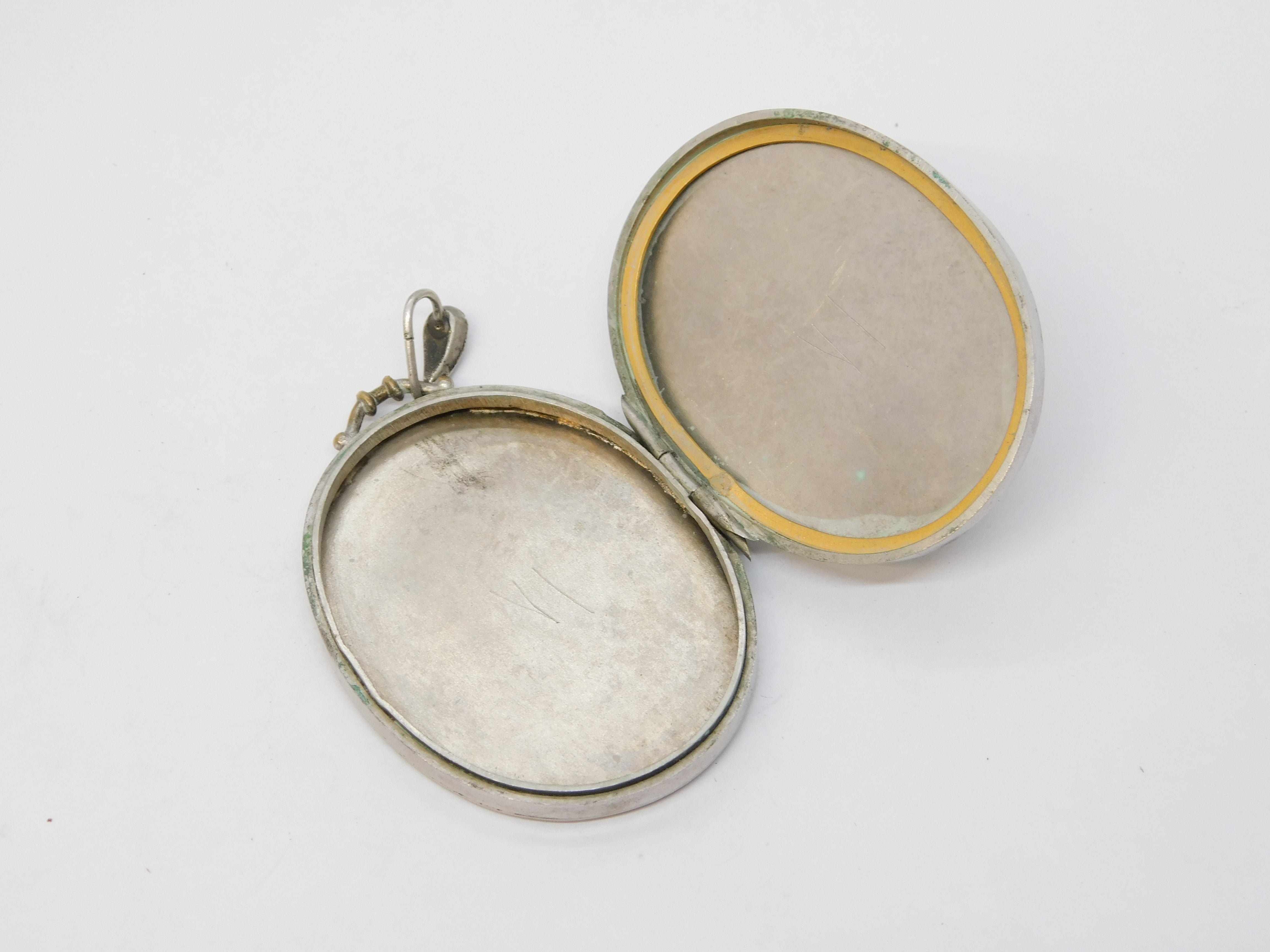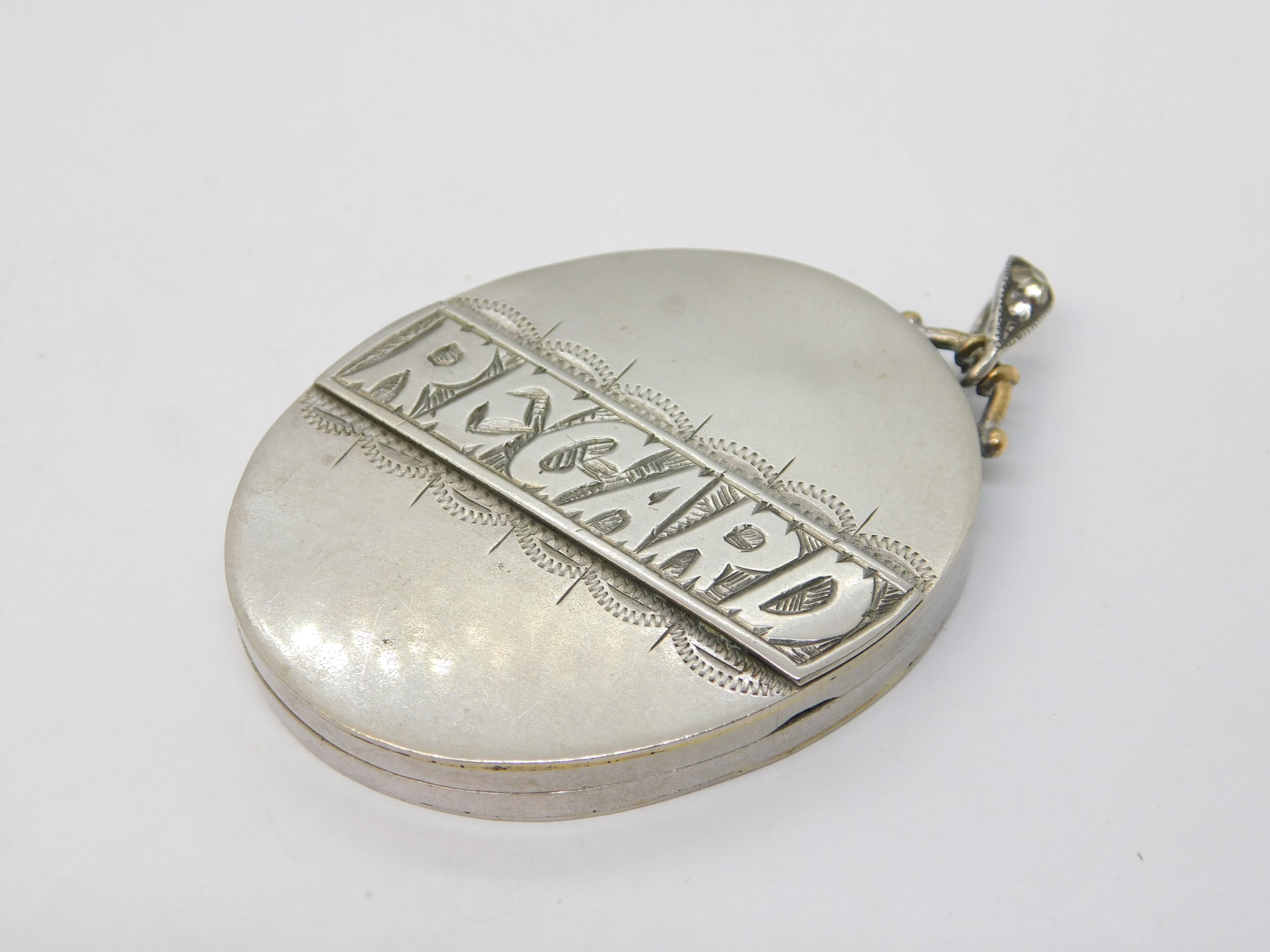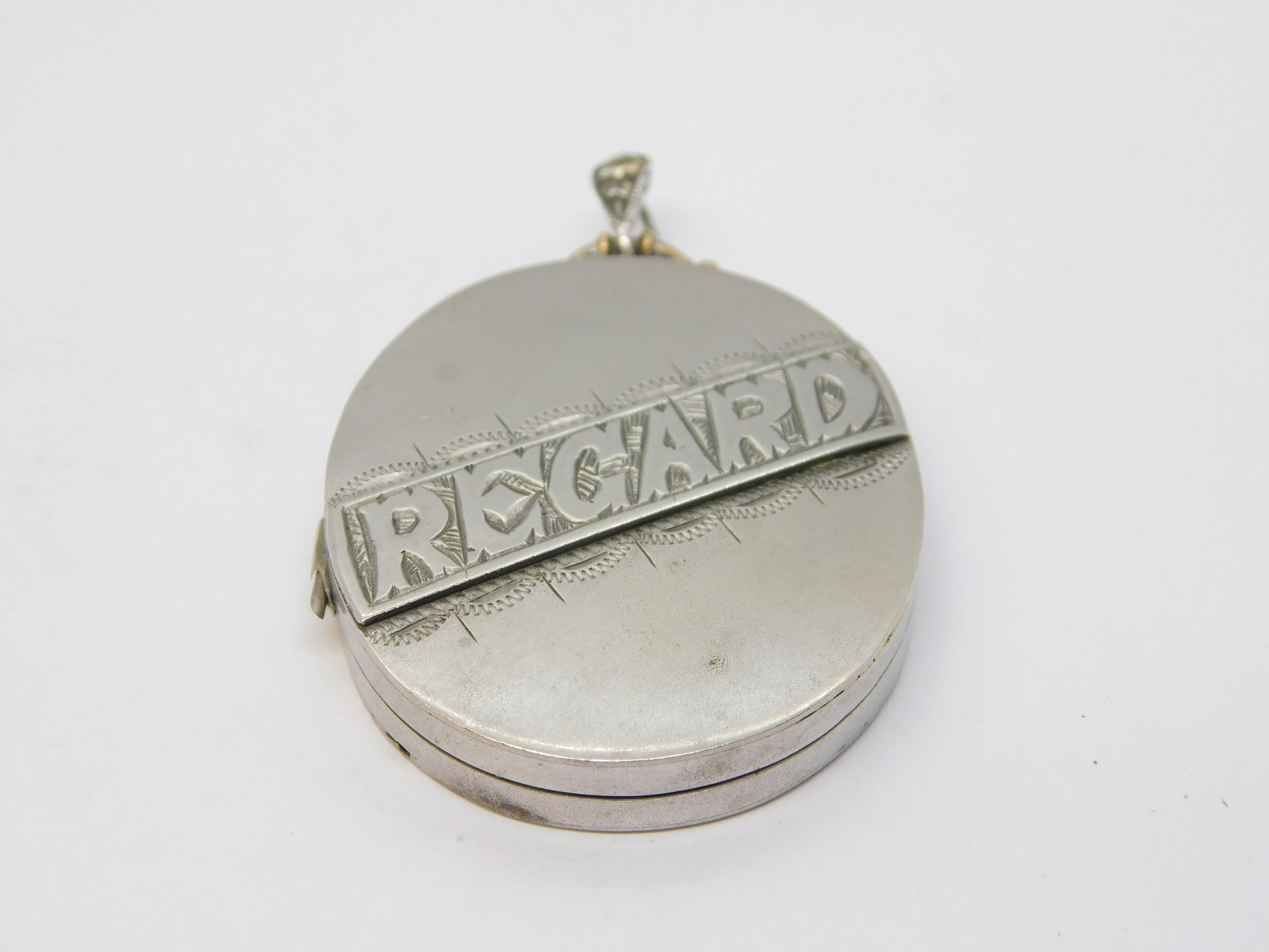 Large Victorian Silver Plated 'Regard' Paste Set Sweetheart Locket Antique c1880