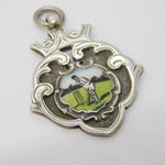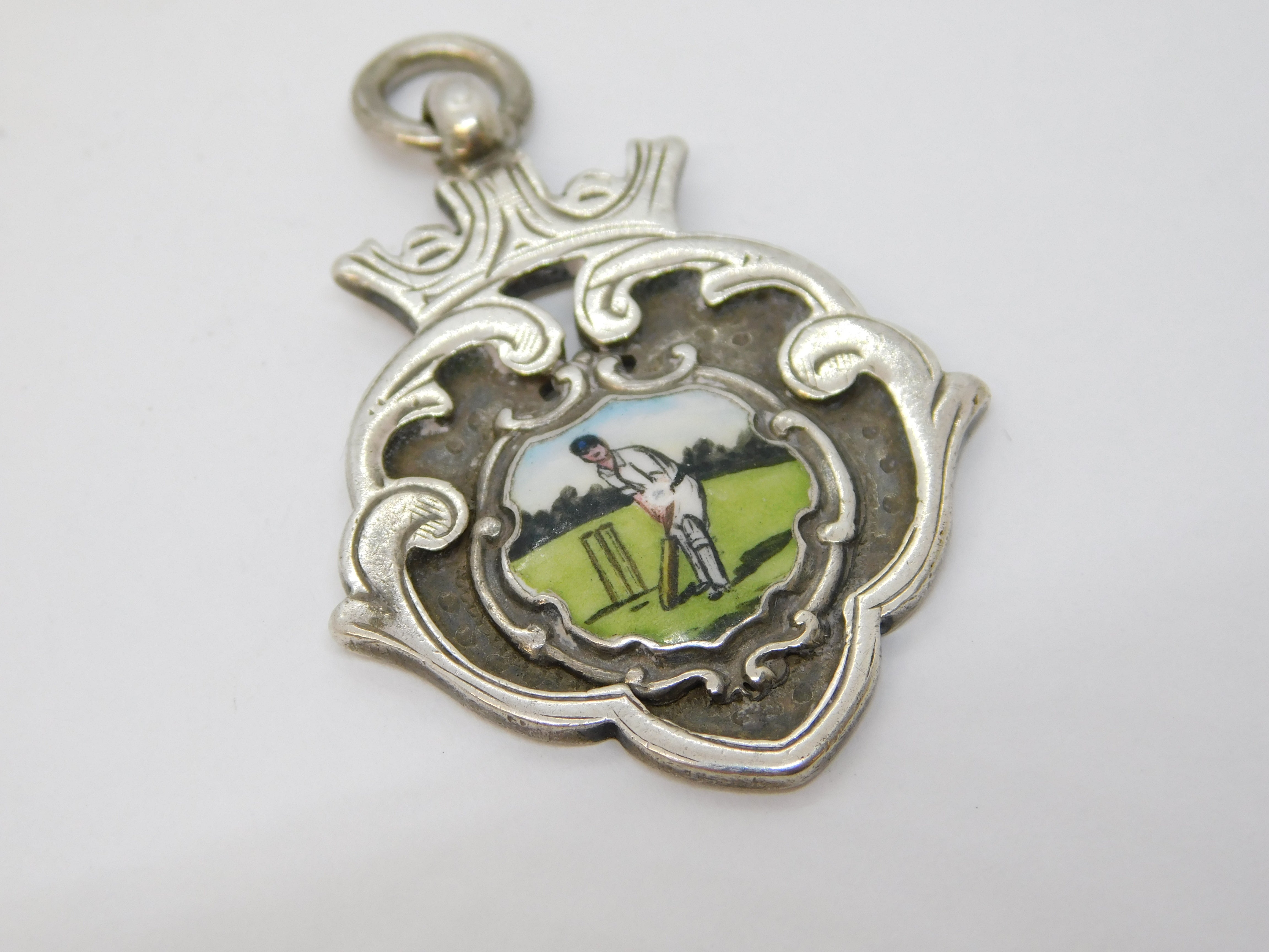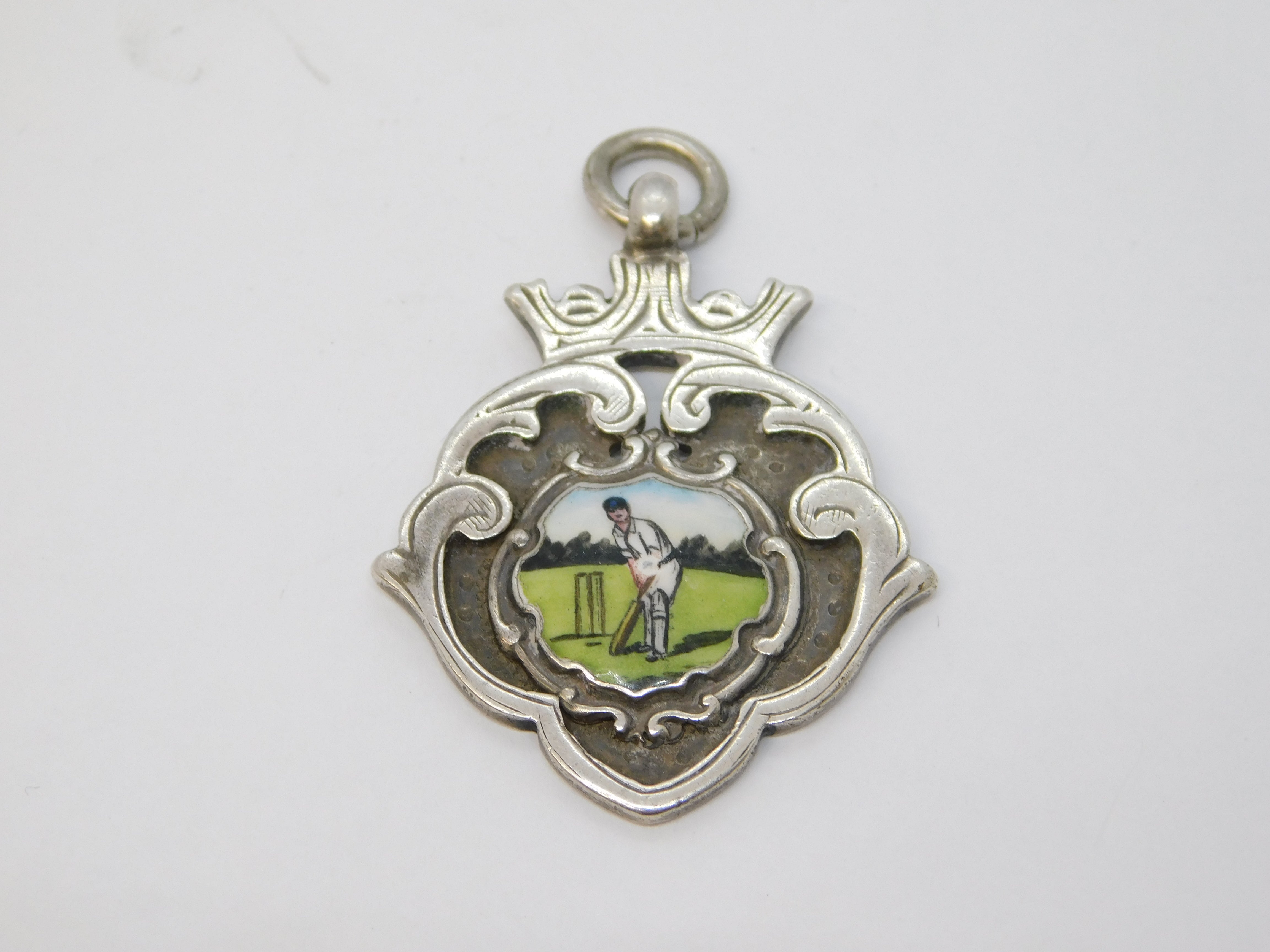Sterling Silver & Enamel Cricket Interest Fob Medal Antique 1921 Chester