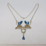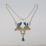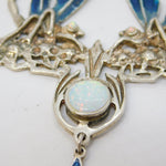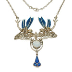 Details: A fantastic and wonderfully designed vintage art nouveau style sterling silver drop pendant necklace in the form of two dragonflies set with blue guilloche enamel alongside white opals to both the eyes and to the centre hallmarked to the reverse c1970. This is a wonderful item that would make a perfect gift or addition to any collection.