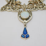 Sterling Silver, Guilloche Enamel & Opal Dragonfly Drop Pendant Necklace Vintage c1970