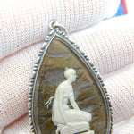 Details: A fantastic and wonderfully designed antique art deco large sterling silver drop pendant set with morpho butterfly wing and sulphide crystal in the form of the Kneeling Aphrodite hallmarked to the reverse c1920. This is a wonderful item that would make a perfect gift or addition to any collection. The BOX pictured is for PRESENTATION ONLY and is NOT included in the listings but used to frame the pictures unless specifically stated otherwise.