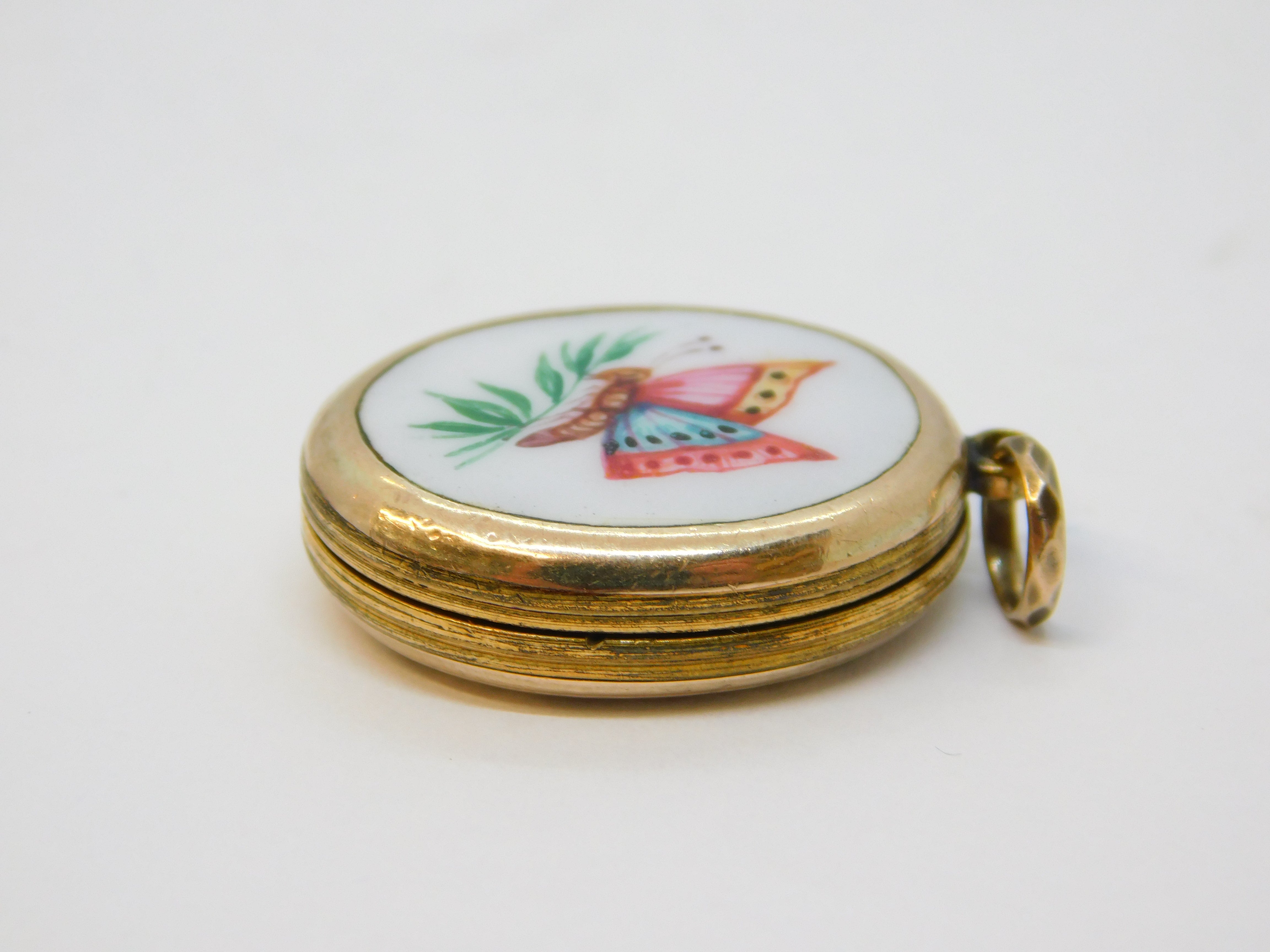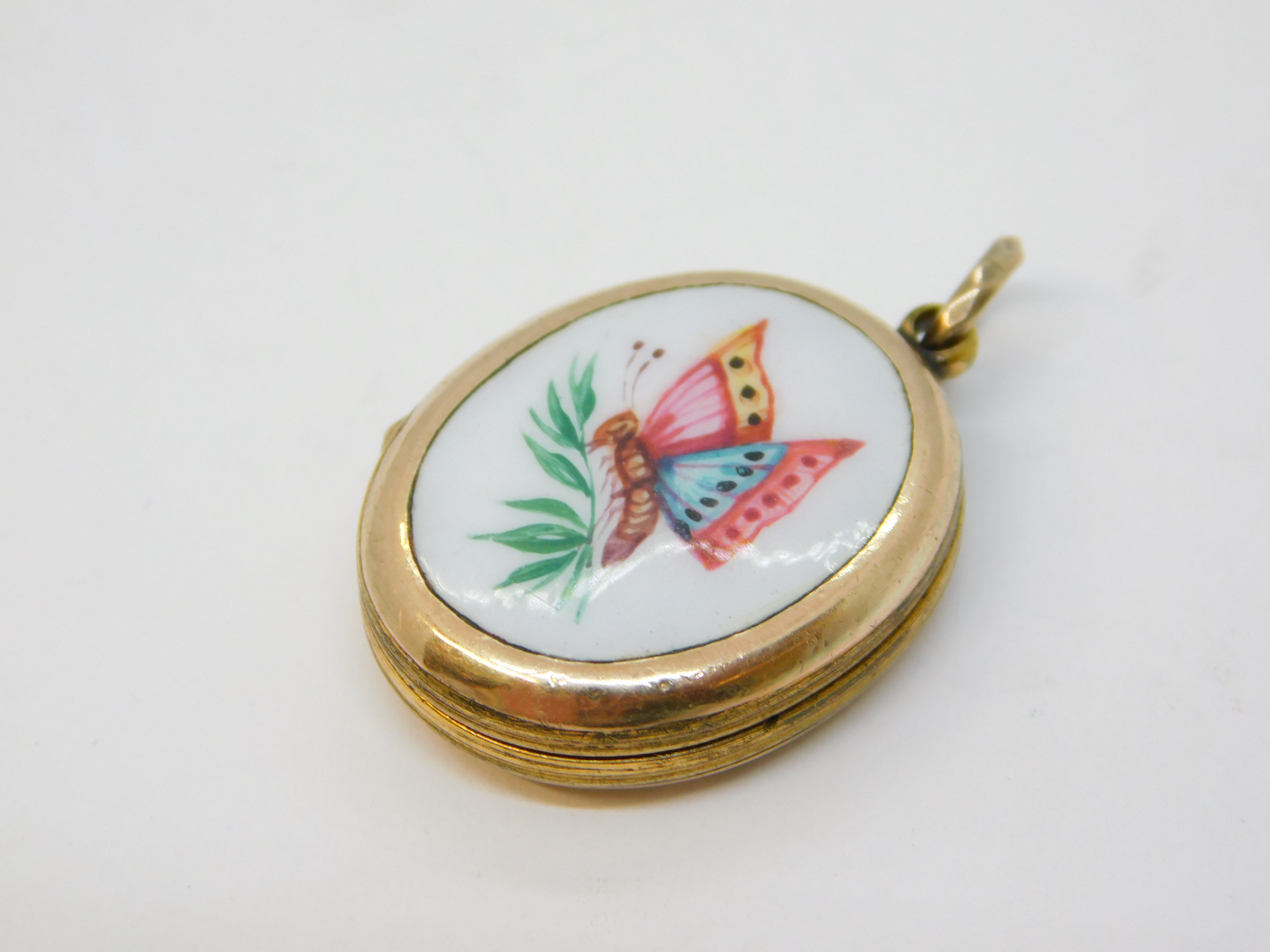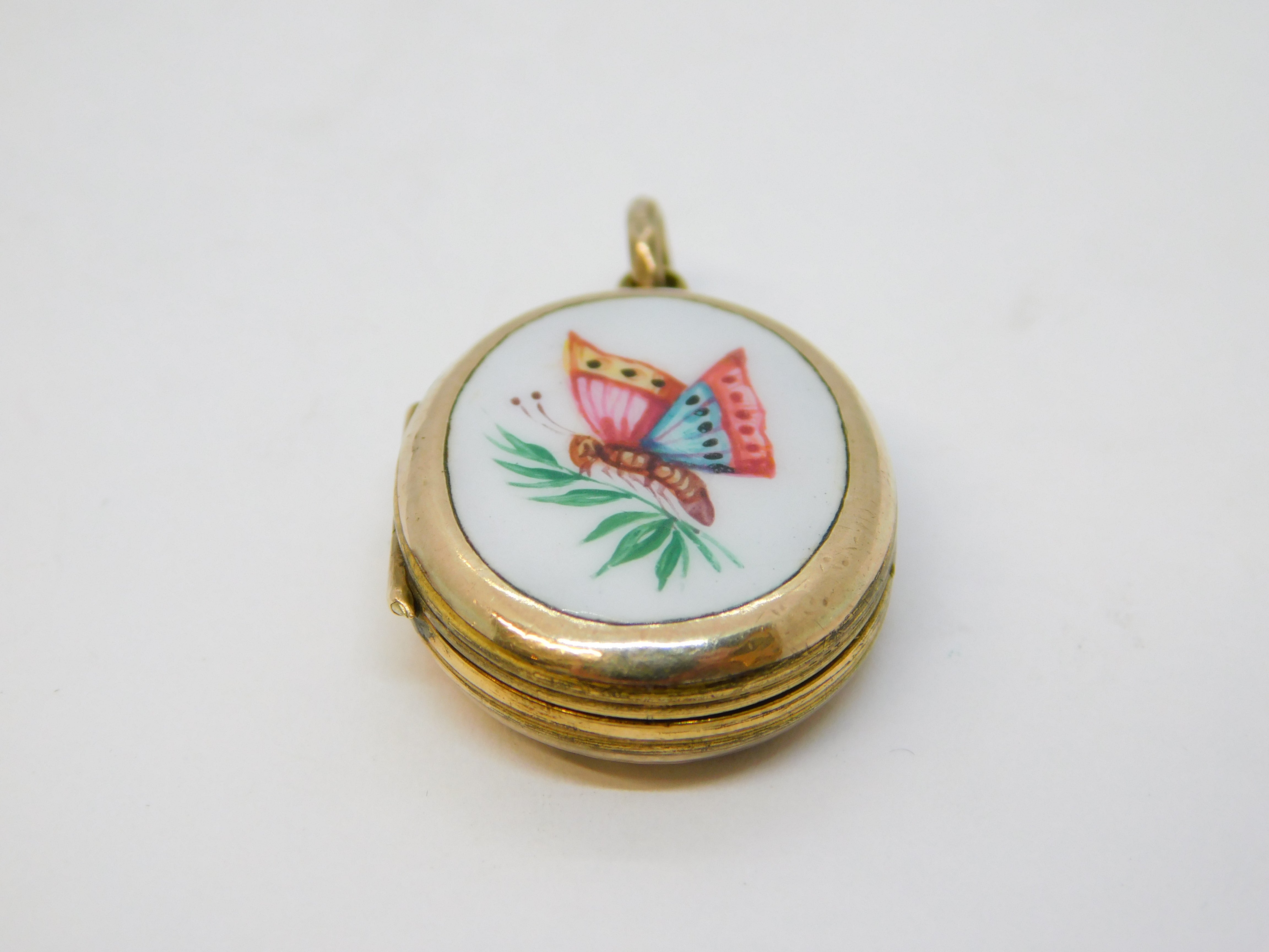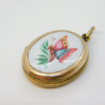 Victorian 9ct Gold Back & Front Enamel Butterfly Sweetheart Locket Antique