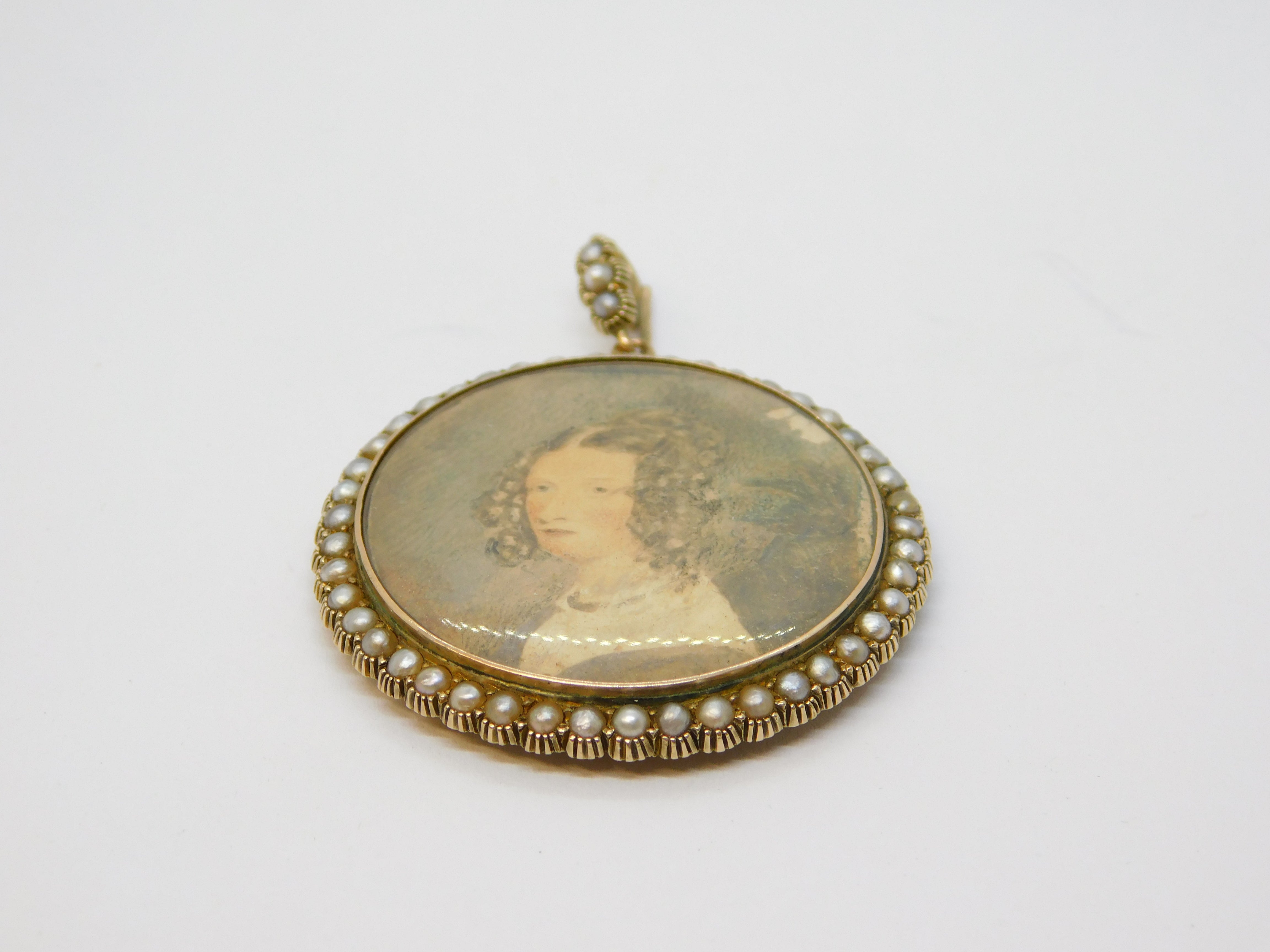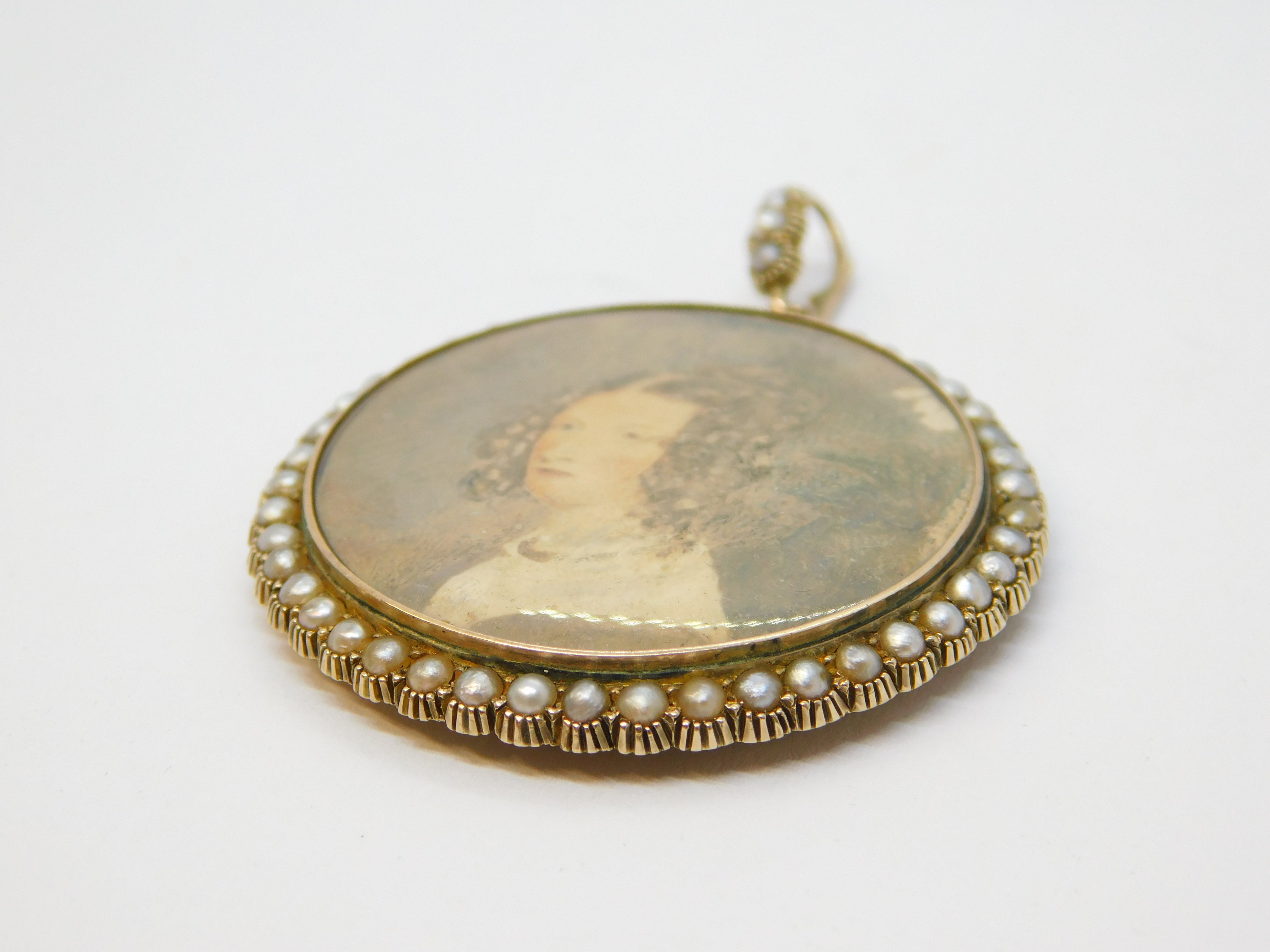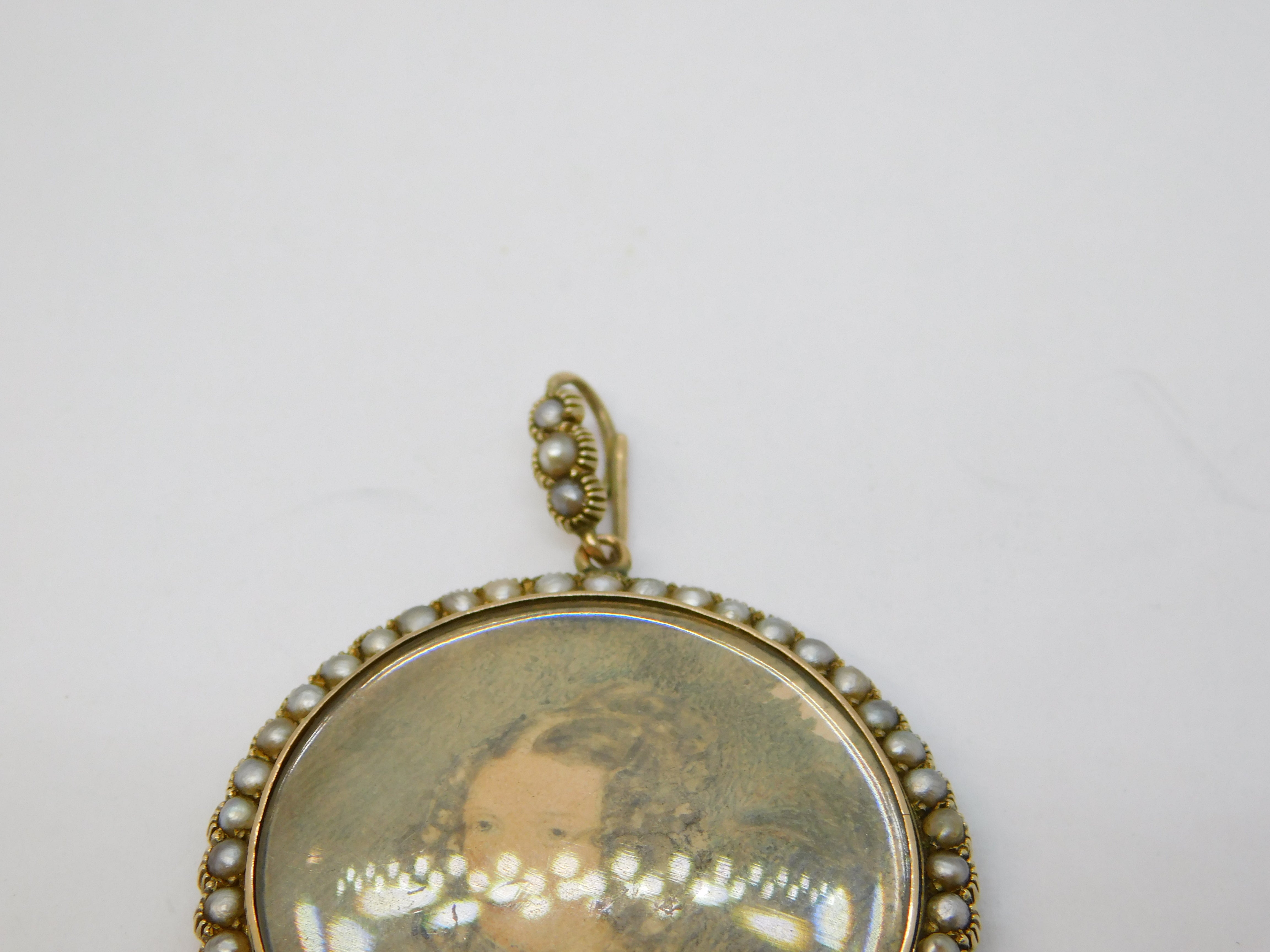 Victorian 9ct Gold, Seed Pearl Set Double Portrait Mourning Locket Antique c1860