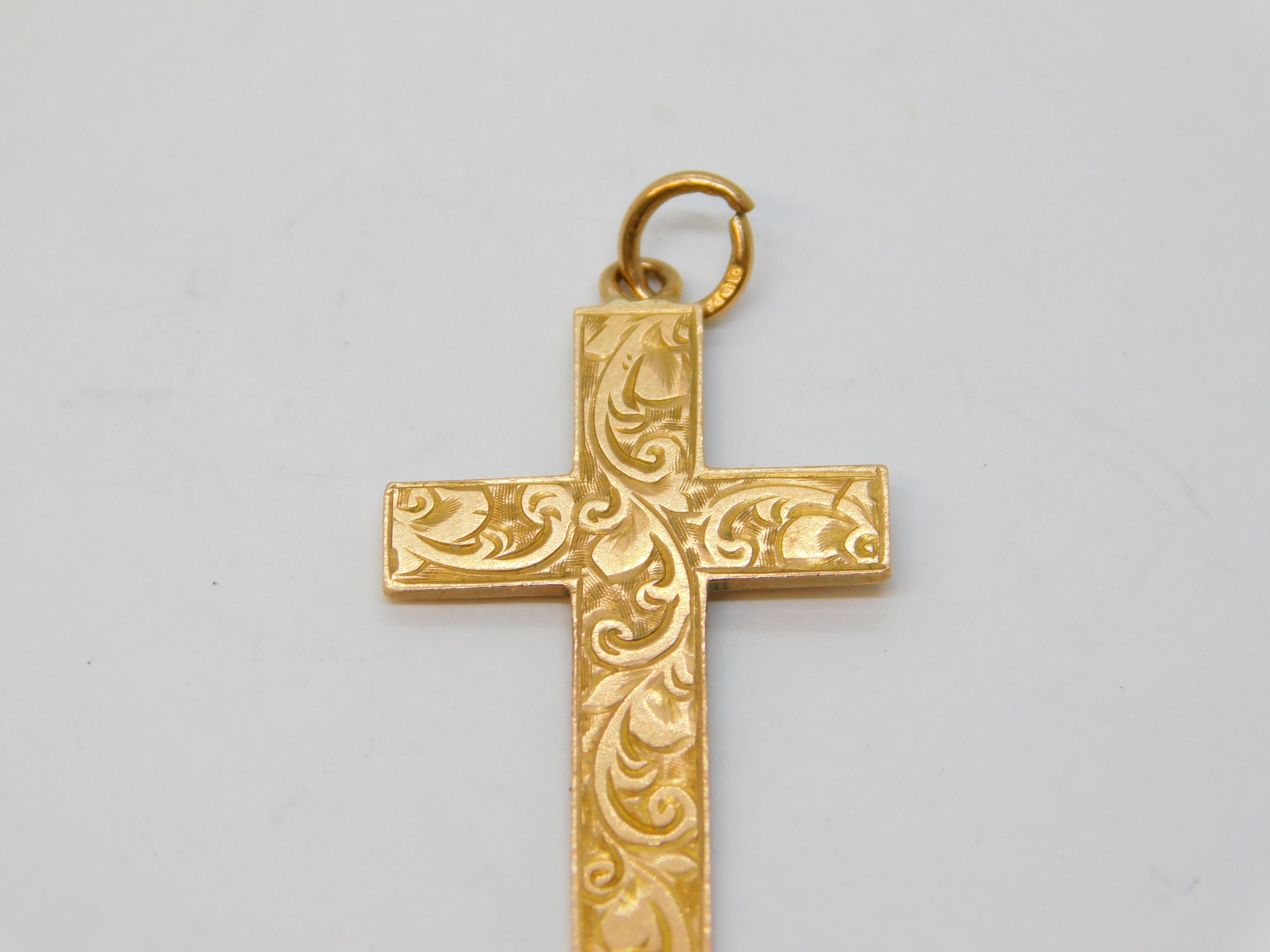 Victorian 9ct Rose Gold Floral Cross Pendant Antique 1886 Birmingham