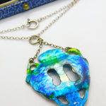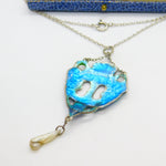Victorian Art Nouveau Sterling Silver & Blue-Green Enamel Pearl Drop Pendant c1890