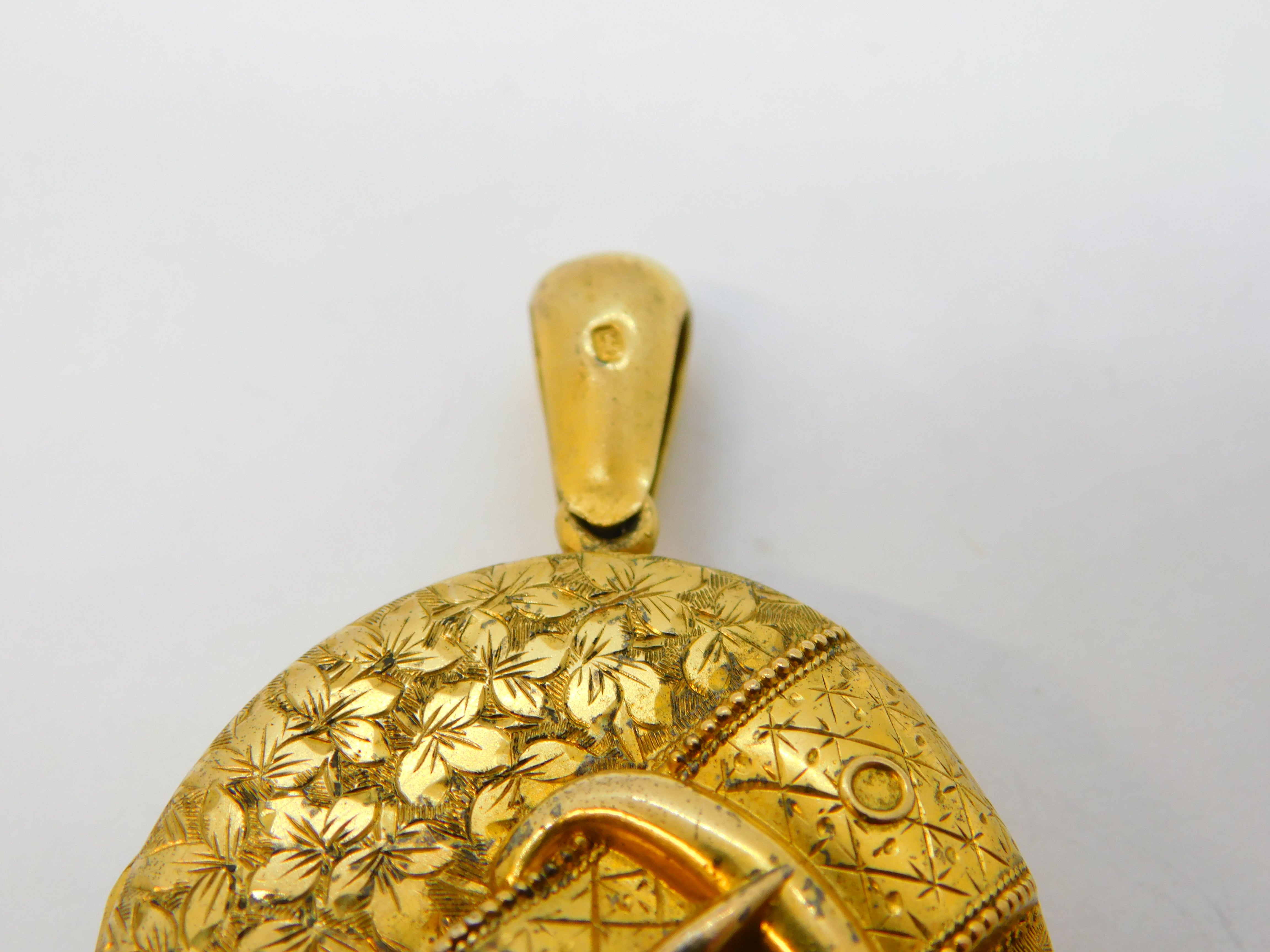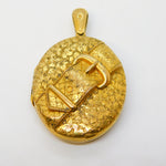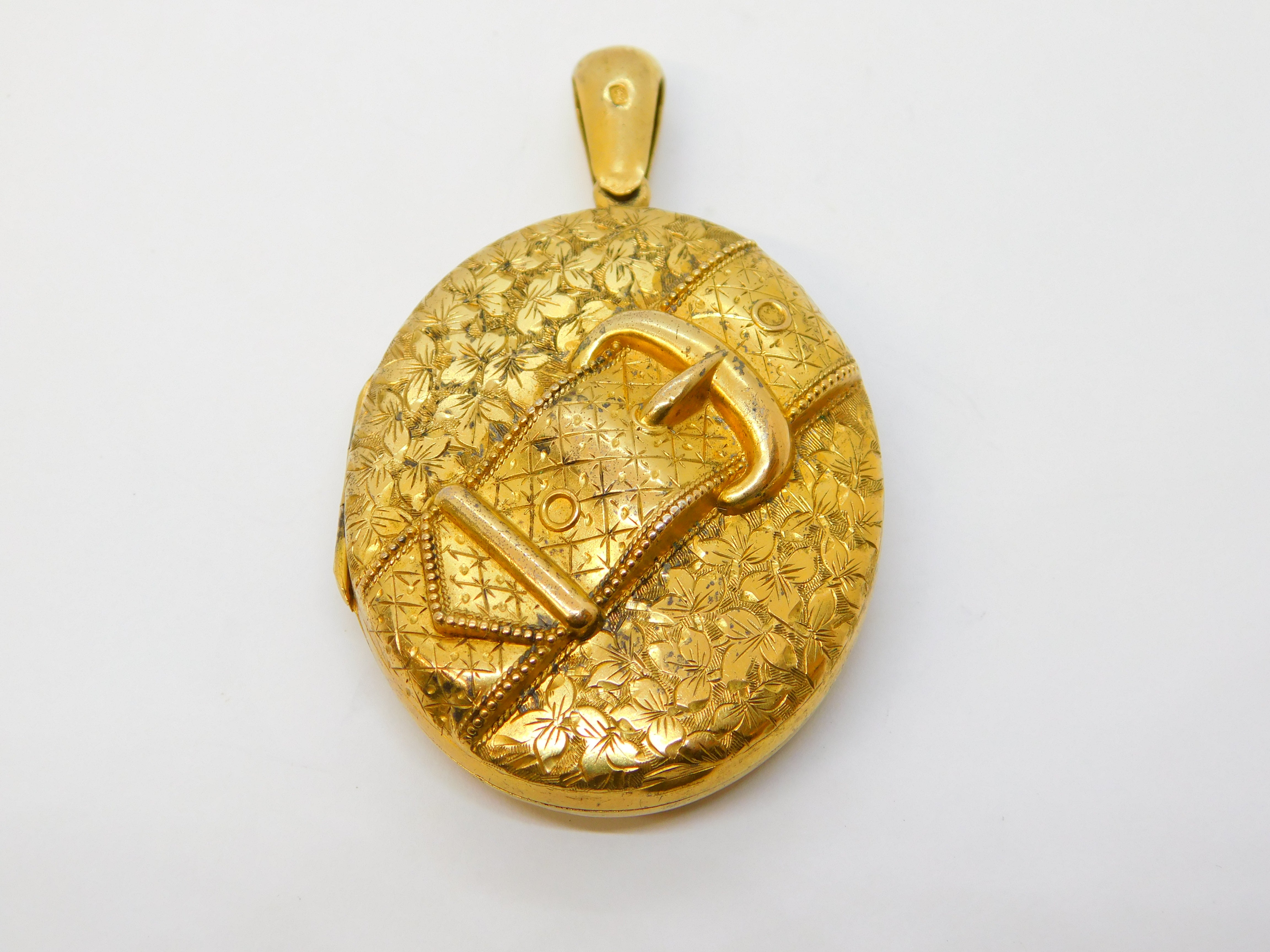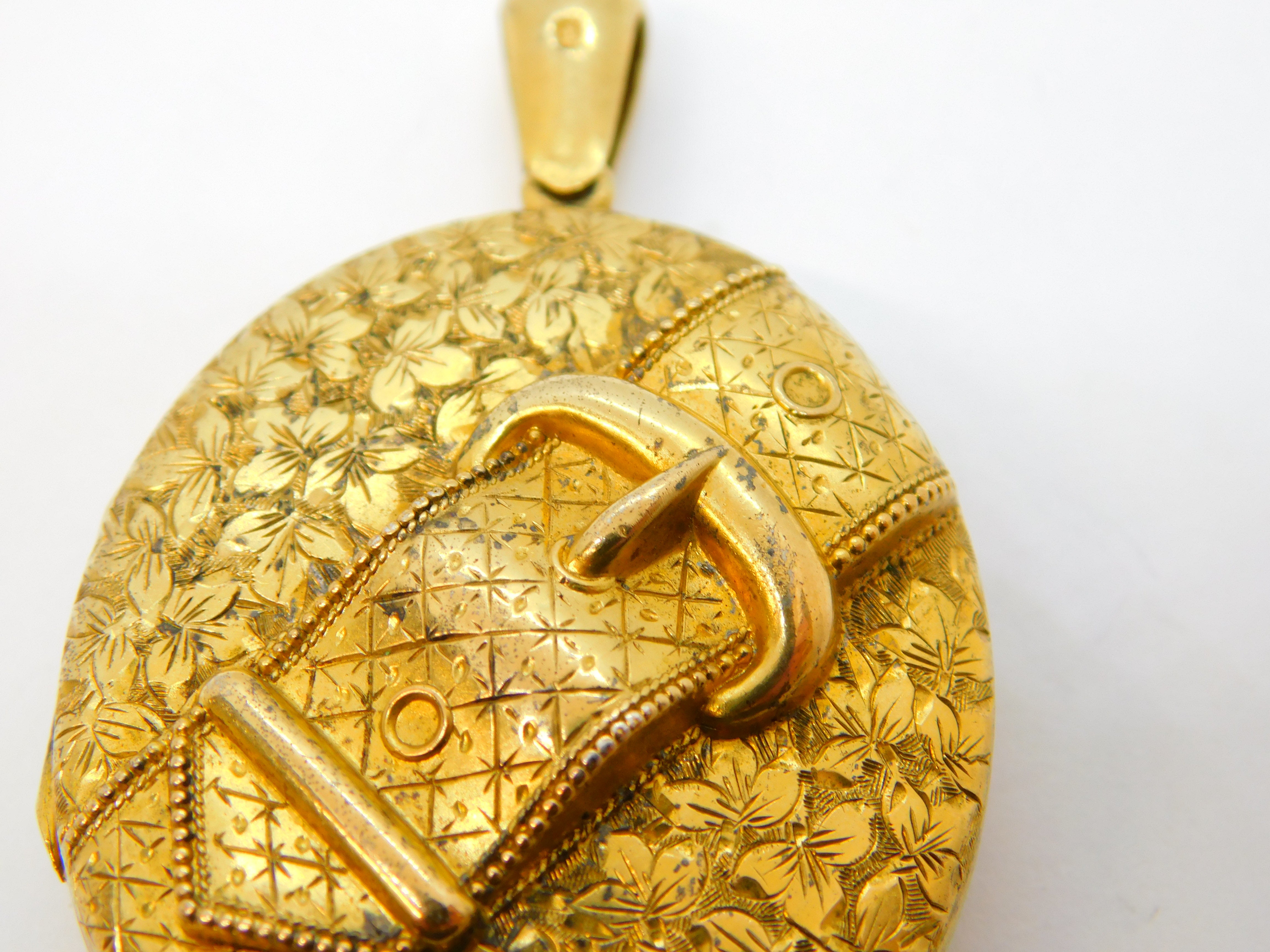 Details: A fantastic and wonderfully designed antique Victorian large sterling silver gilt aesthetic movement locket pendant with lovely buckle form and ivy leaf detailing throughout hallmarked to the reverse and to the bale Birmingham 1886. This is a wonderful item that would make a perfect gift or addition to any collection. We are more than happy to provide XRF reports for items upon request.