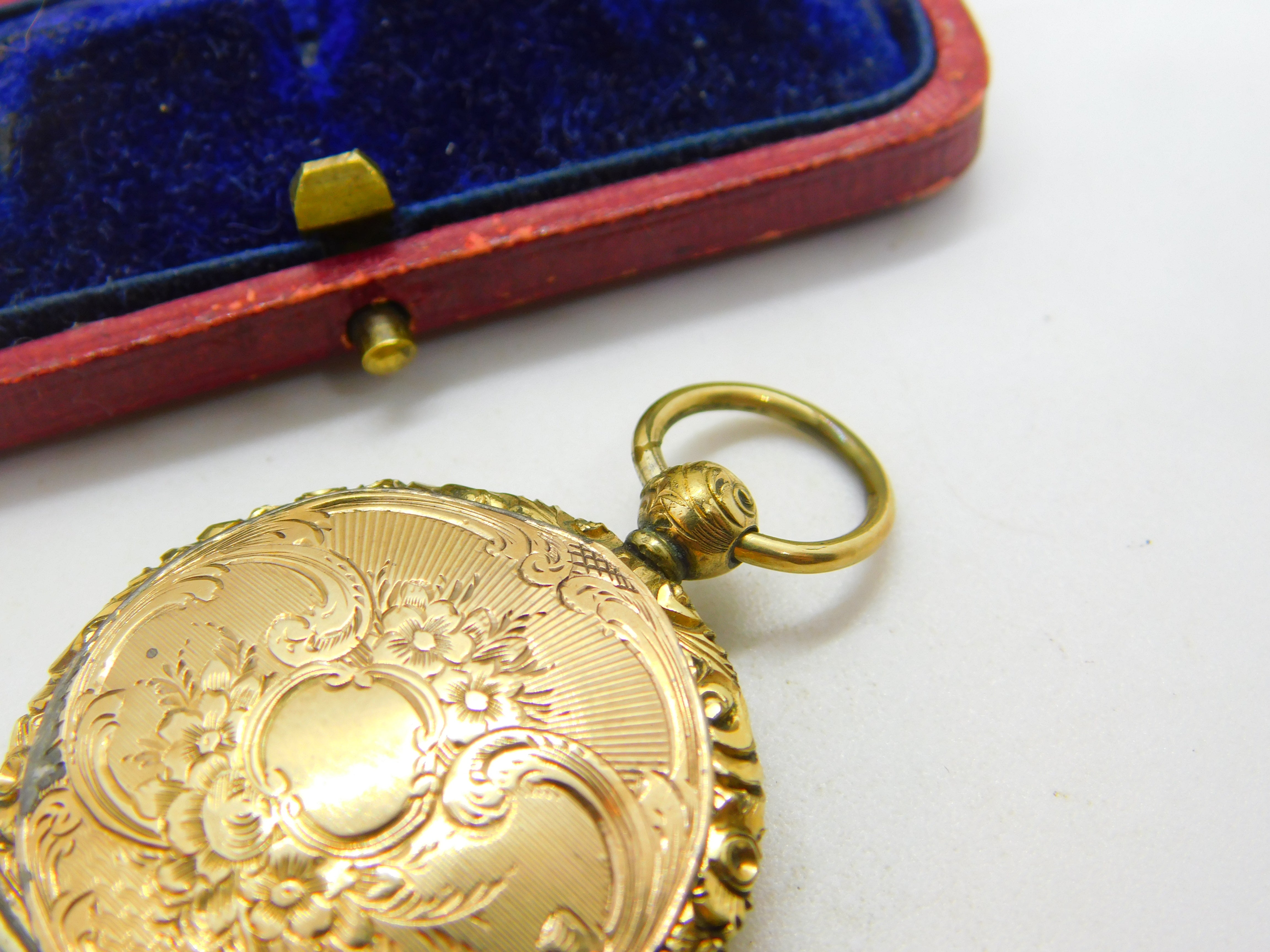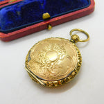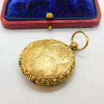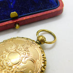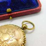 Victorian Pinchbeck Gold Floral Pattern Locket Fob Pendant Antique c1860