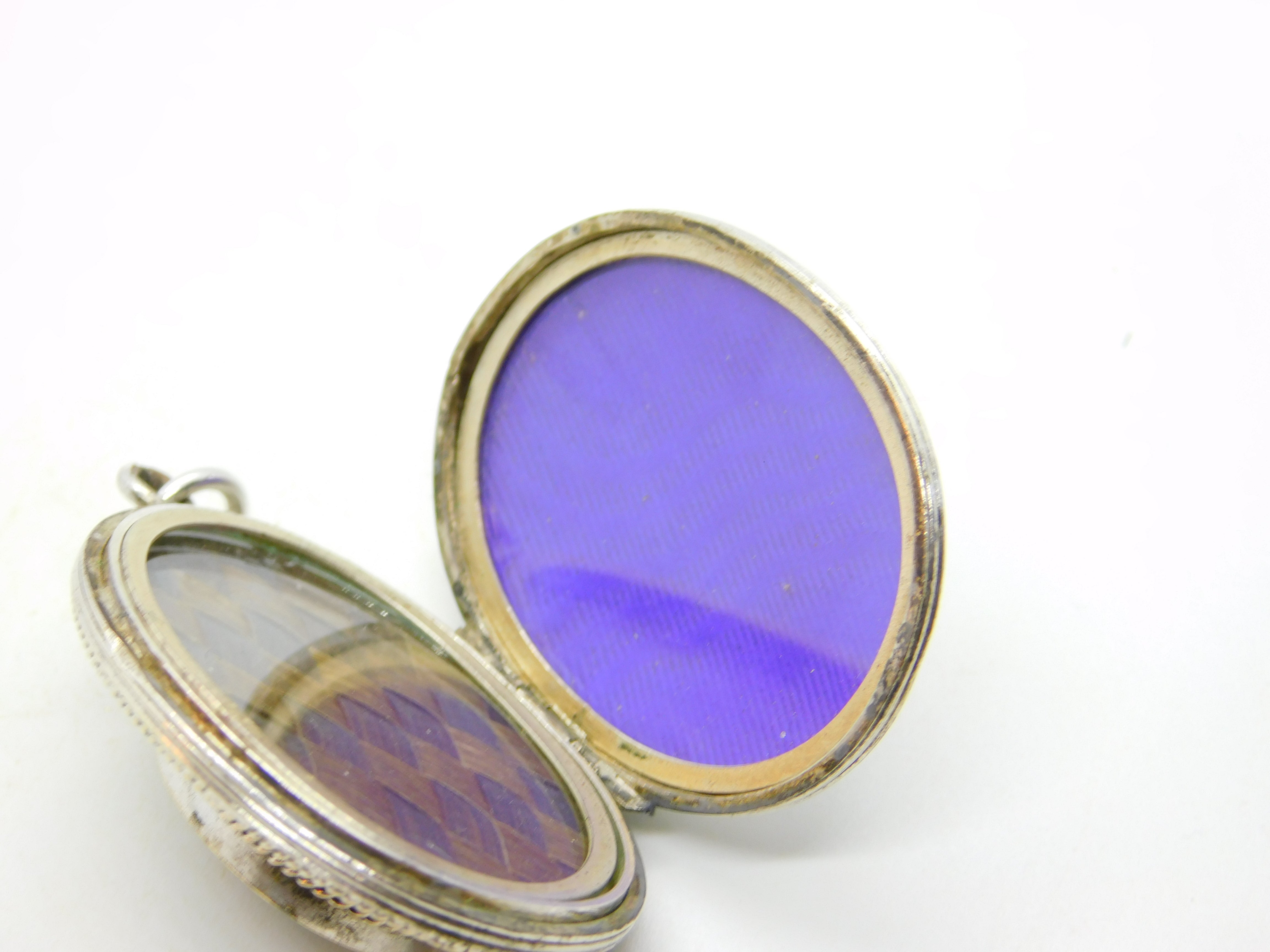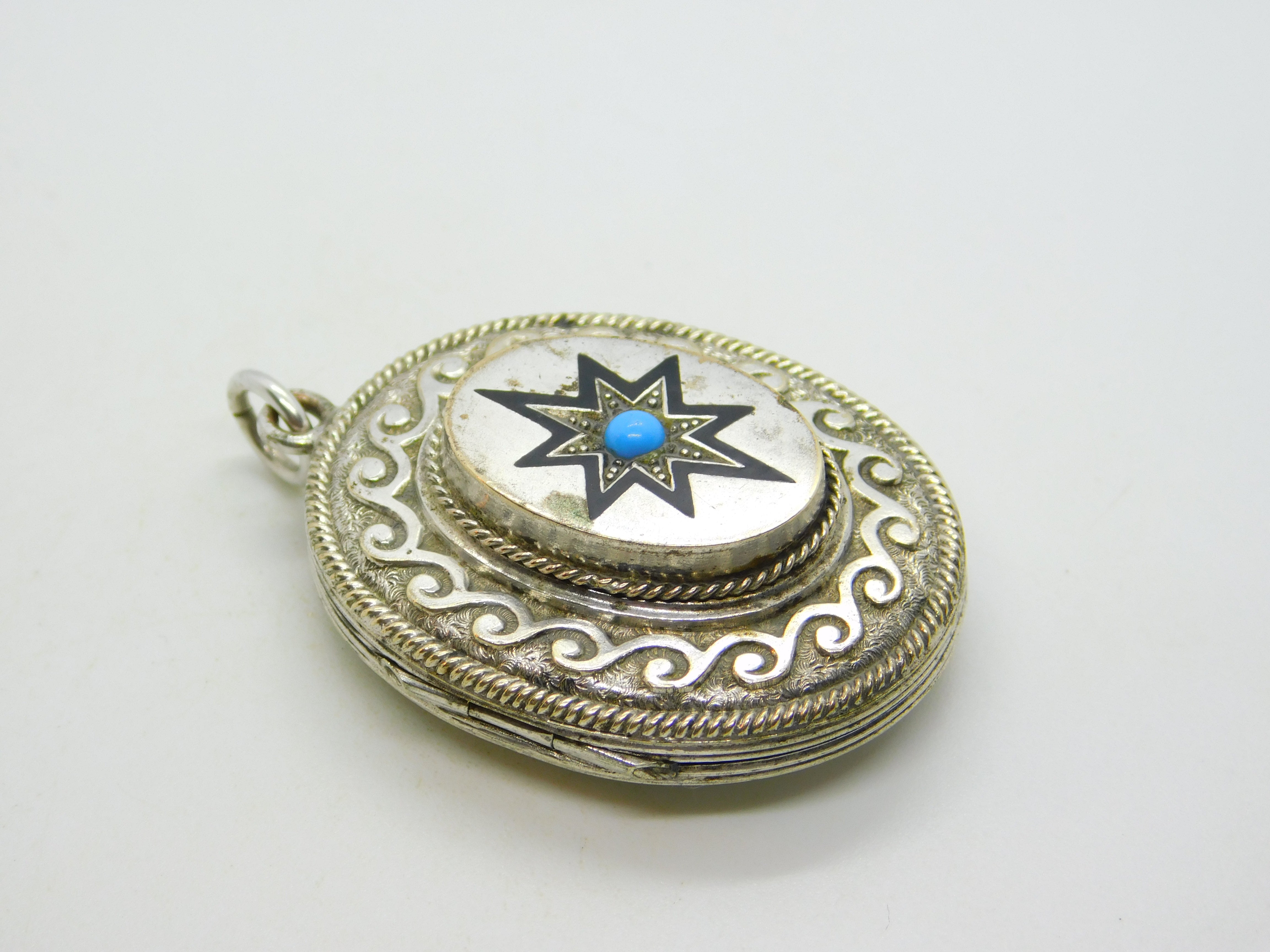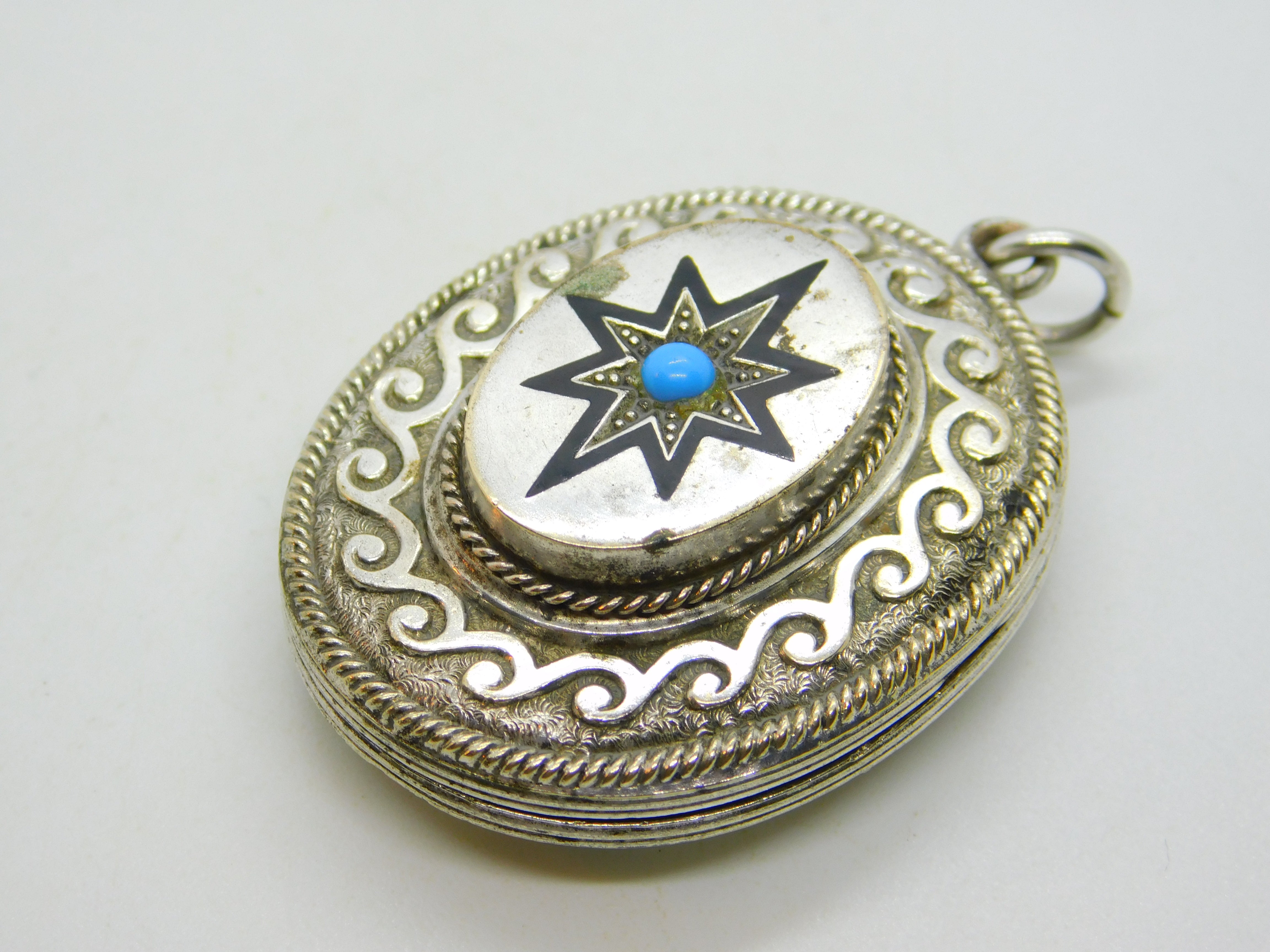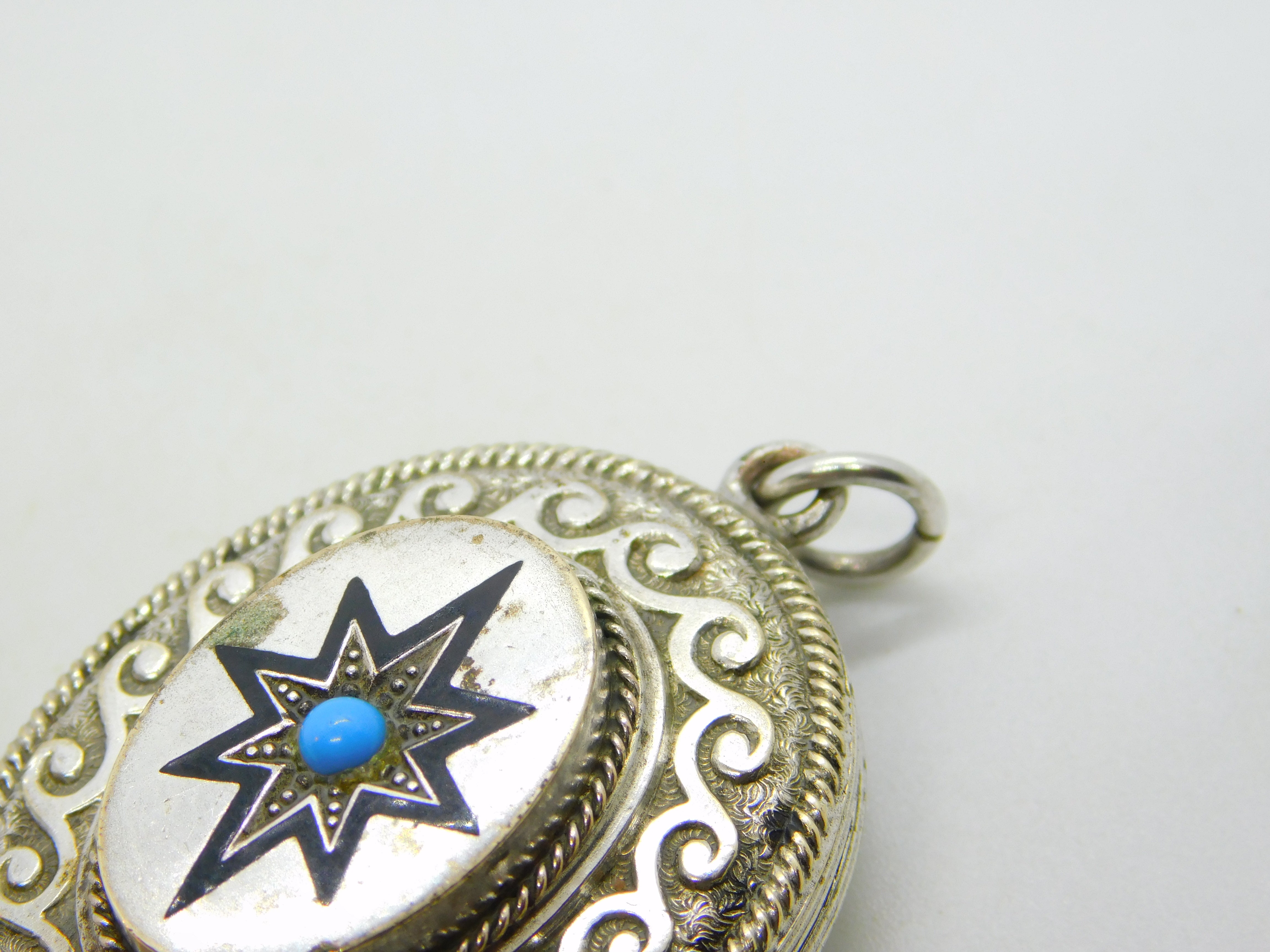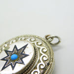 Victorian Silver Plated, Black Enamel & Turquoise Mourning Locket Antique c1860