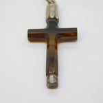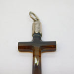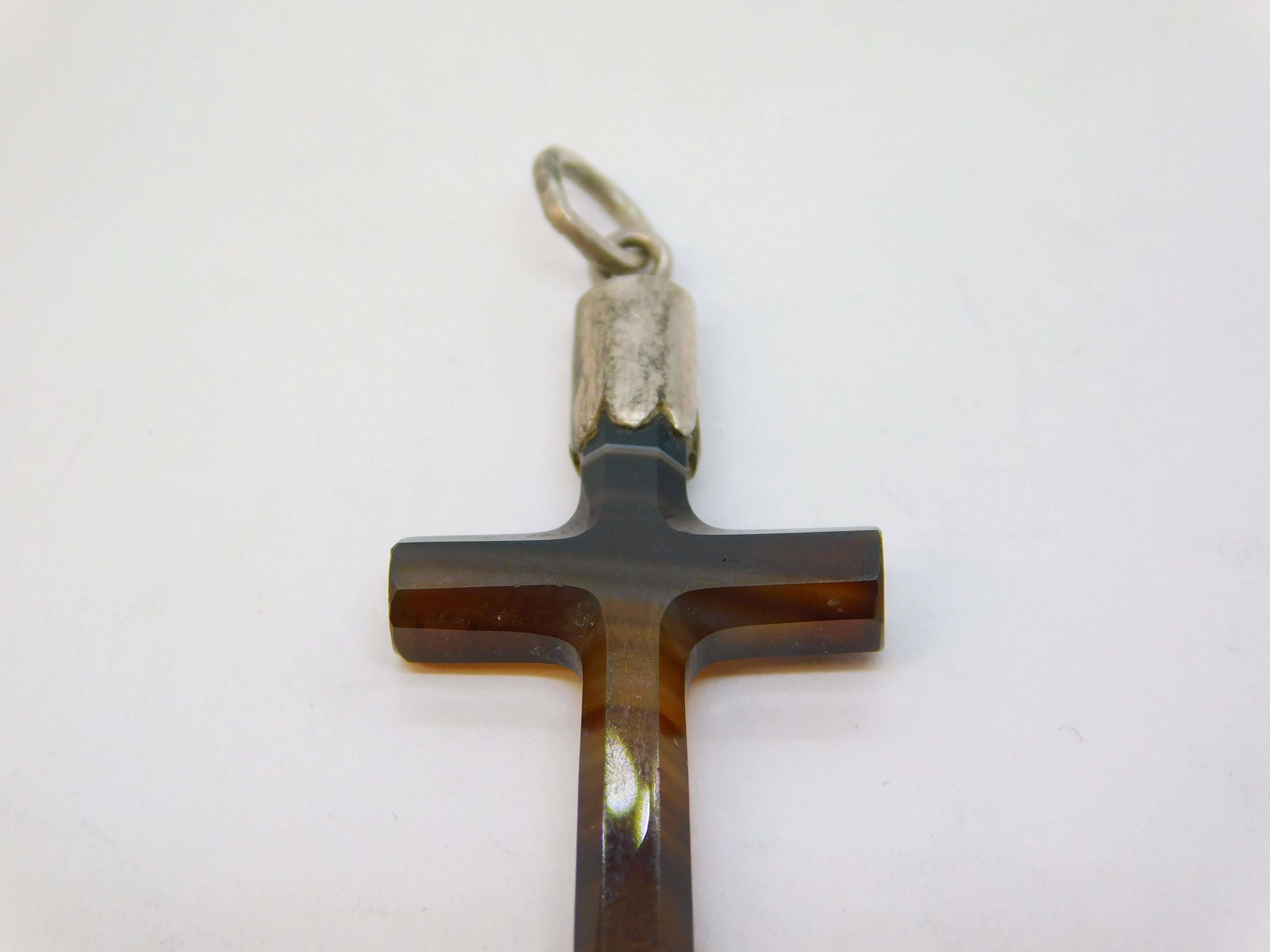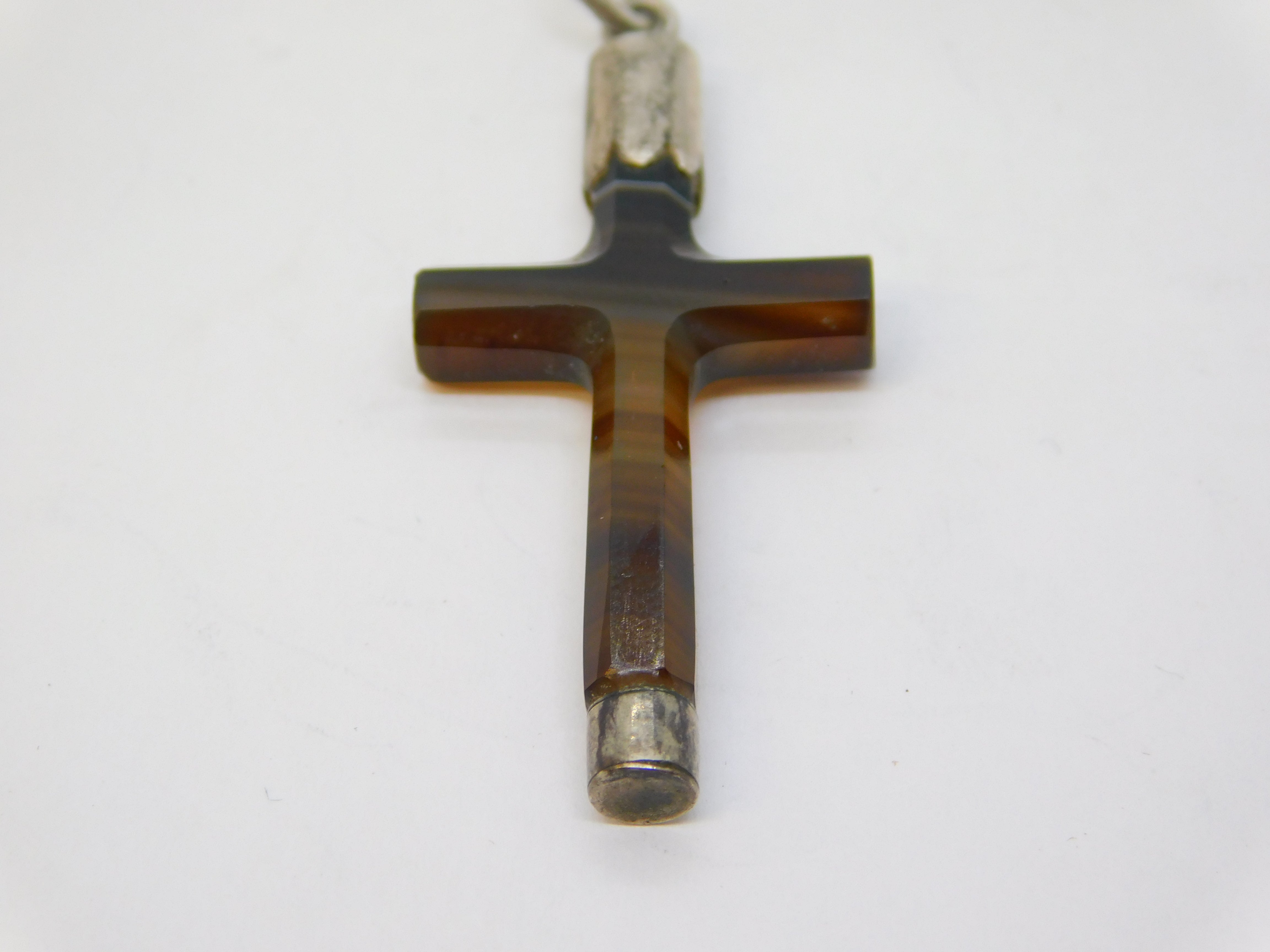 Victorian Sterling Silver Mounted Banded Agate Cross Pendant Antique c1880