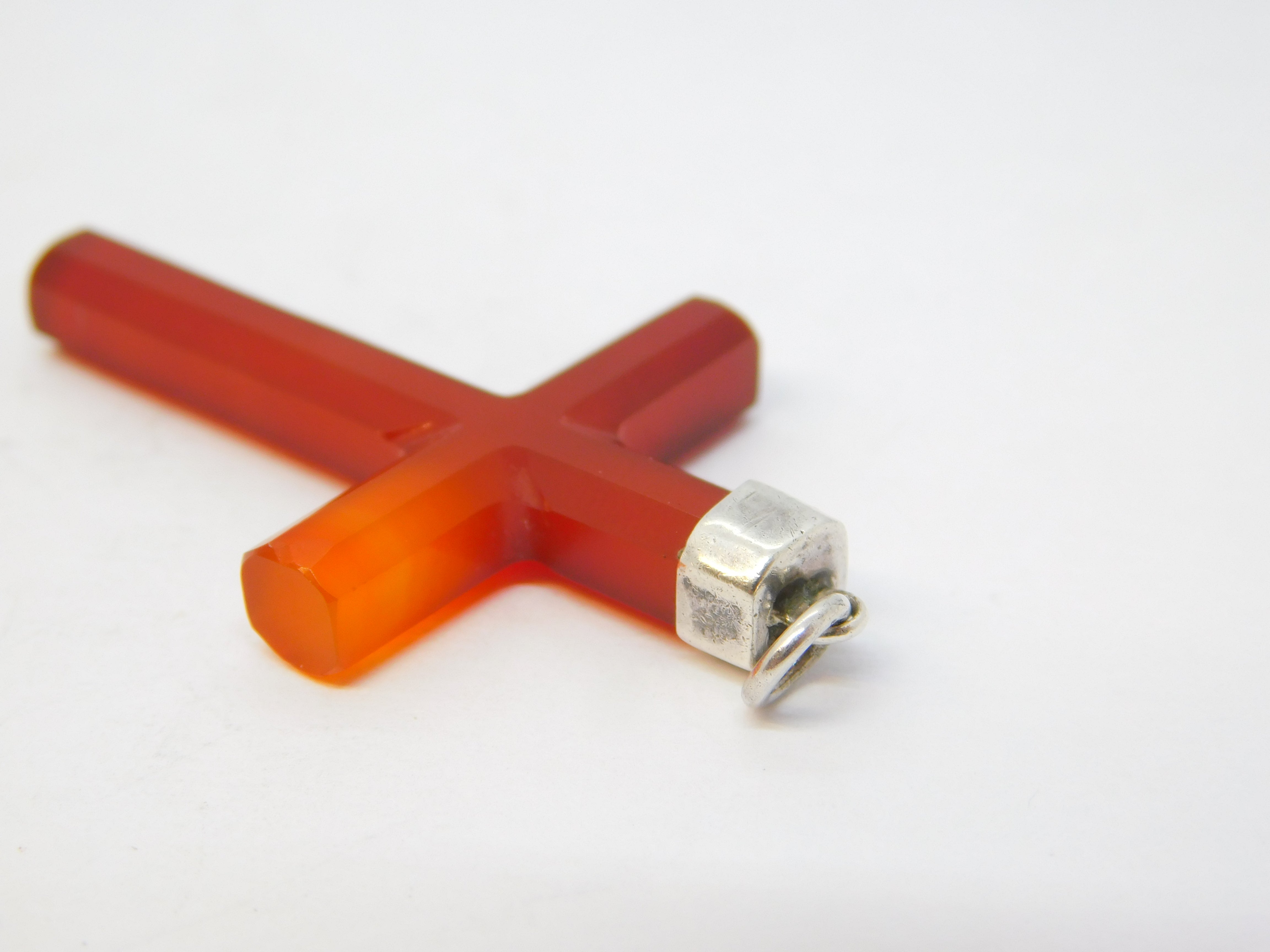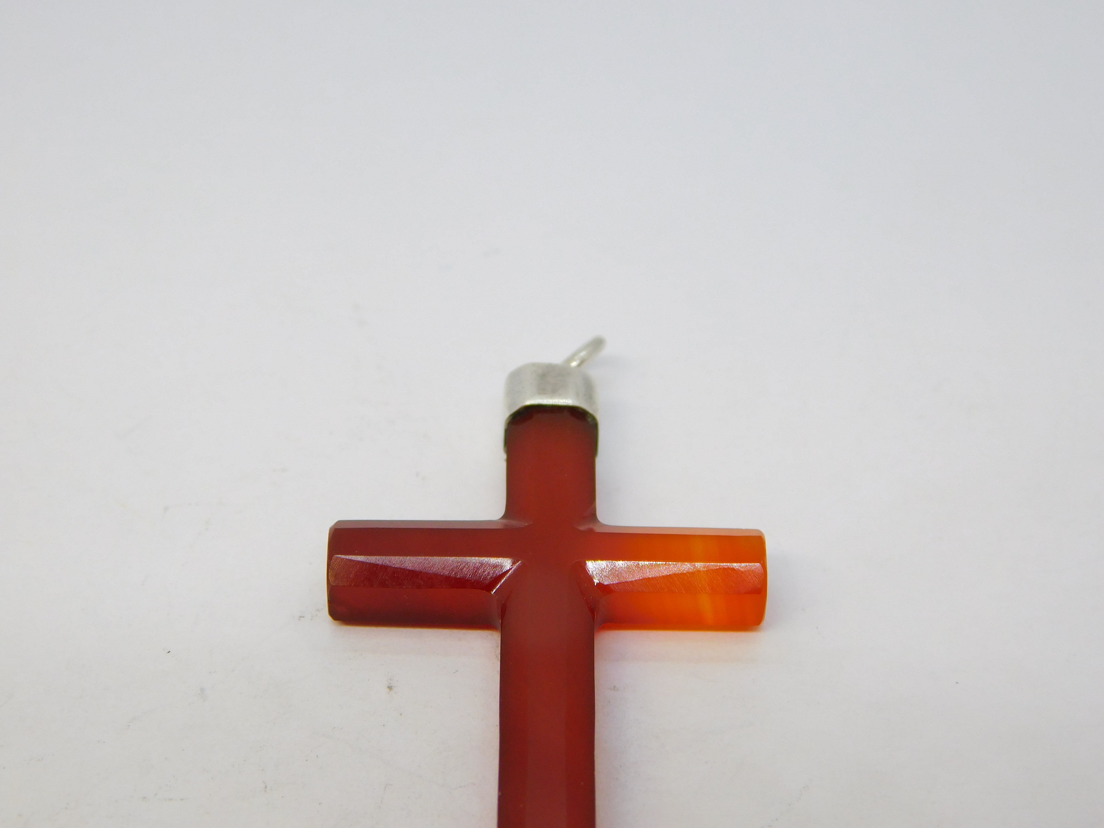 Victorian Sterling Silver Mounted Red Agate Cross Pendant Antique c1880