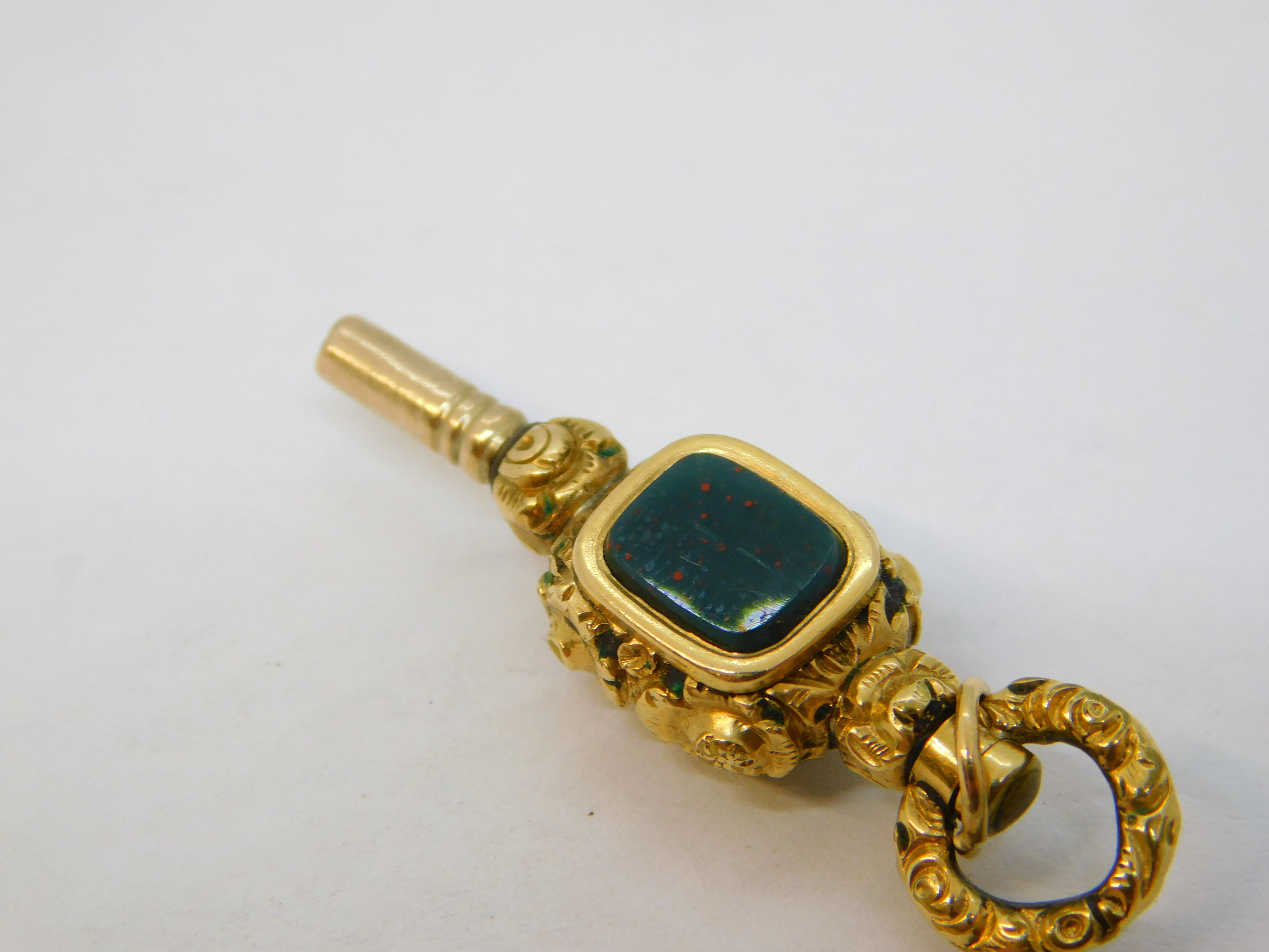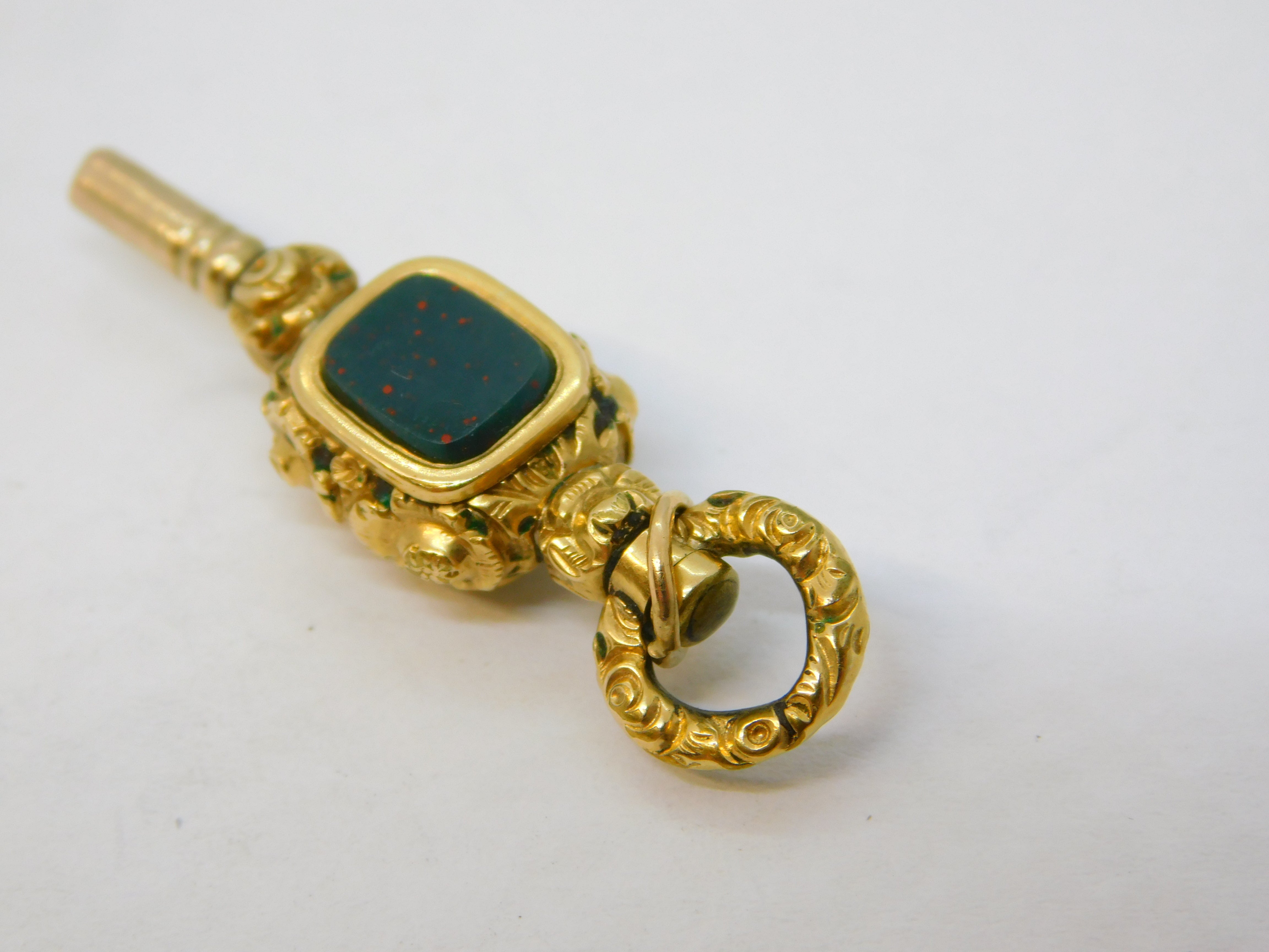 Victorian Yellow Metal, Bloodstone & Chalcedony Watch Key Antique c1860