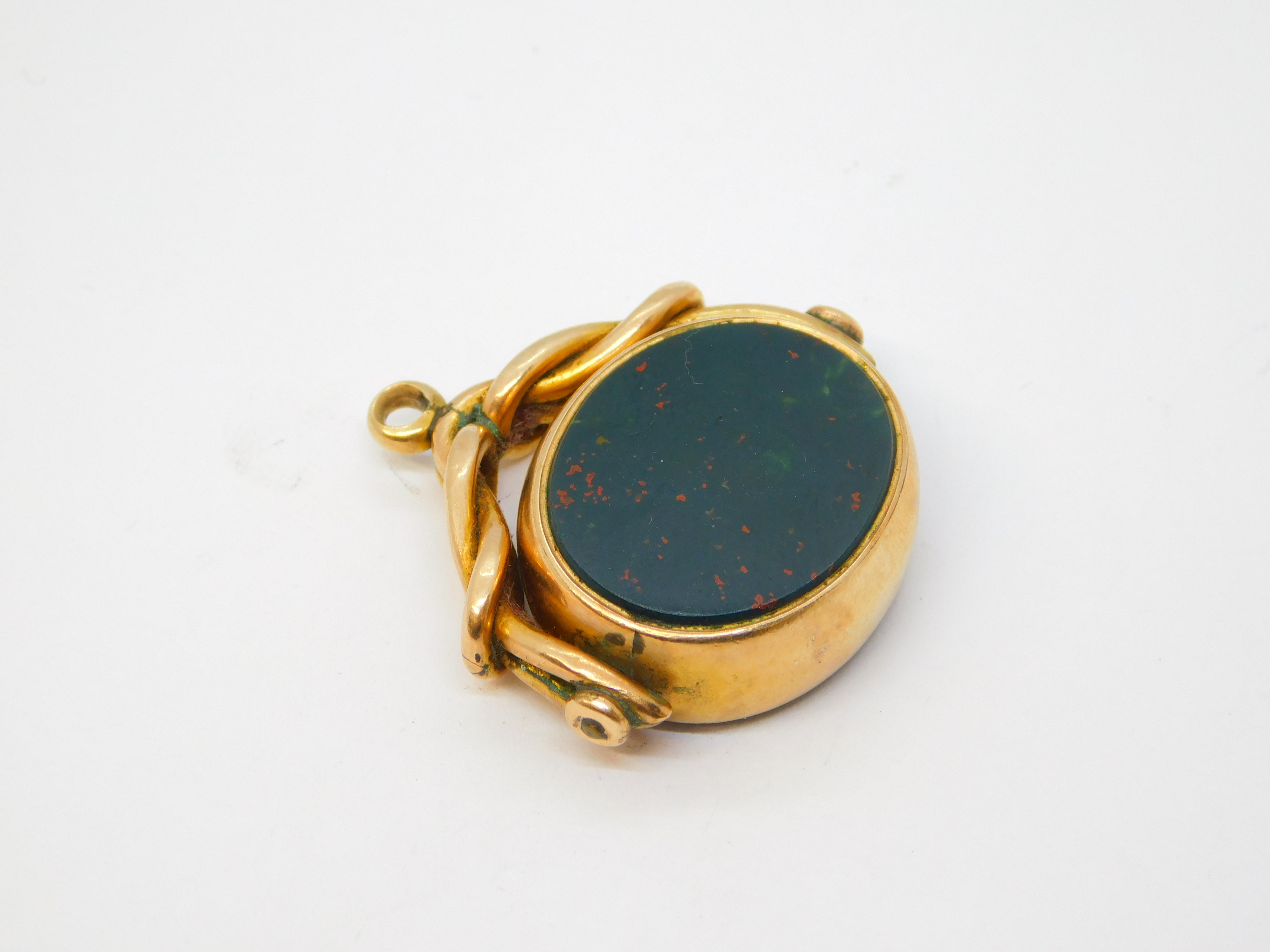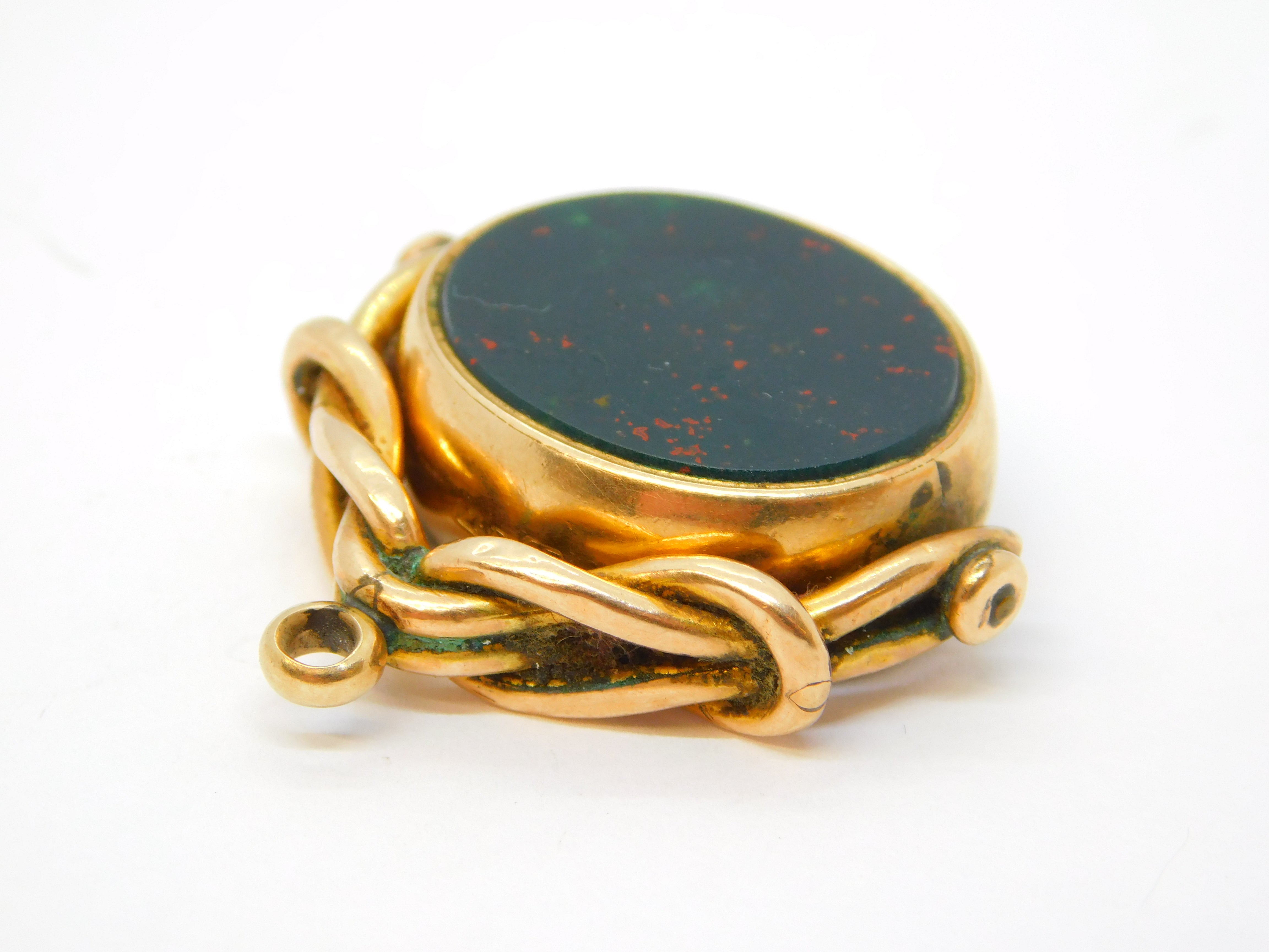 Welsh 10ct Gold Carnelian, Bloodstone 'Duw A Digon' Heraldic Spinner Fob Antique c1840