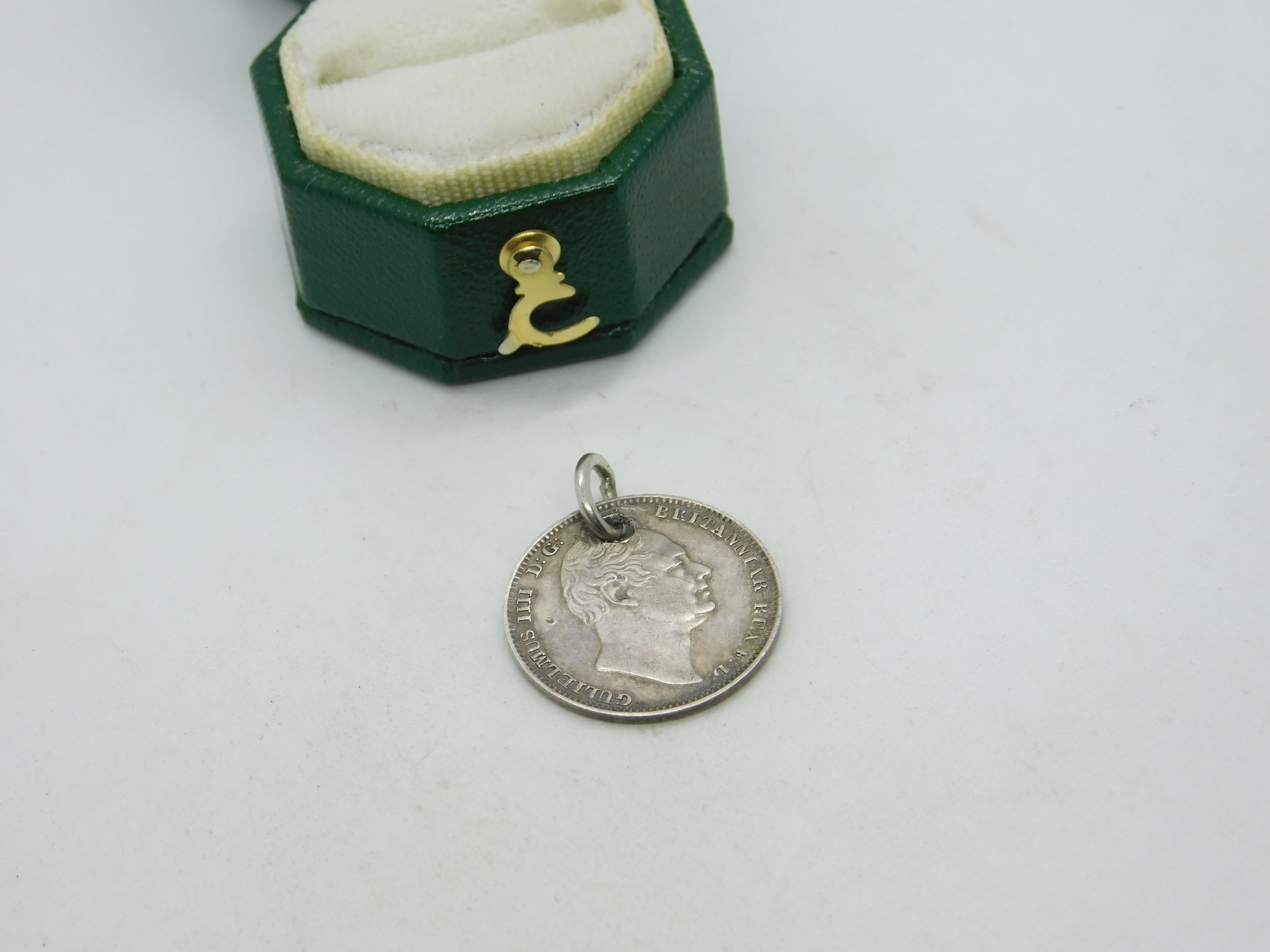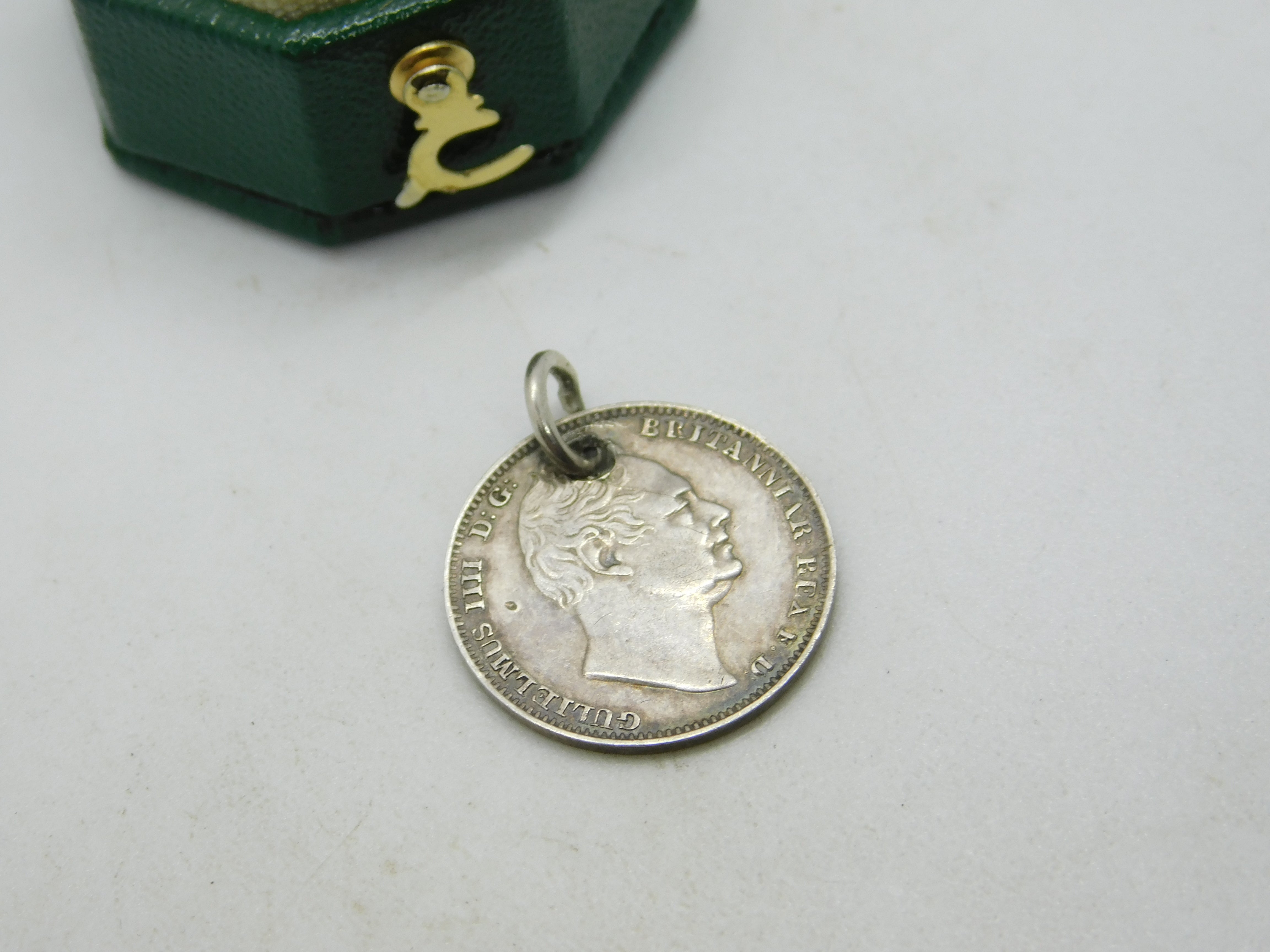William IV Sterling Silver Maundy Fourpence Coin Fob Charm Antique 1835