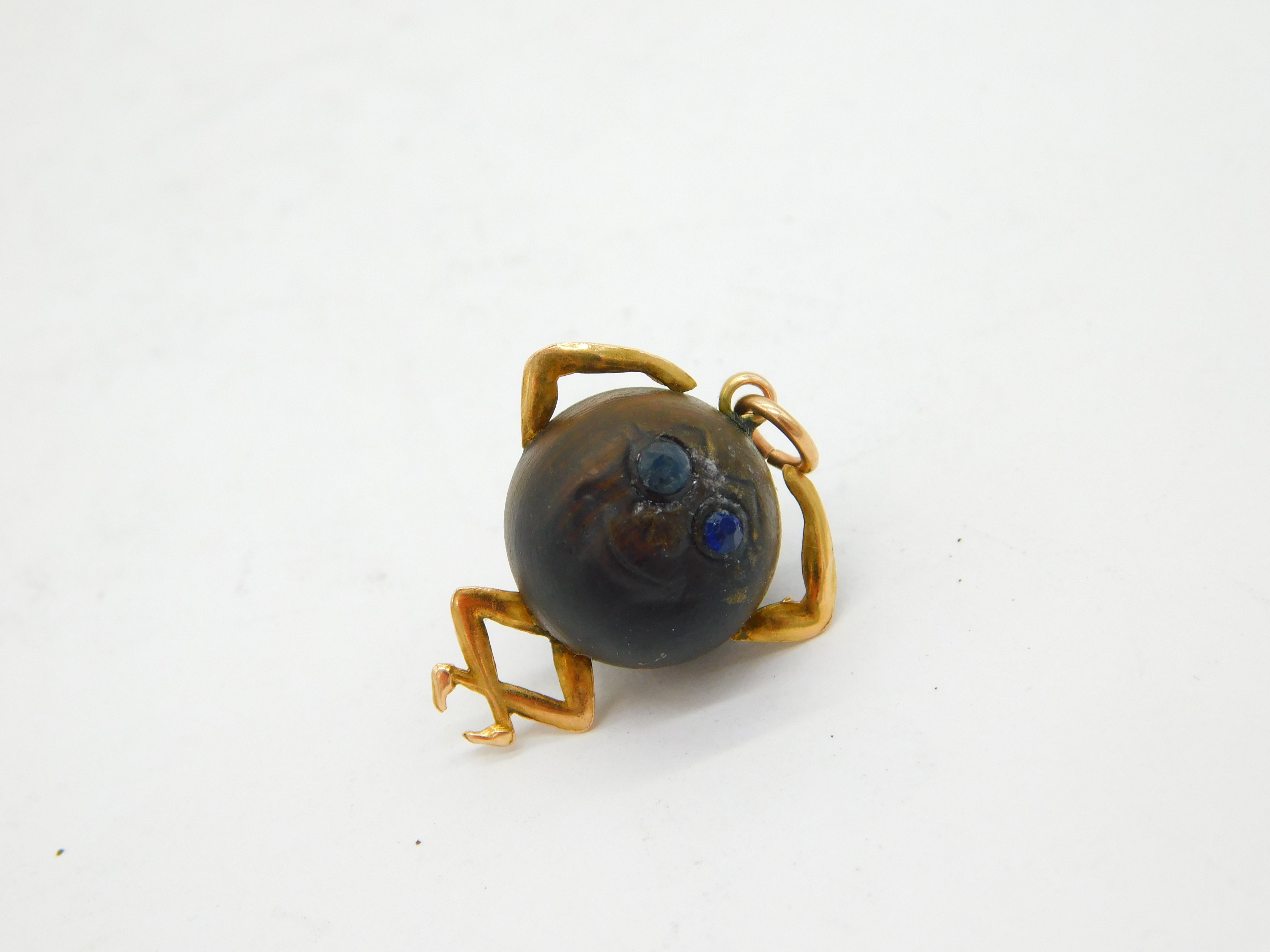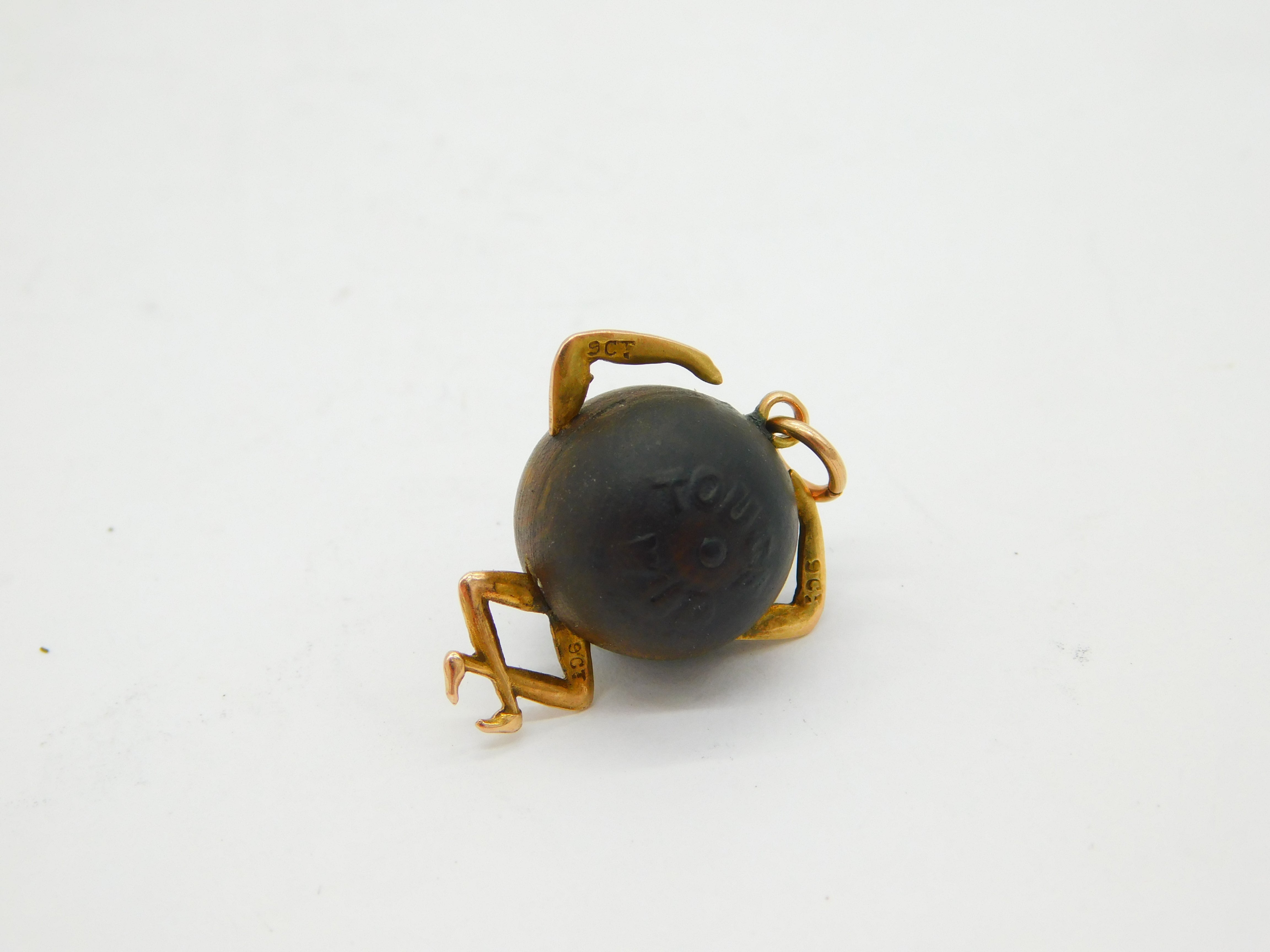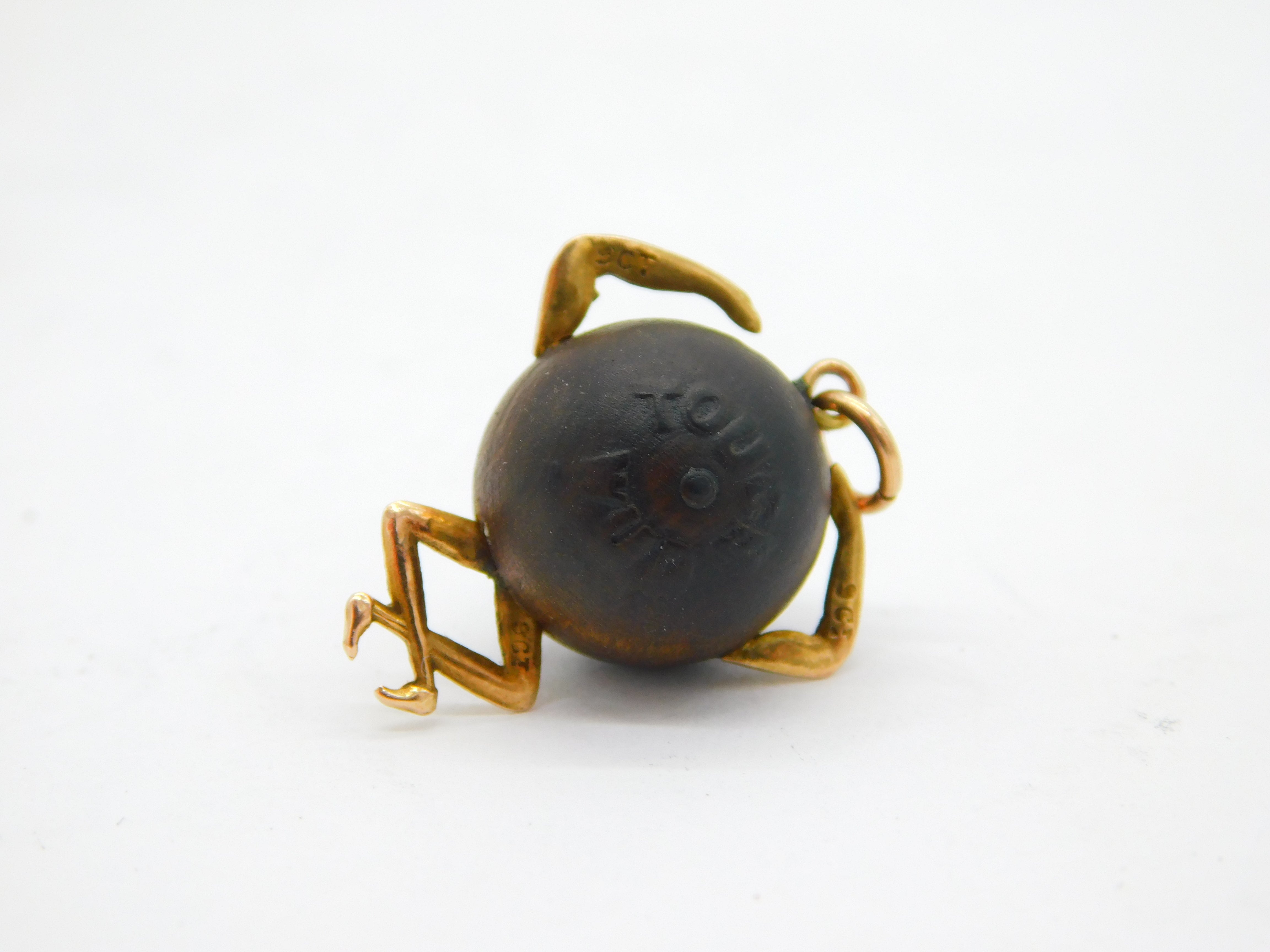 WW1 9ct Gold Mounted 'Touch Wud' Lucky Charm Pendant Antique c1915