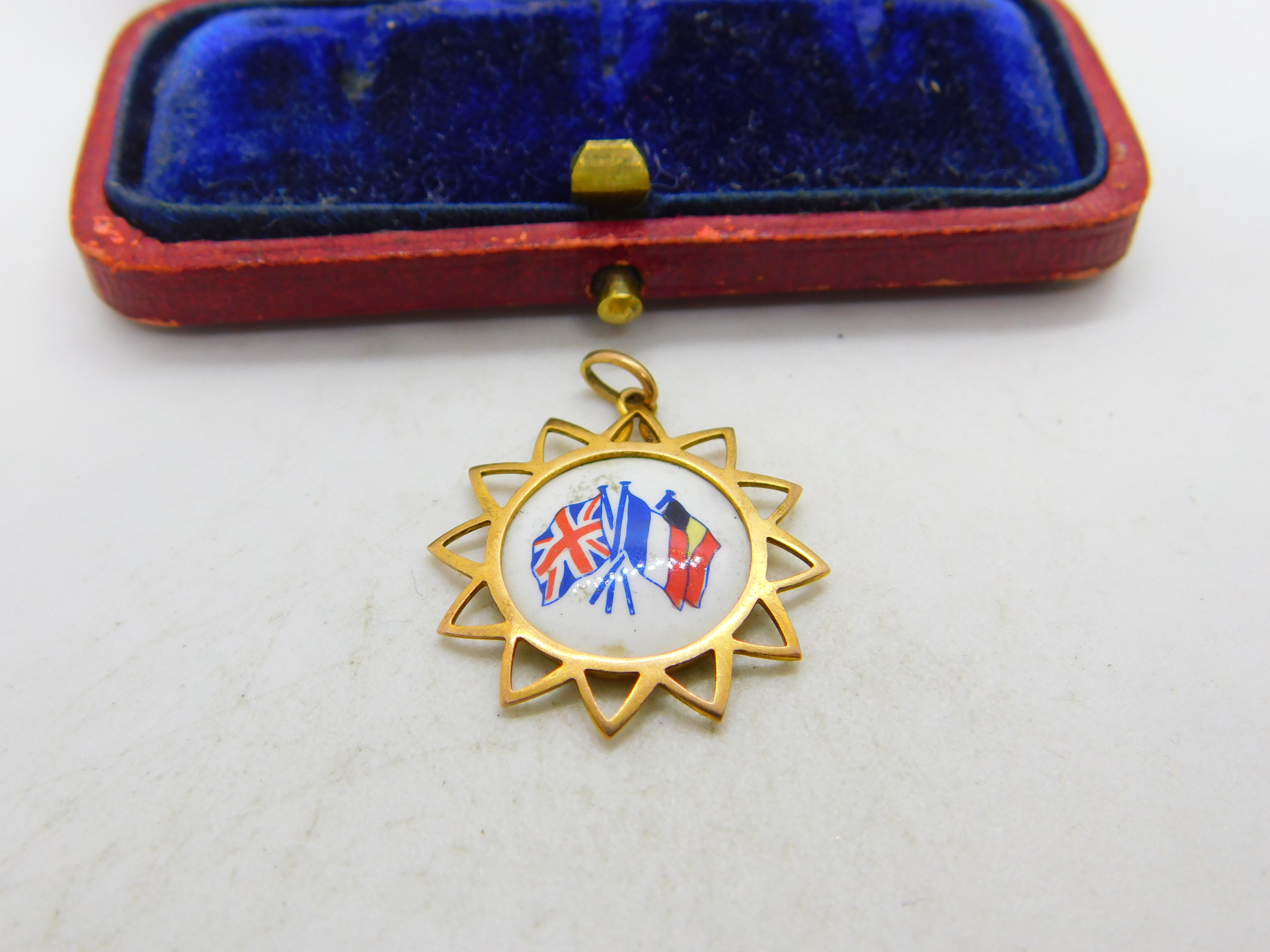 WW1-era 9ct Yellow Gold & Enamel British, French, Belgian Allied Pendant c1915