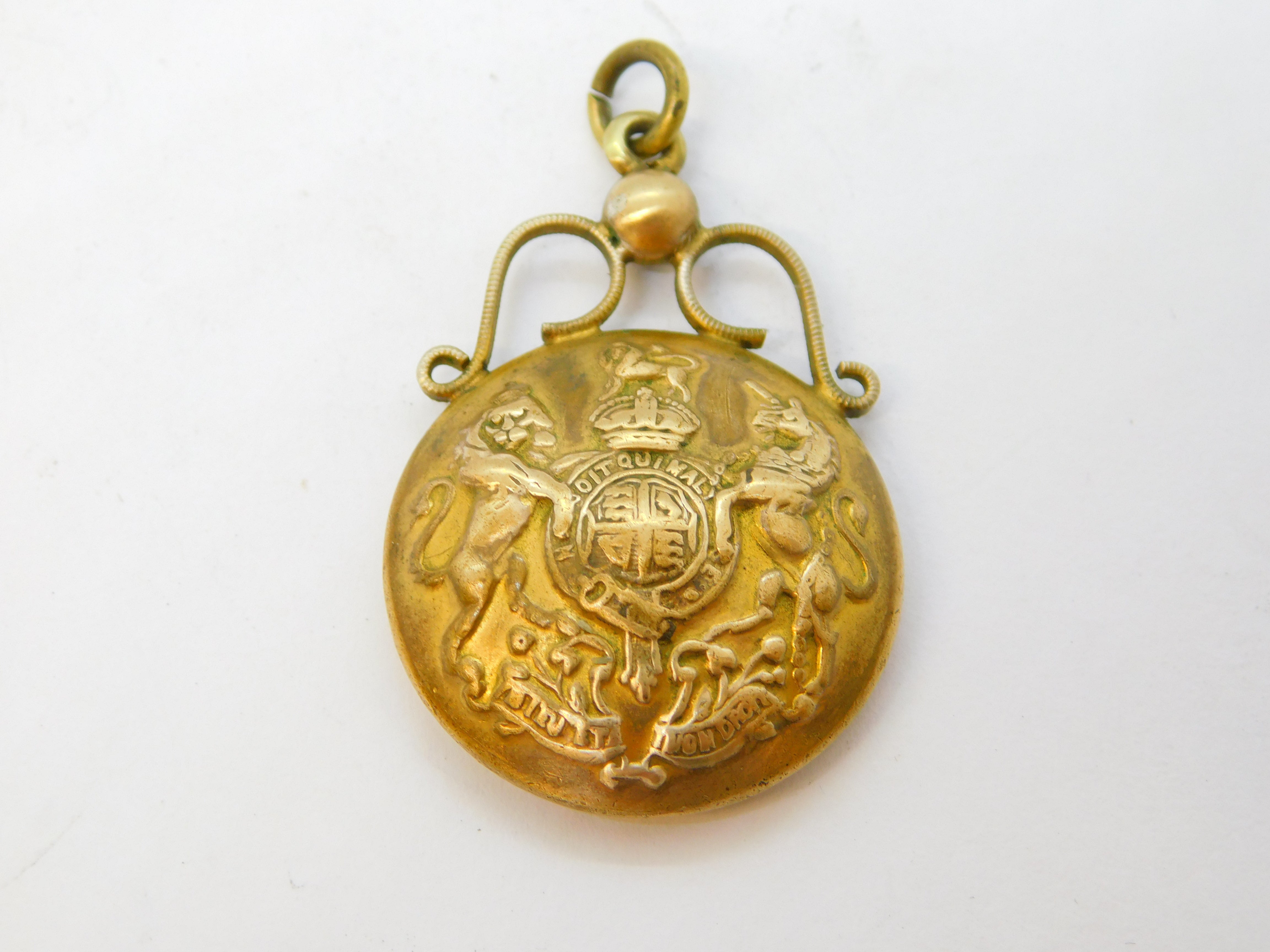 WW1-era Rolled Gold Military Button Form Sweetheart Locket Antique c1915
