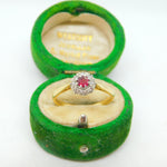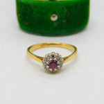 18ct Yellow Gold, 0.1ct Ruby & Diamond Engagement Ring Antique c1930 Deco