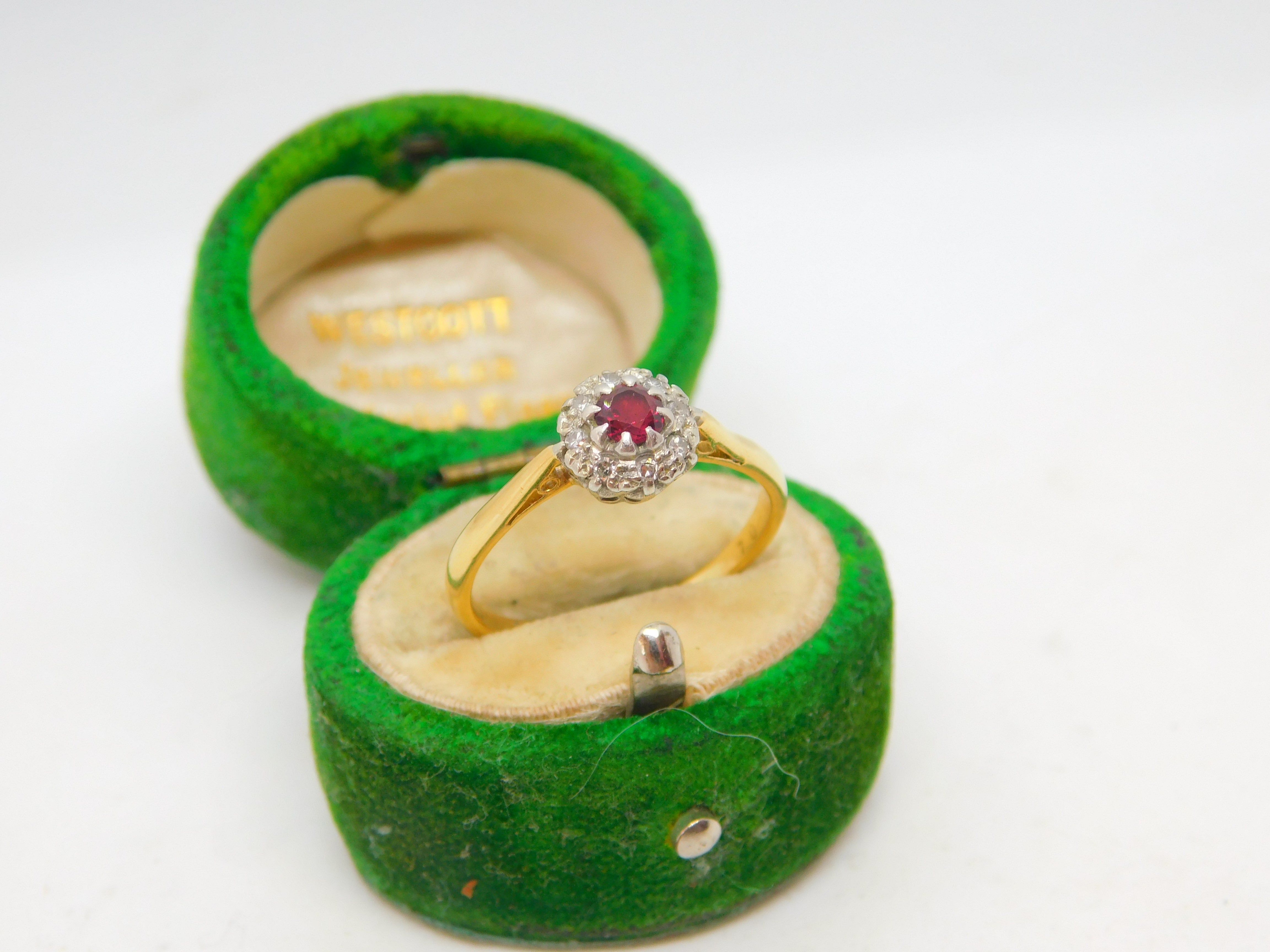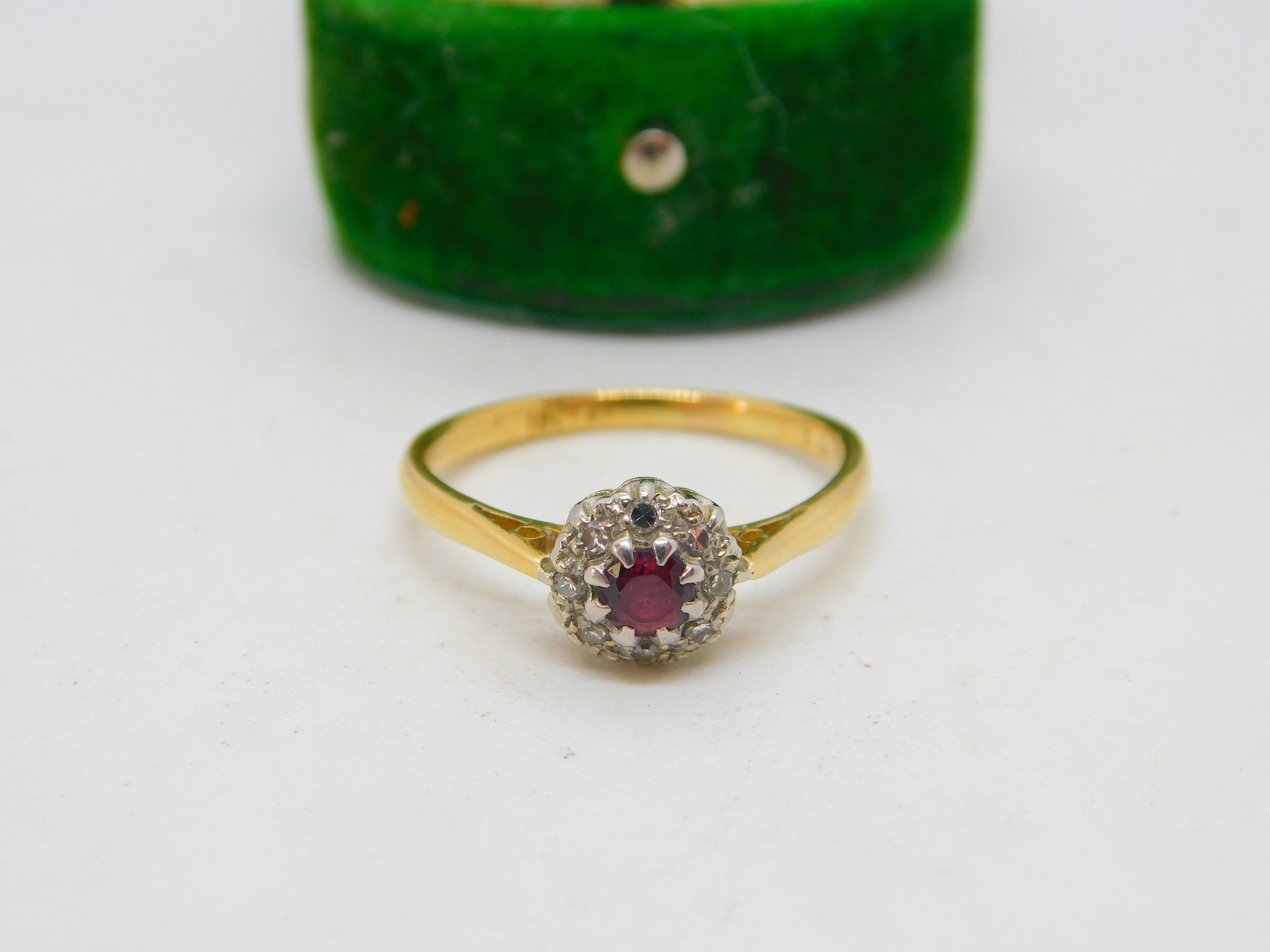 Details: A fantastic and wonderfully designed antique art deco 18ct yellow gold, 0.1ct ruby & diamond engagement ring hallmarked to the interior band c1920, the stones have all been tested. This is a wonderful item that would make a perfect gift or addition to any collection. The BOX pictured is for PRESENTATION ONLY and is NOT included in the listings but used to frame the pictures unless specifically stated otherwise.