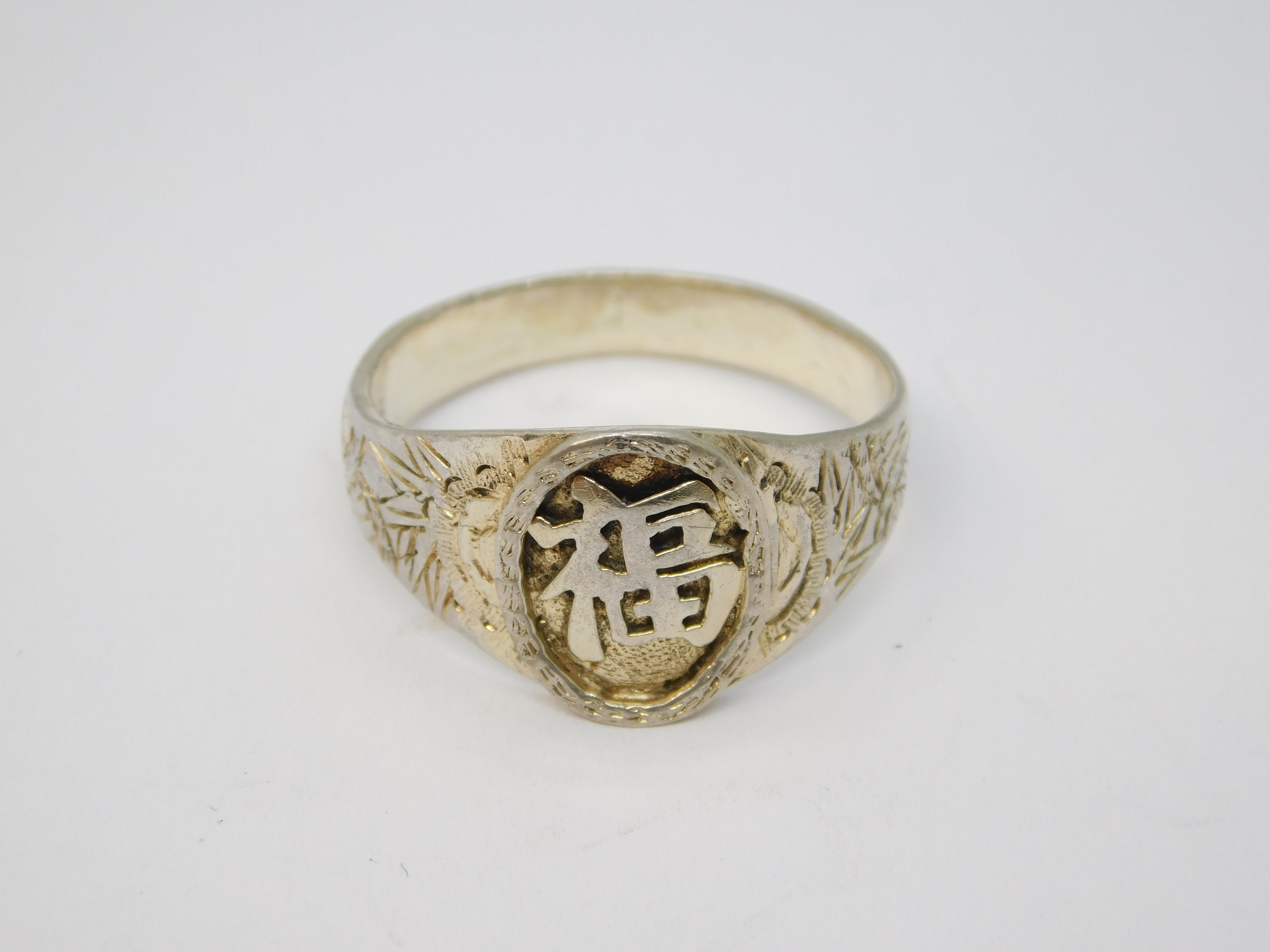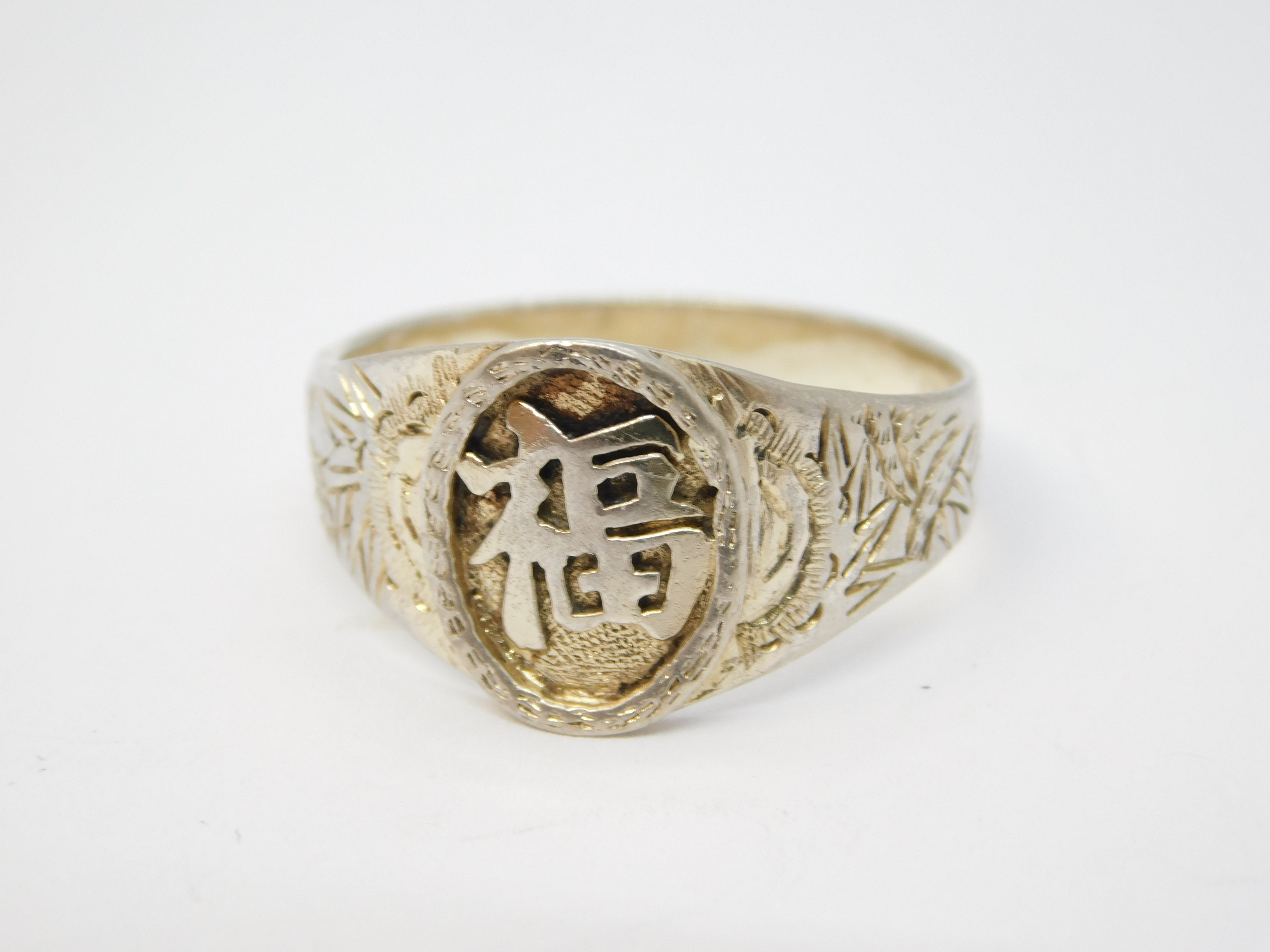 20th Century Chinese Sterling Silver Good Fortune Signet Ring Antique c1920