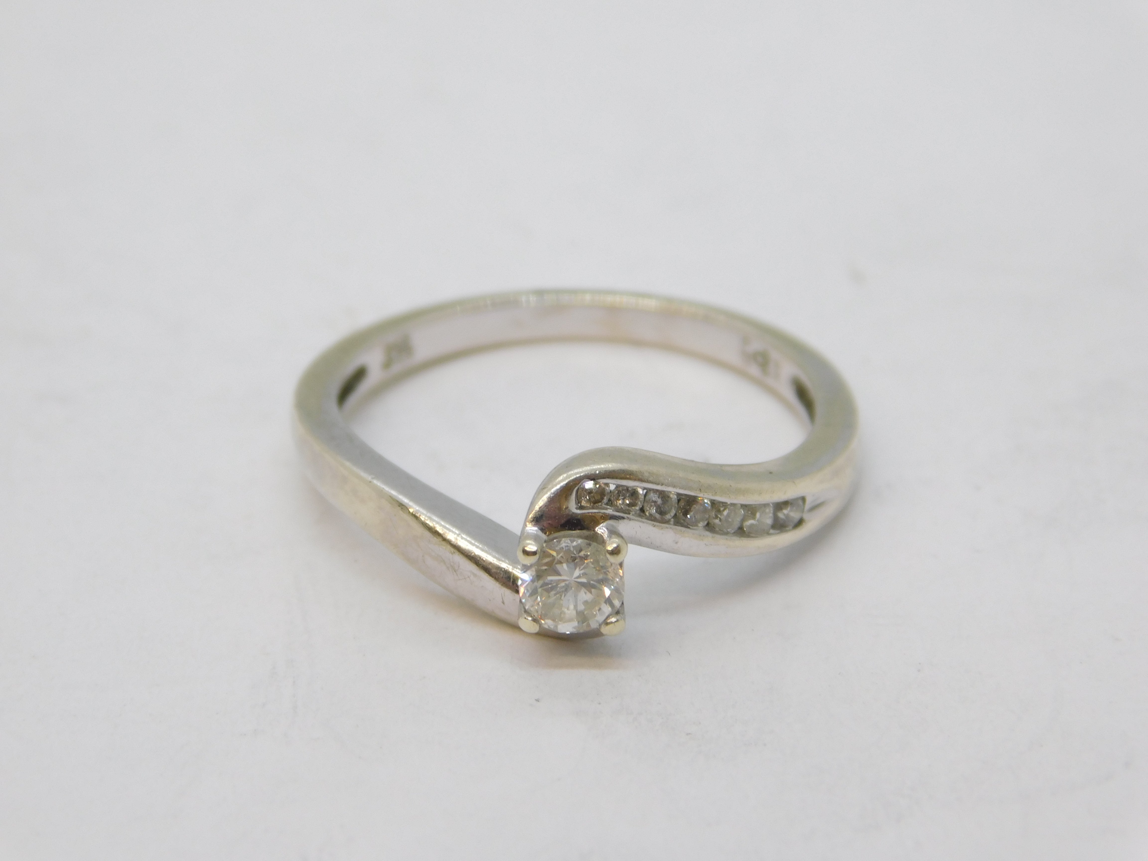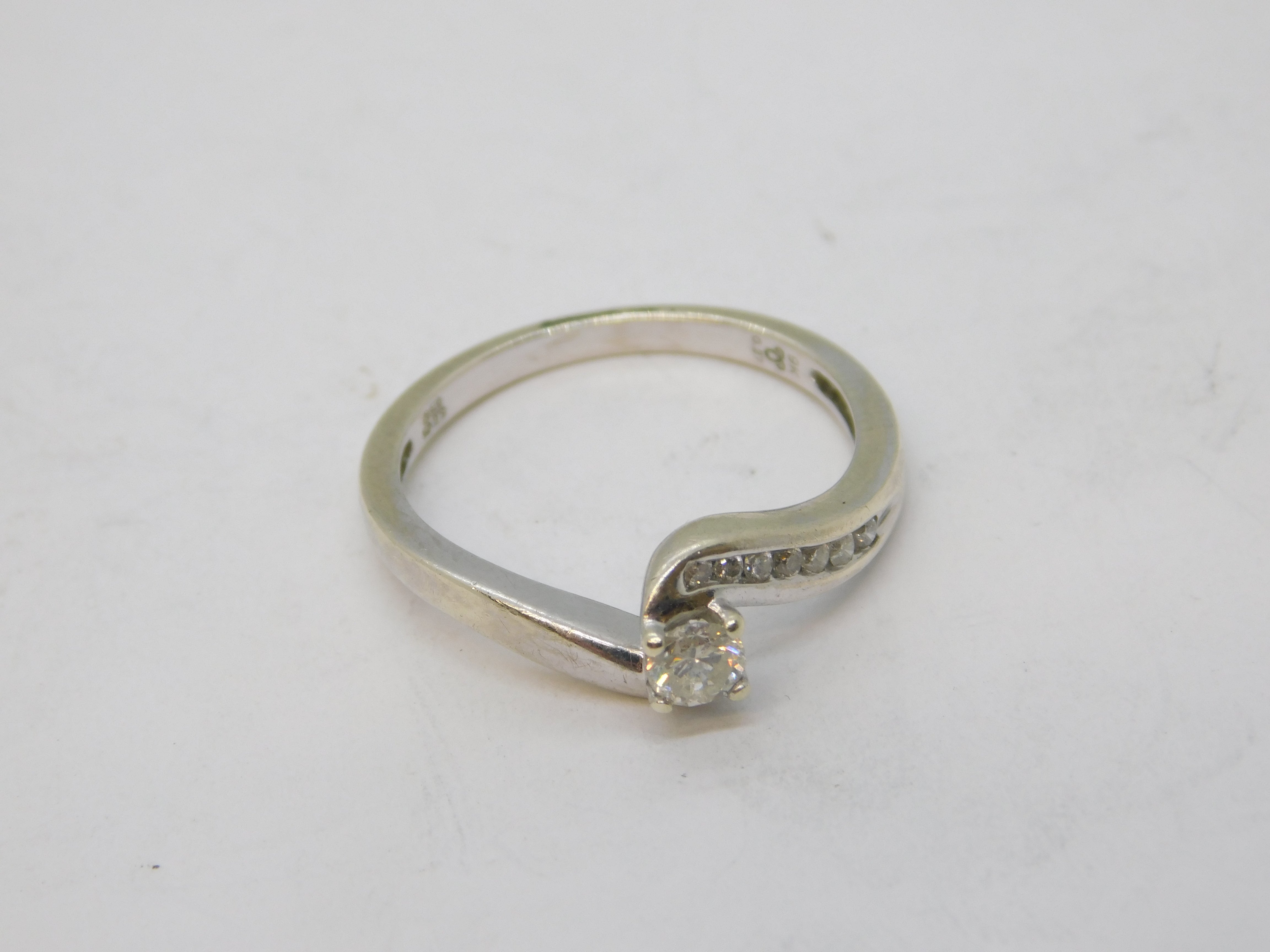 9ct White Gold & 0.2ct Brilliant Cut Diamond Crossover Ring Vintage London