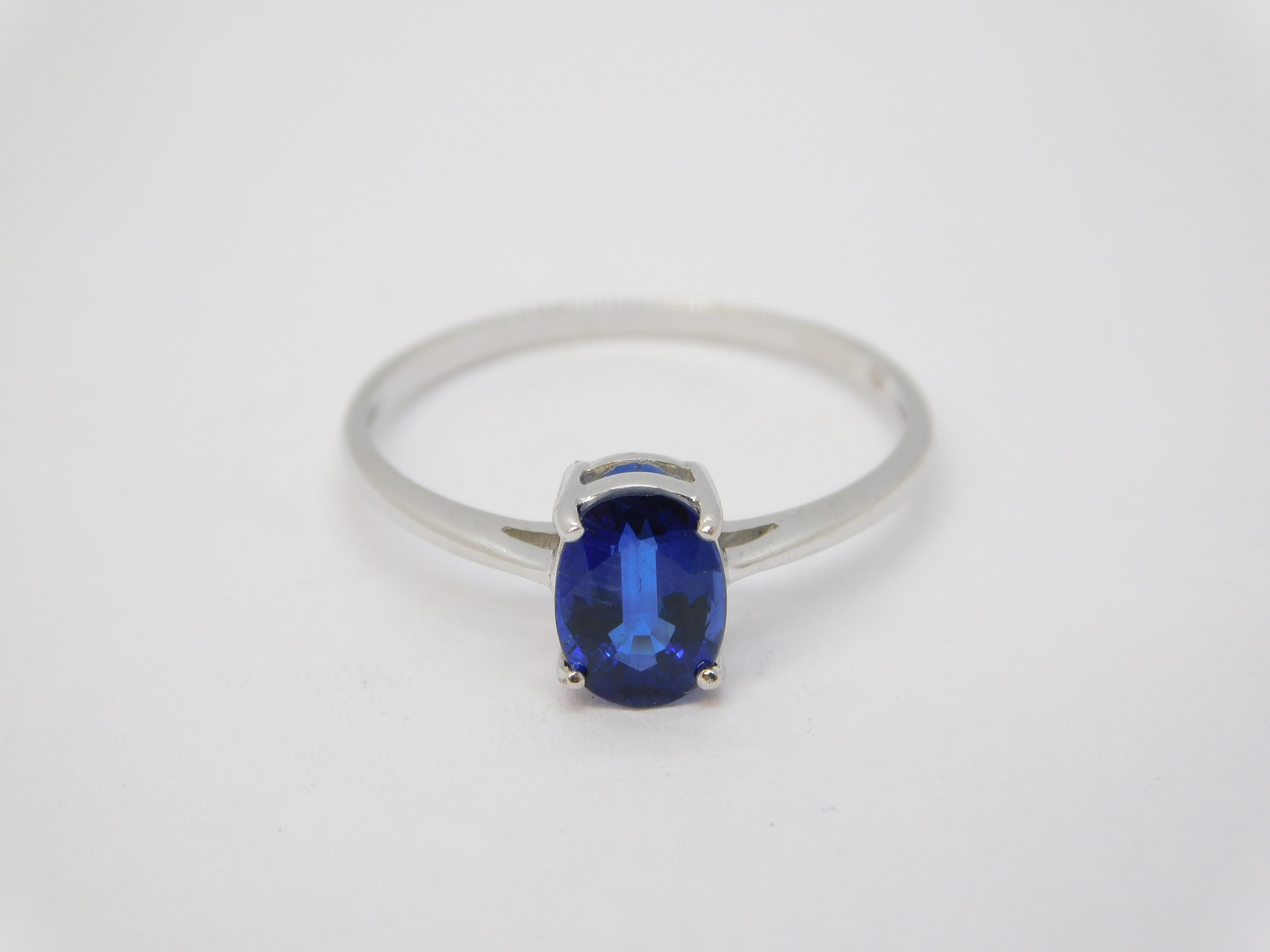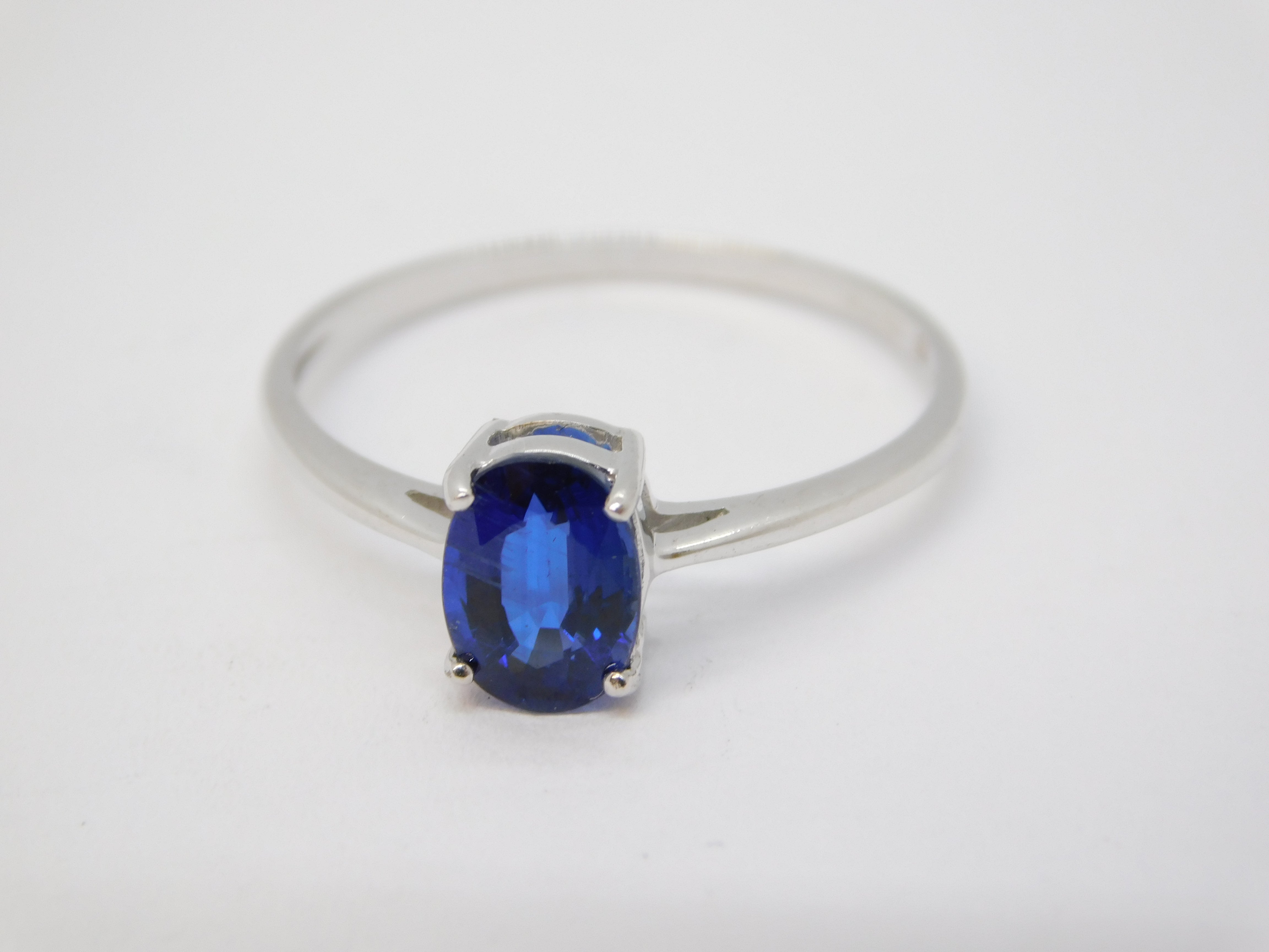 9ct White Gold & 0.6ct Oval-Cut Sapphire Solitaire Ring Vintage c1990 Birmingham