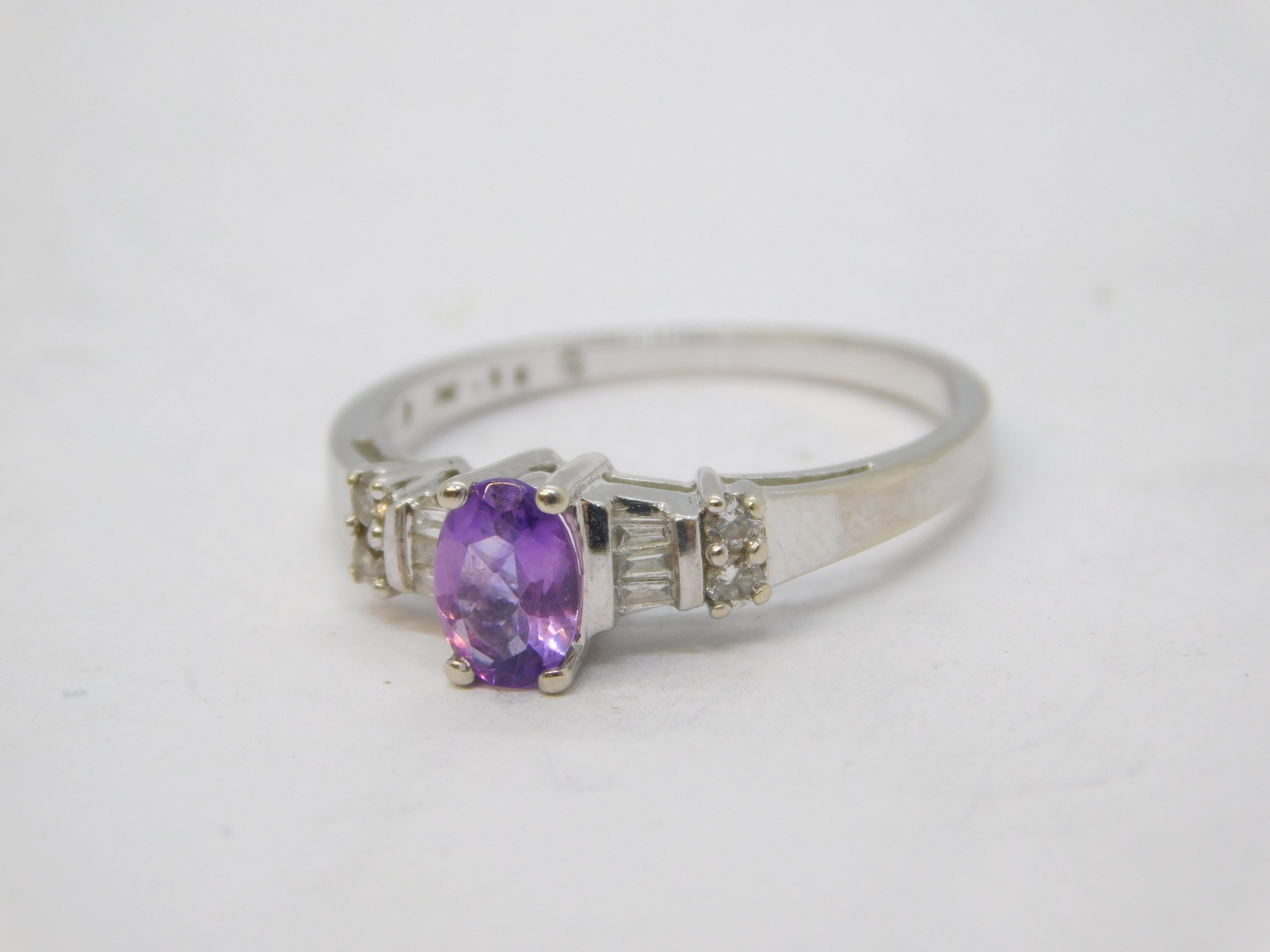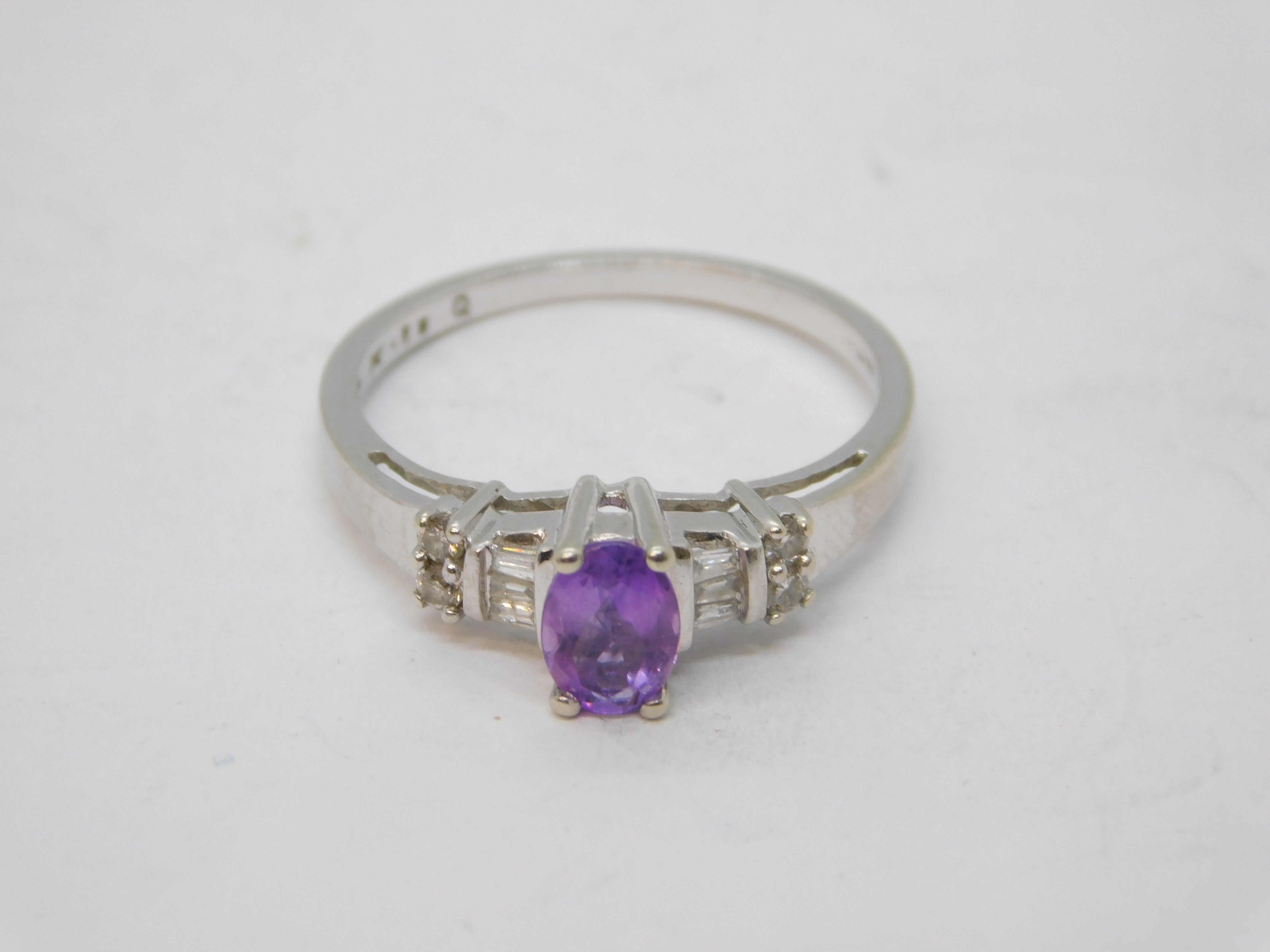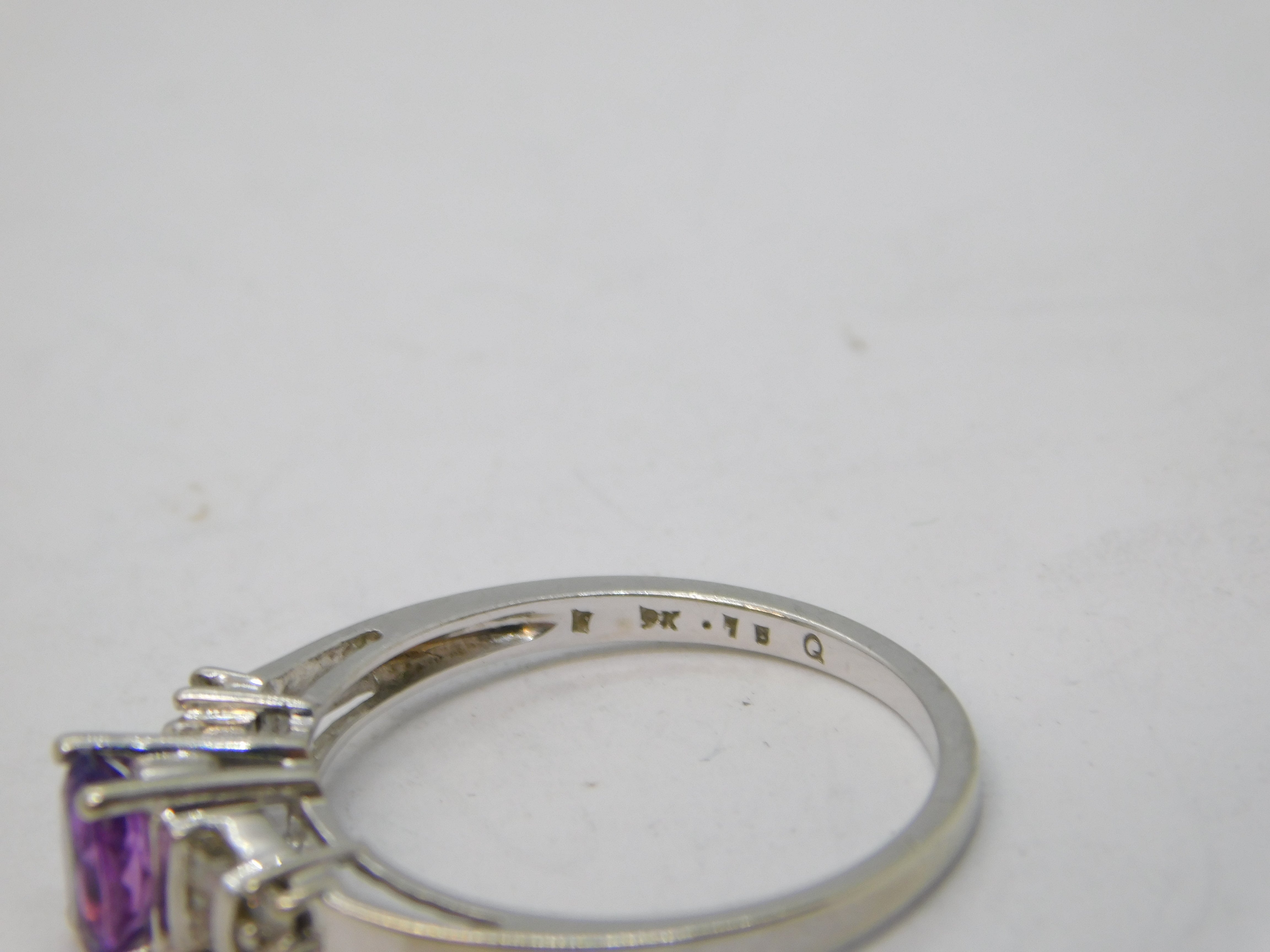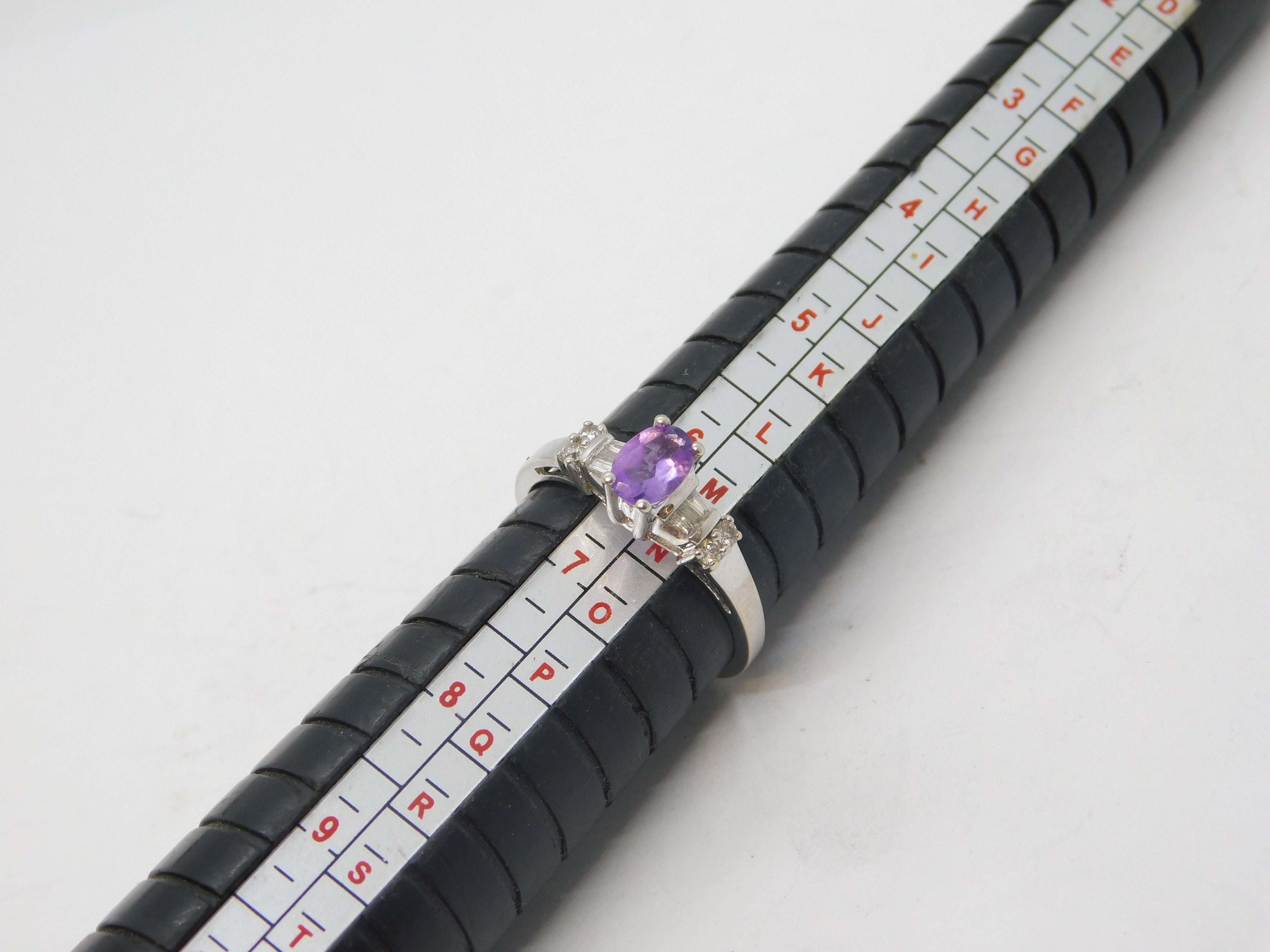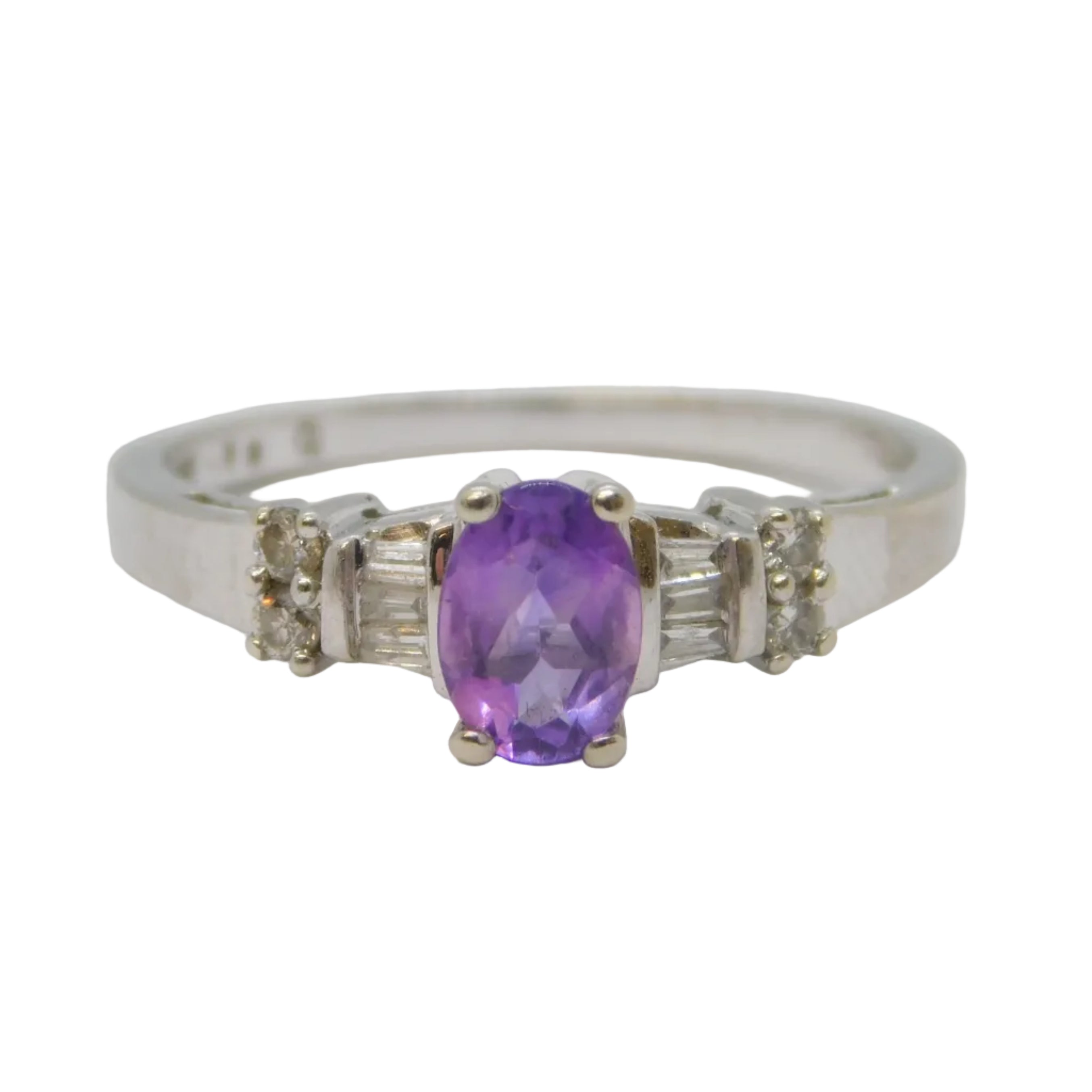9ct White Gold, Amethyst & 0.15ct Diamond Dress Ring Vintage London