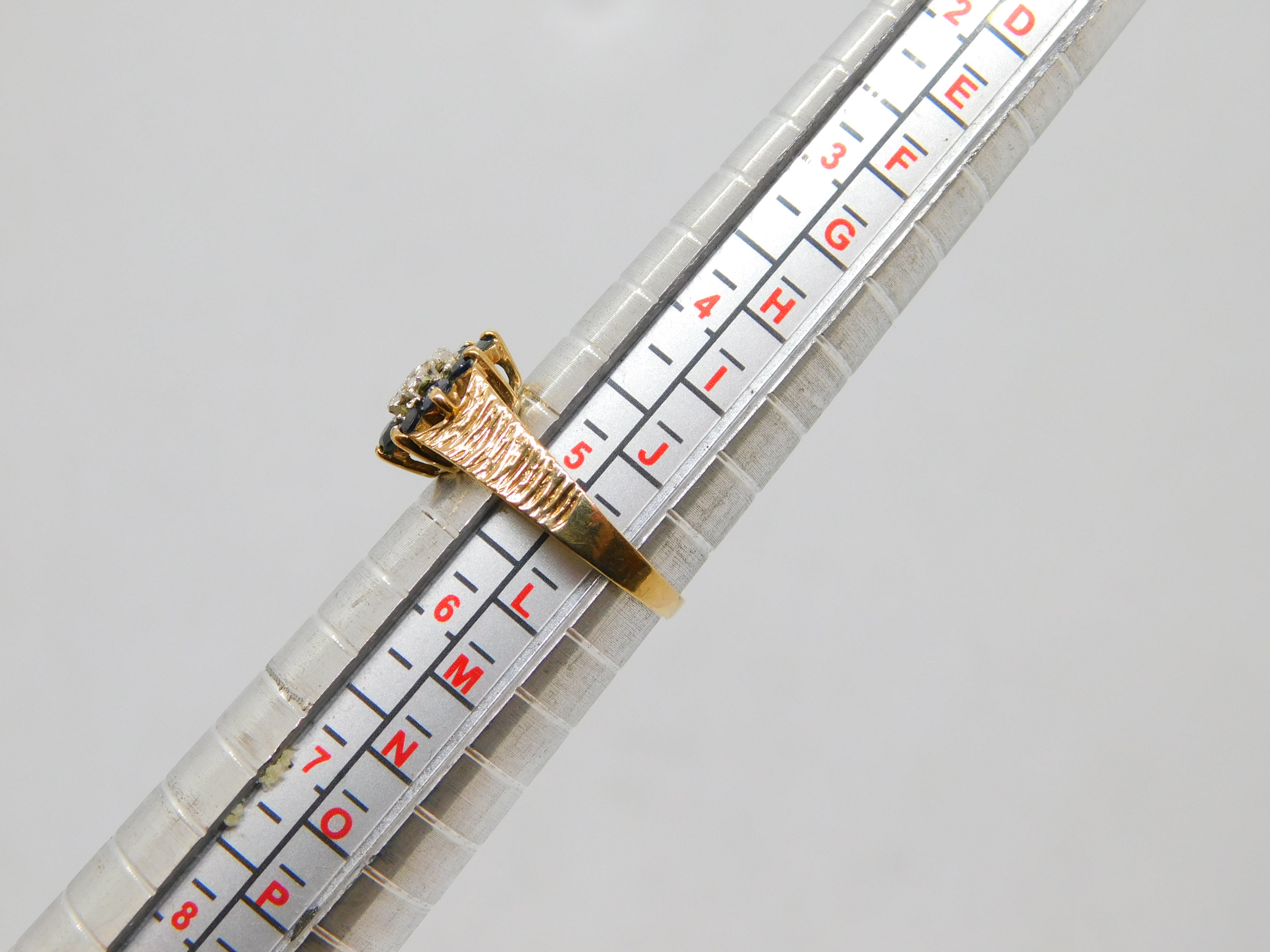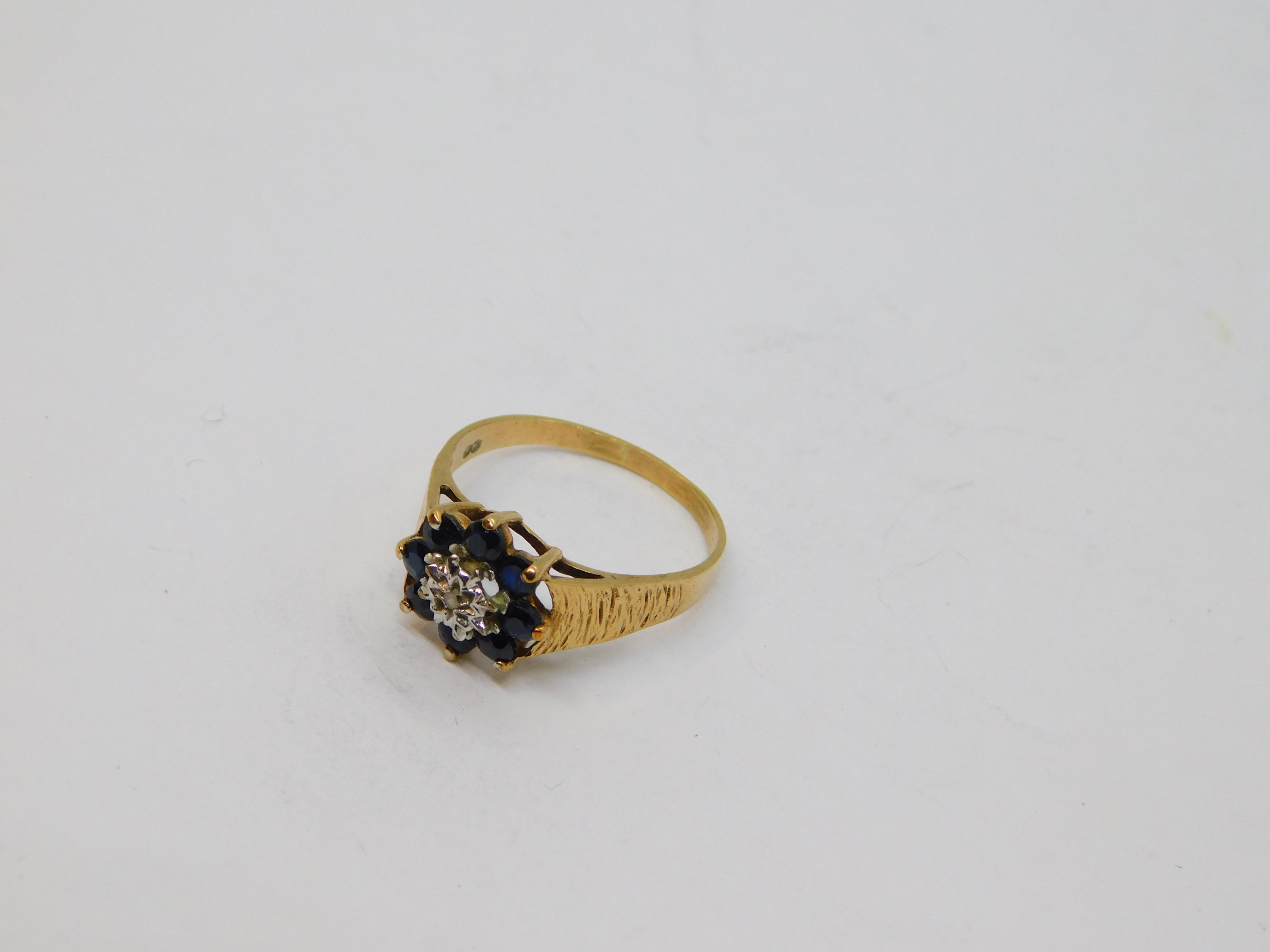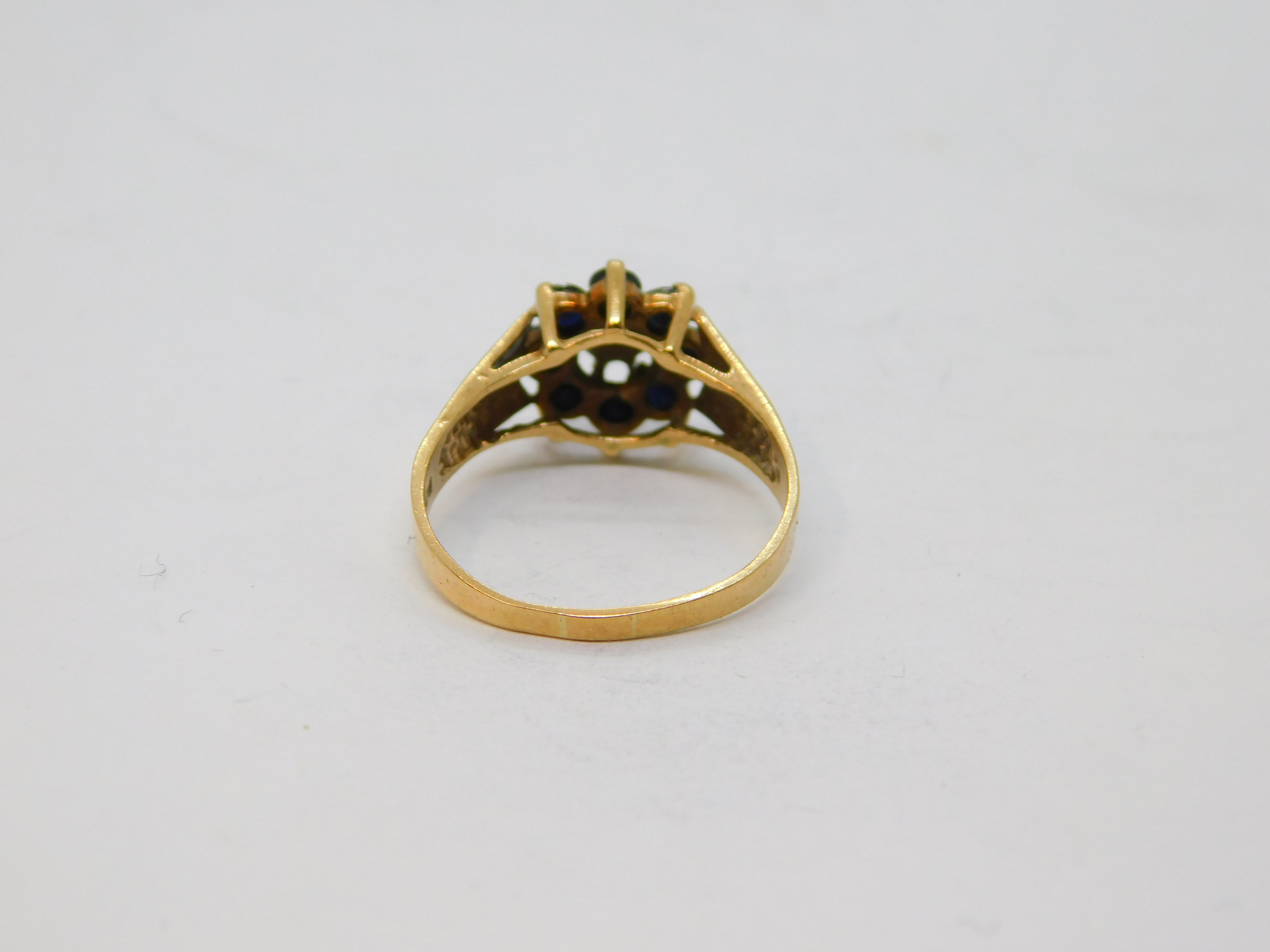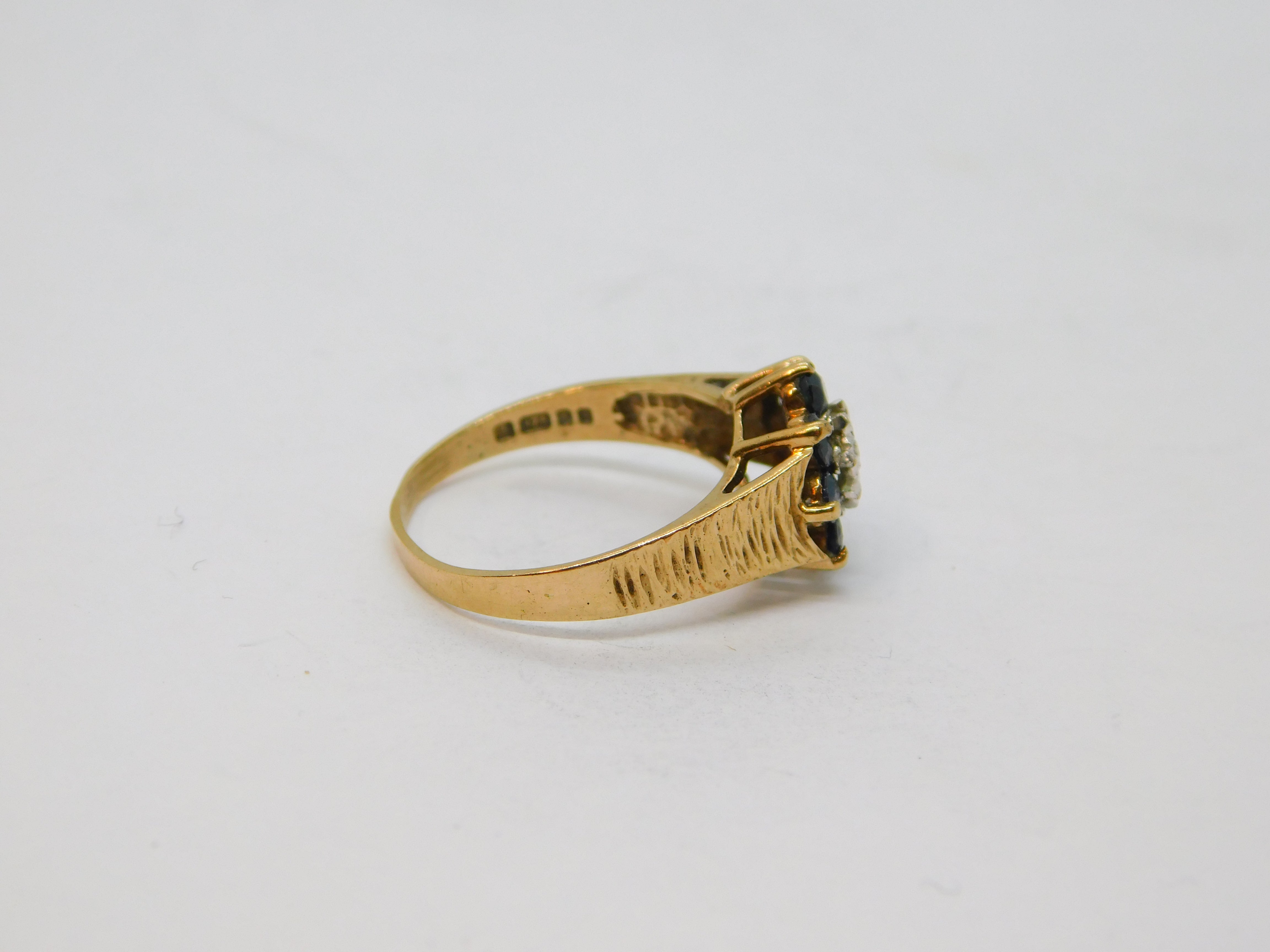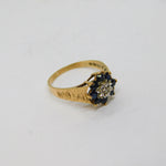 9ct Yellow Gold Sapphire & Diamond Cluster Dress Ring Vintage 1980 London