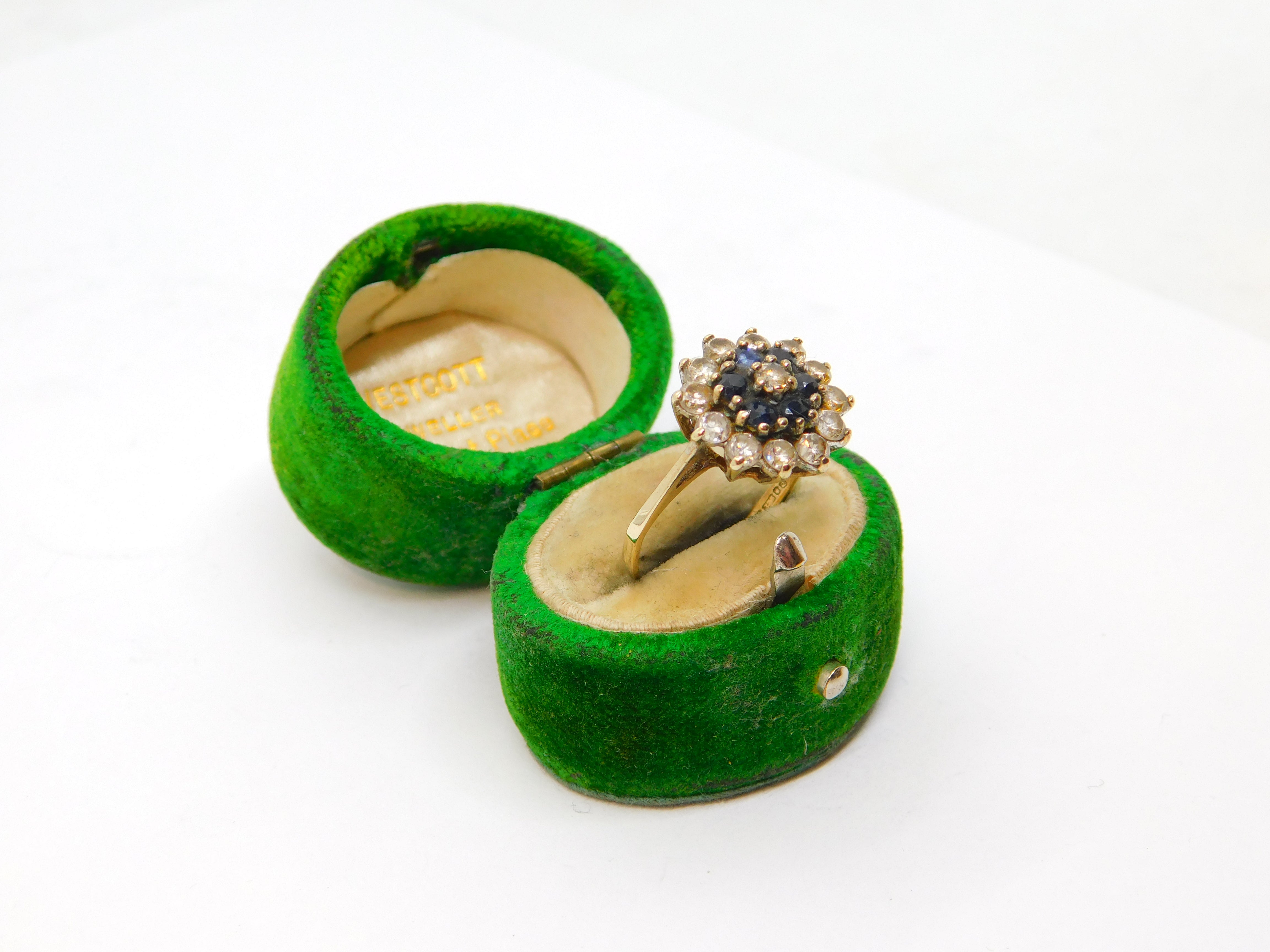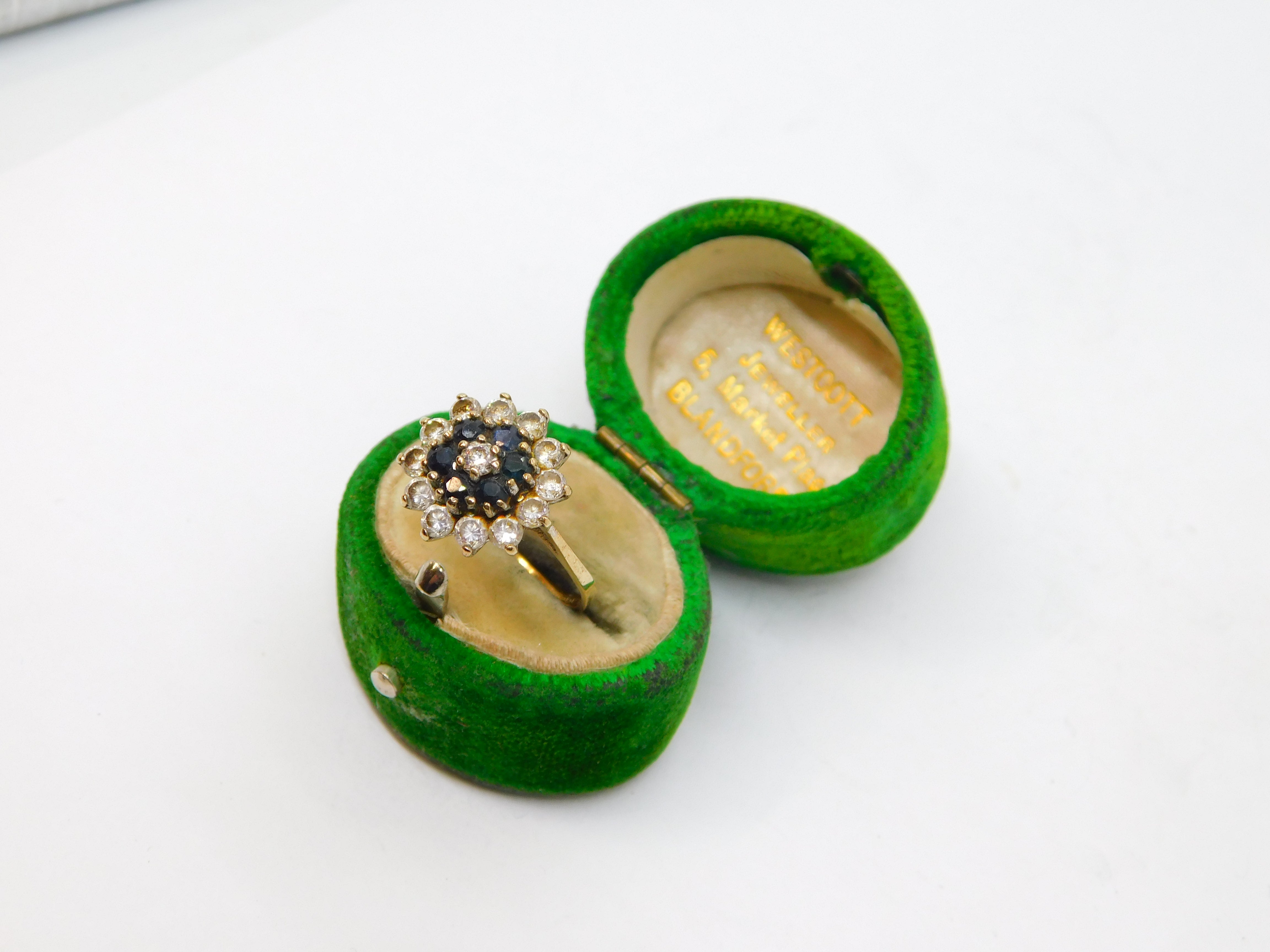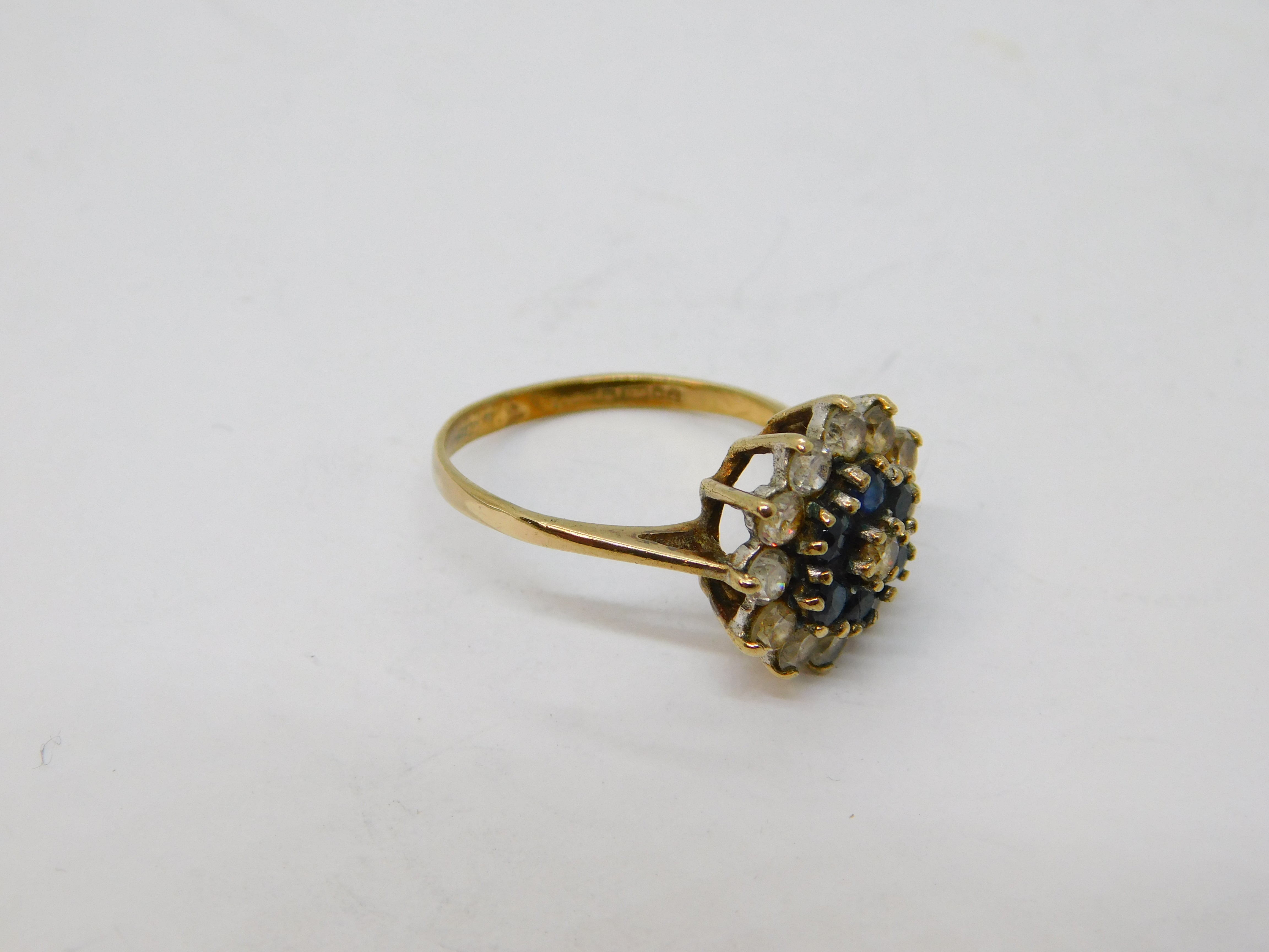 9ct Yellow Gold Sapphire & Spinel Cluster Dress Ring Vintage 1990 London