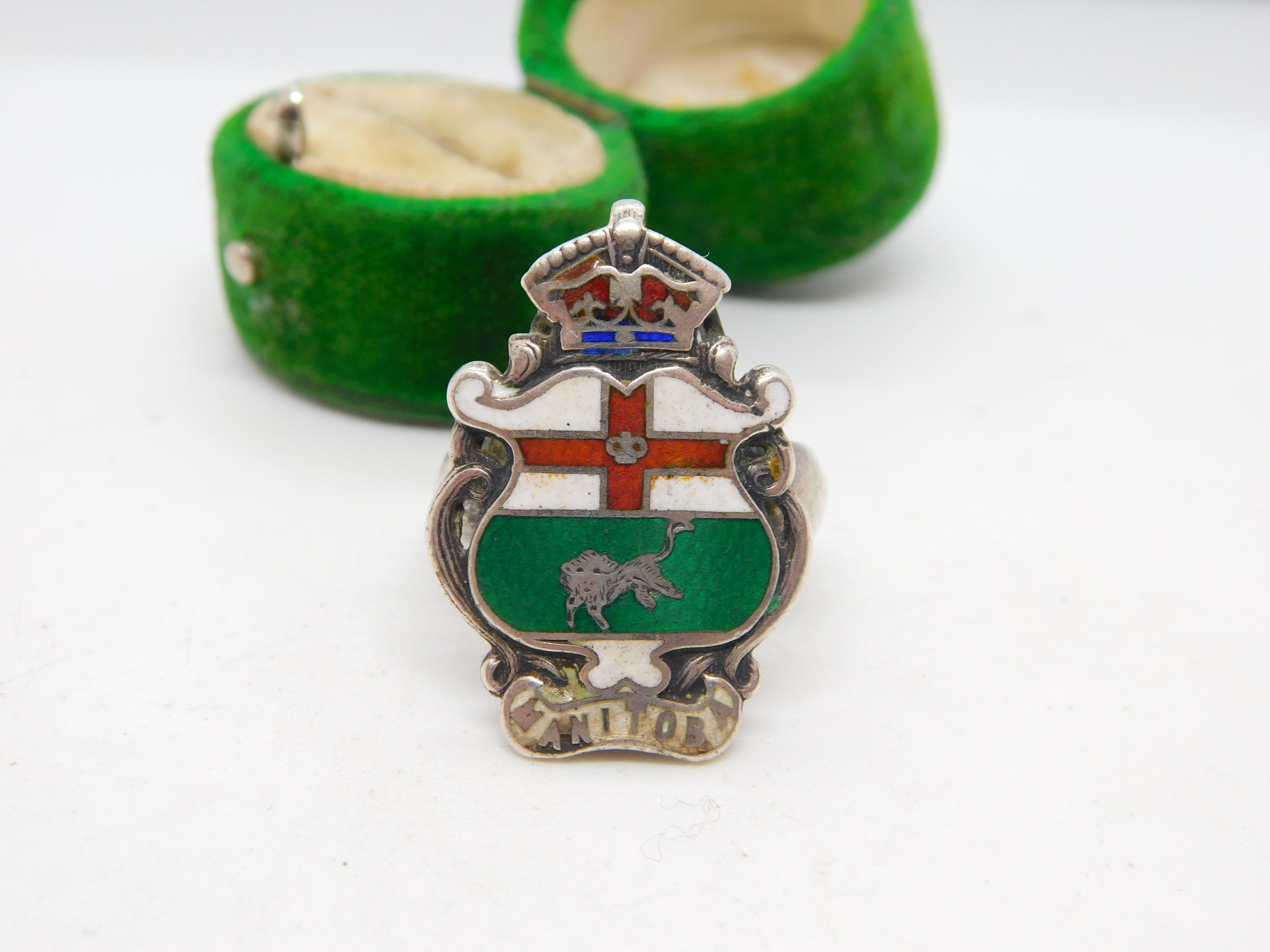 Canadian Large Sterling Silver Enamel Manitoba Signet Ring Antique c1930 Deco