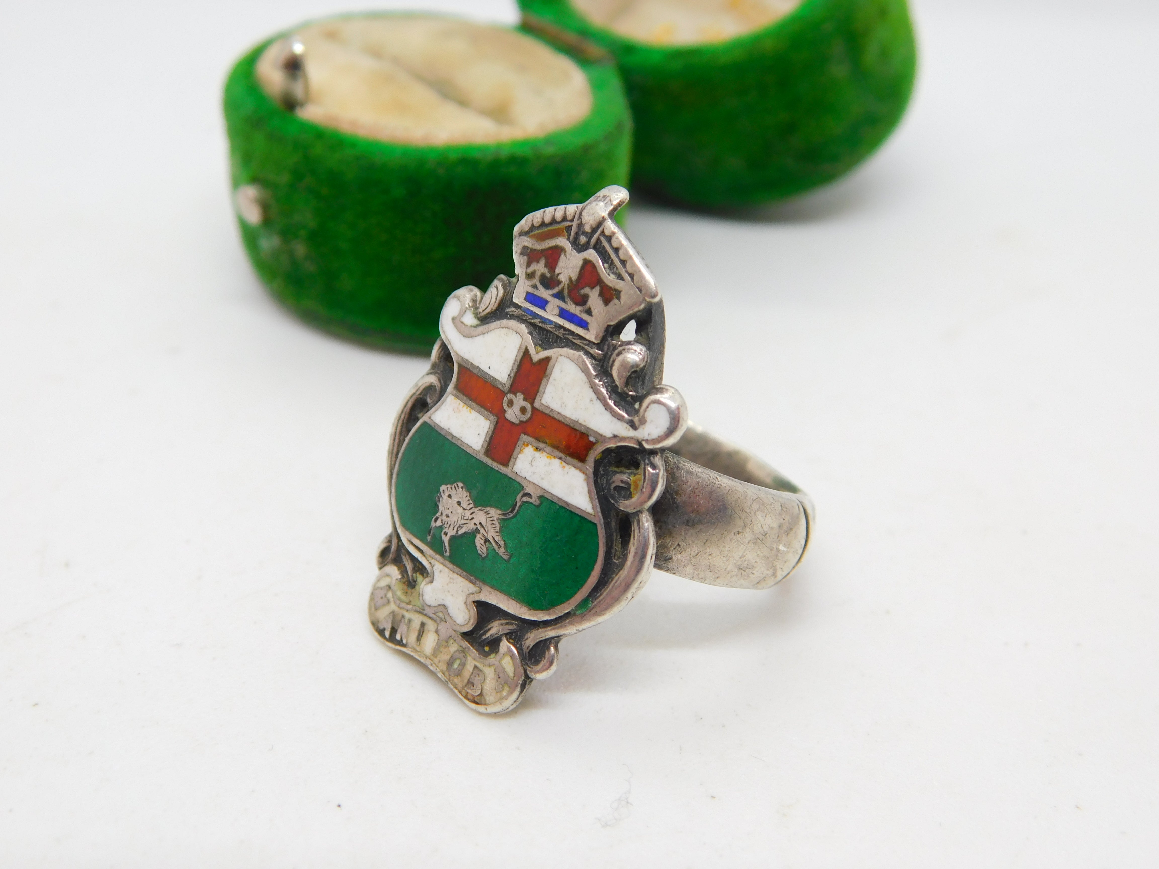 Details: A fantastic and wonderfully designed antique art deco sterling silver large signet ring with the crest of Manitoba Canada in enamel to the front c1930, the silver has been XRF tested. This is a wonderful item that would make a perfect gift or addition to any collection. The BOX pictured is for PRESENTATION ONLY and is NOT included in the listings but used to frame the pictures unless specifically stated otherwise.