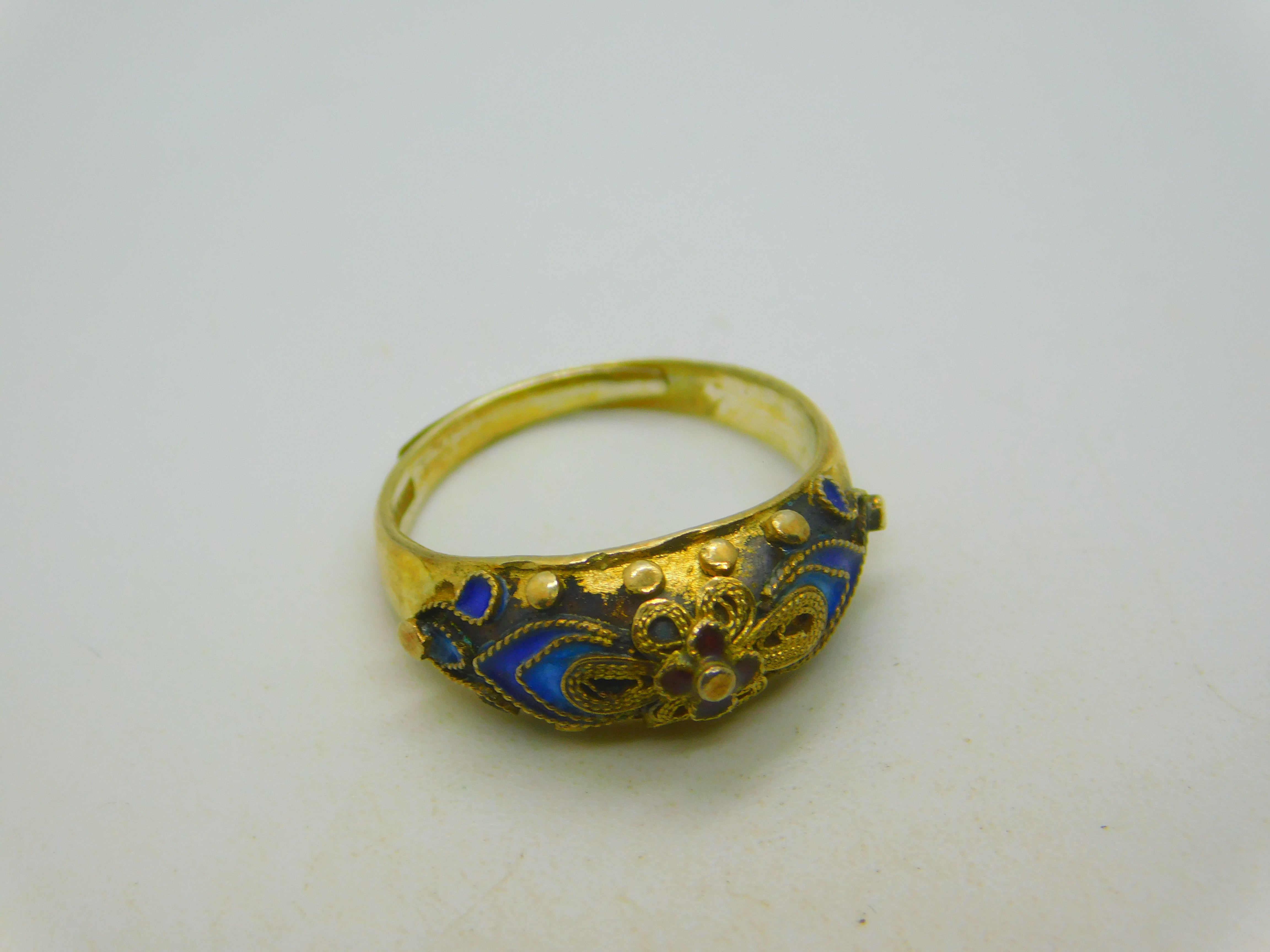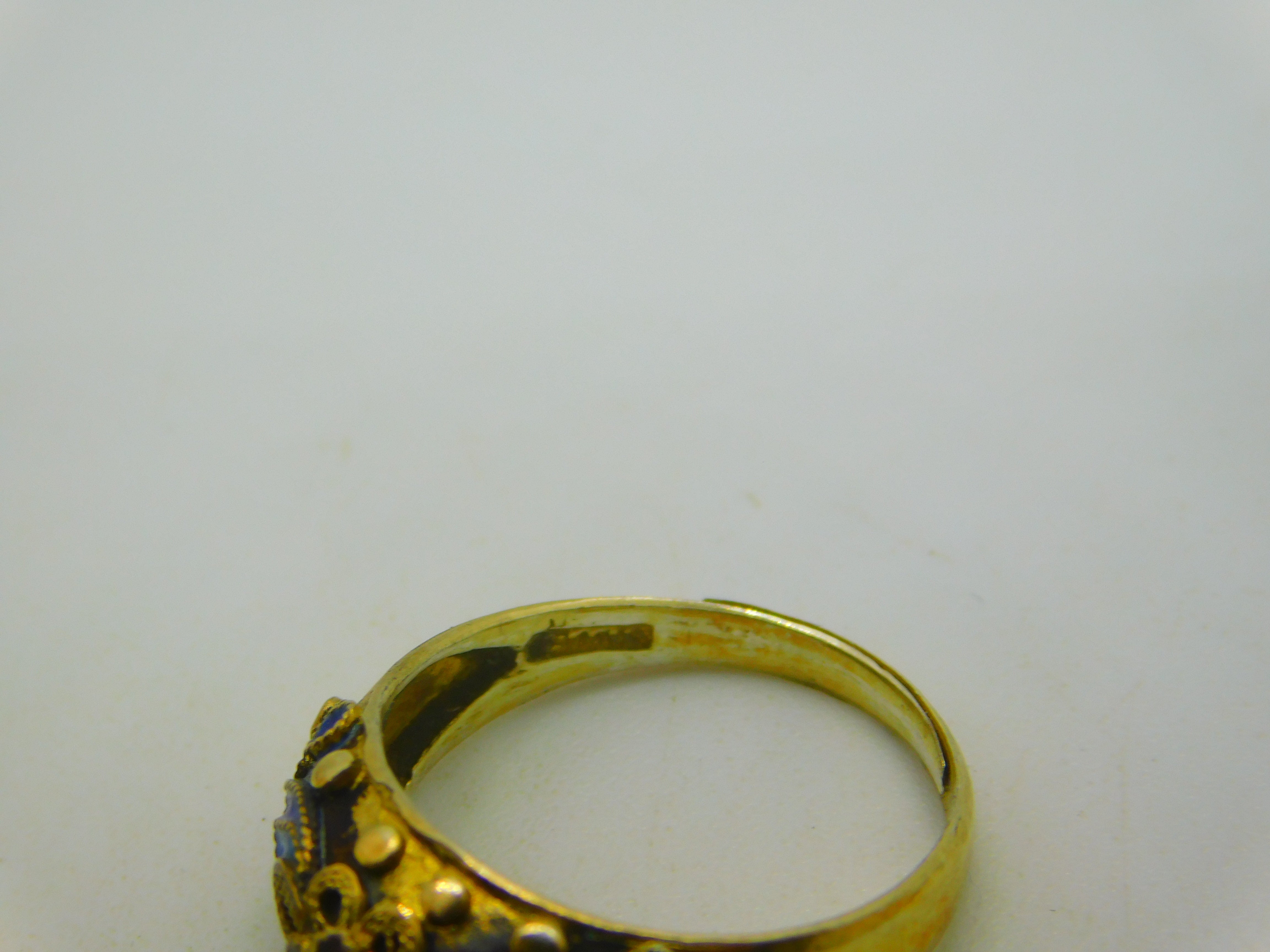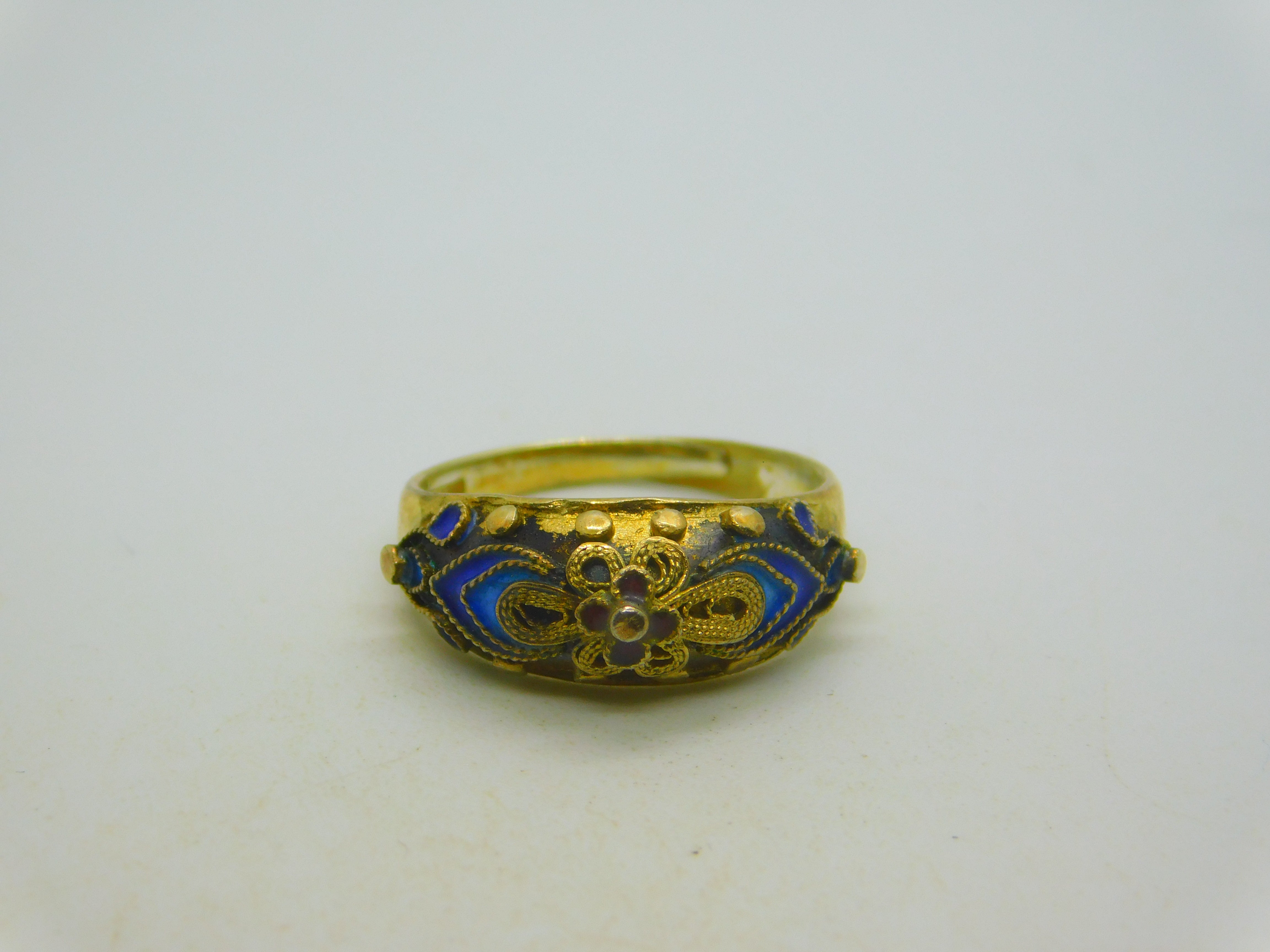 Chinese Sterling Silver Gilt & Enamel Floral Dress Ring Mid-Century c1950