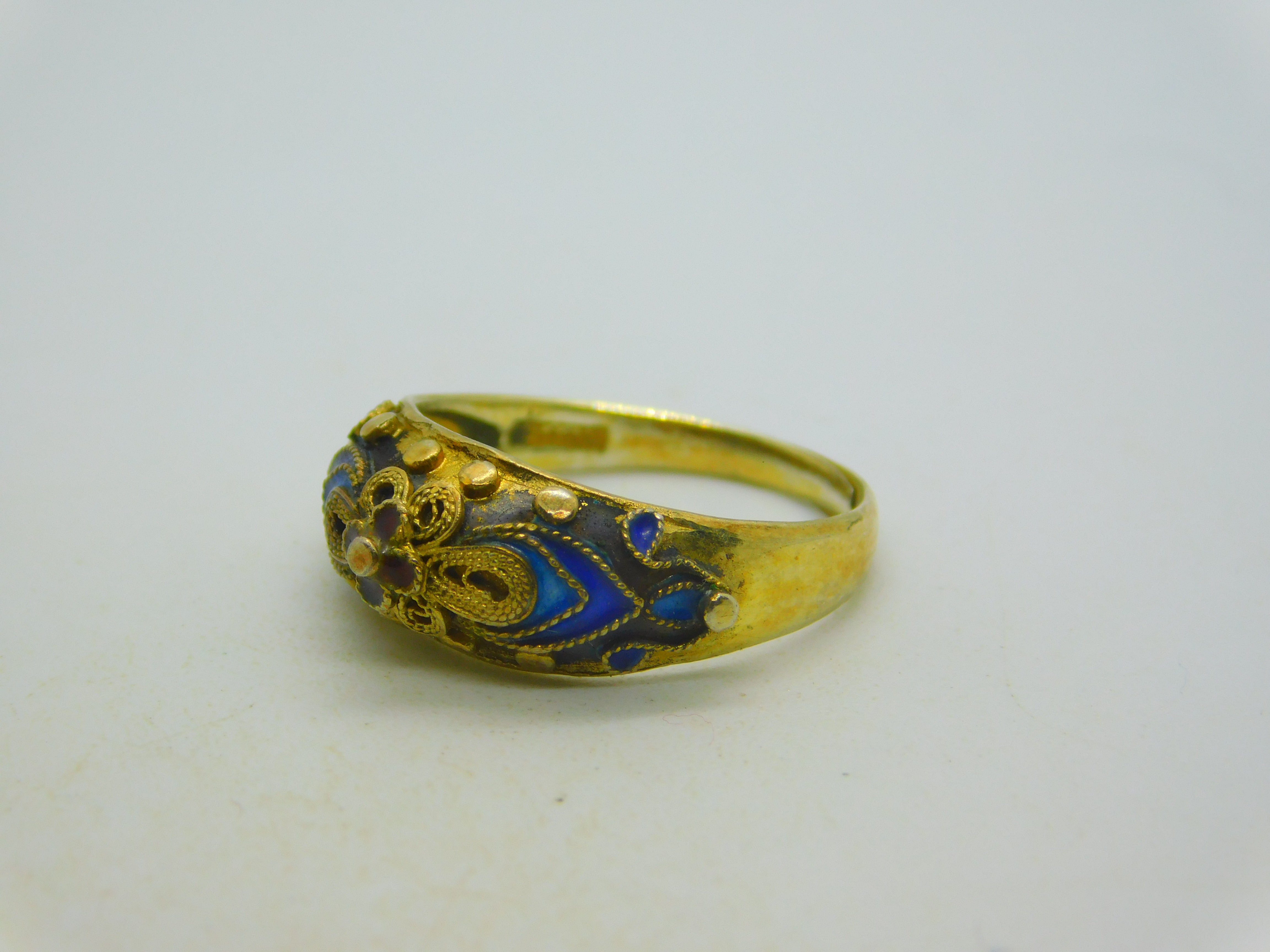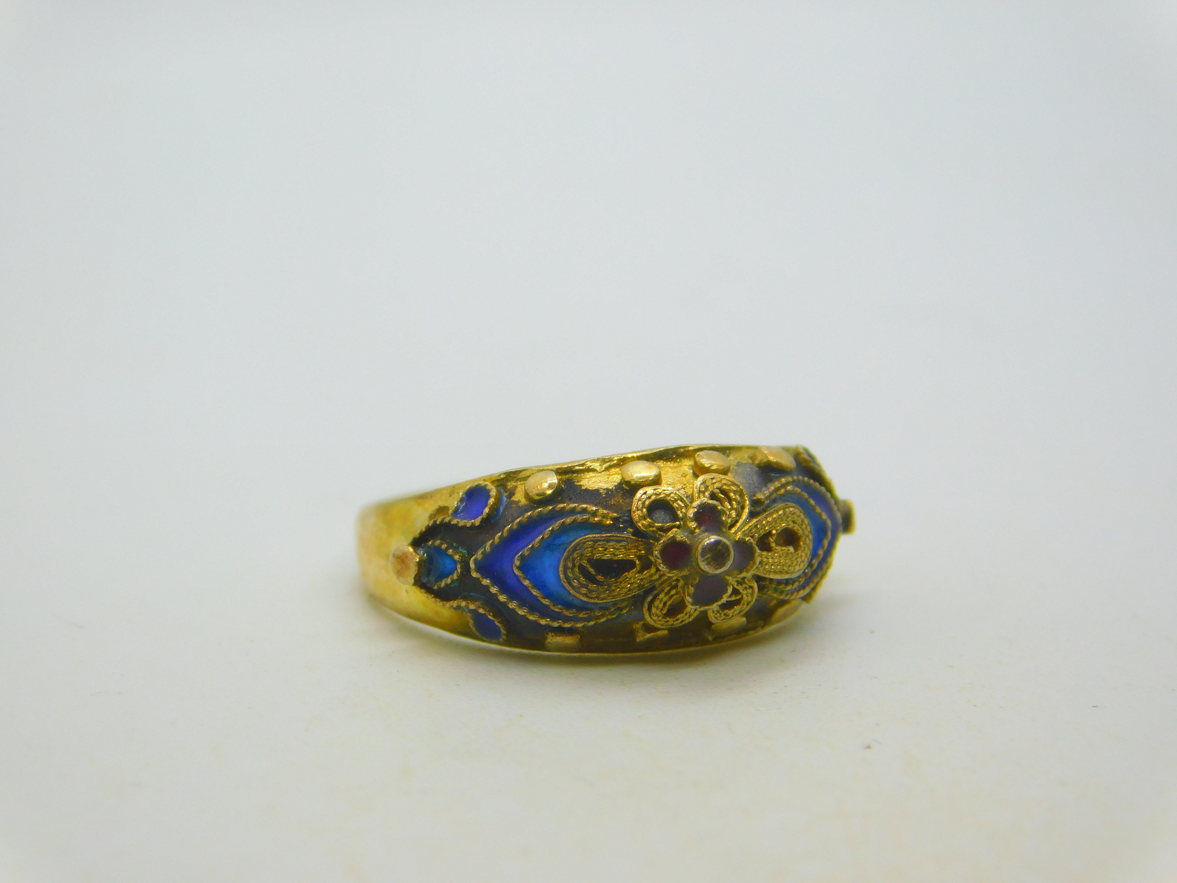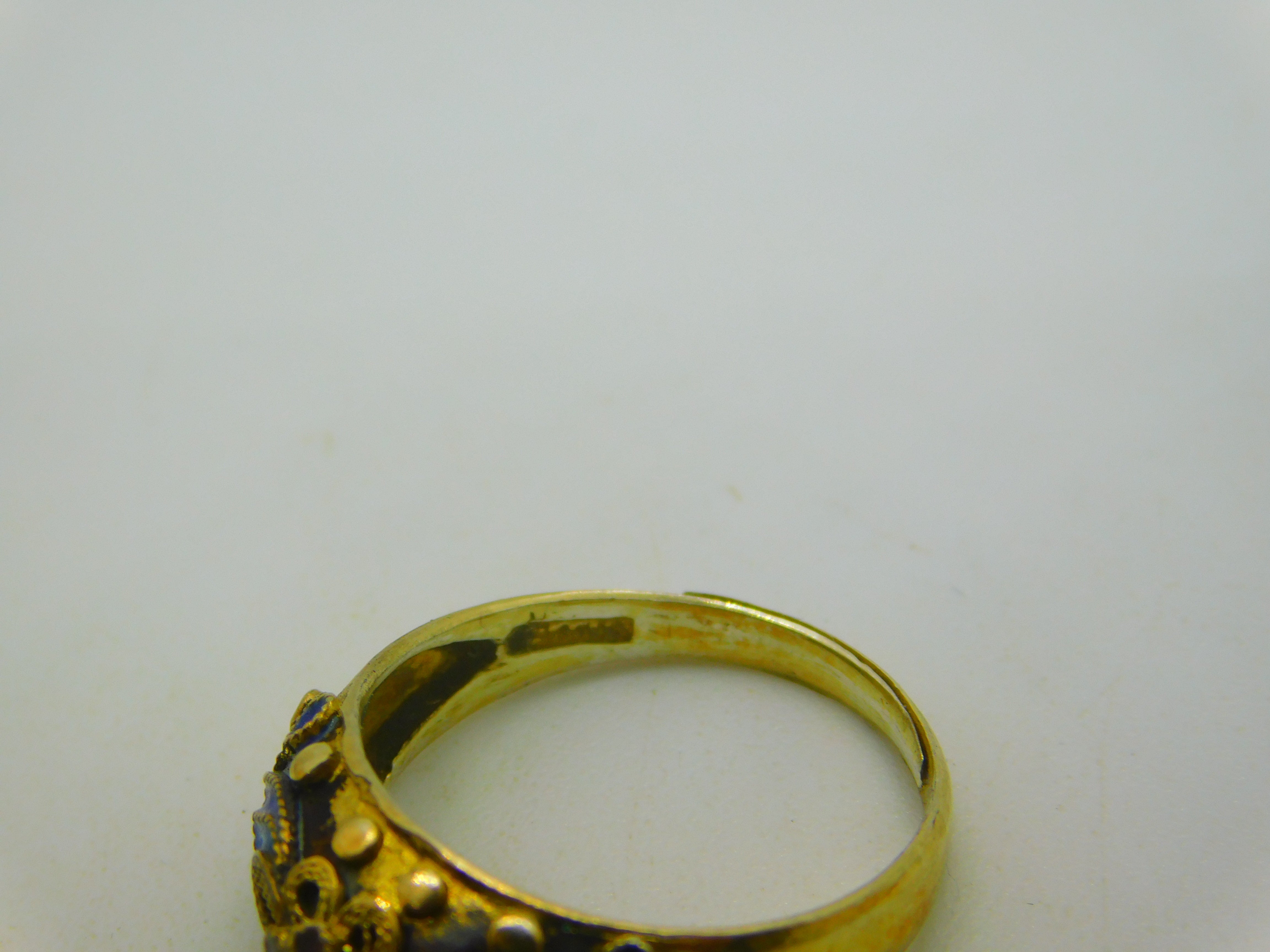 Chinese Sterling Silver Gilt & Enamel Floral Dress Ring Mid-Century c1950