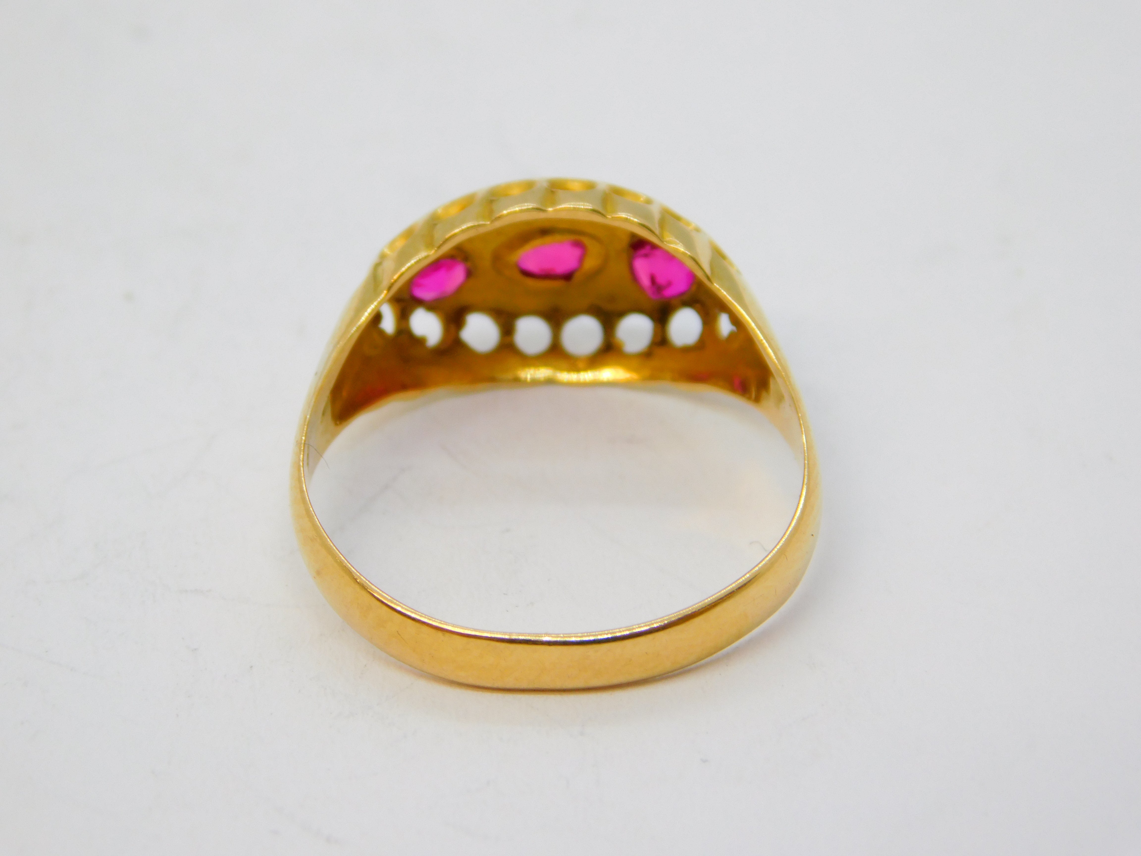Edwardian 18ct Yellow Gold, Ruby & Diamond Boat Ring Antique 1909 Chester