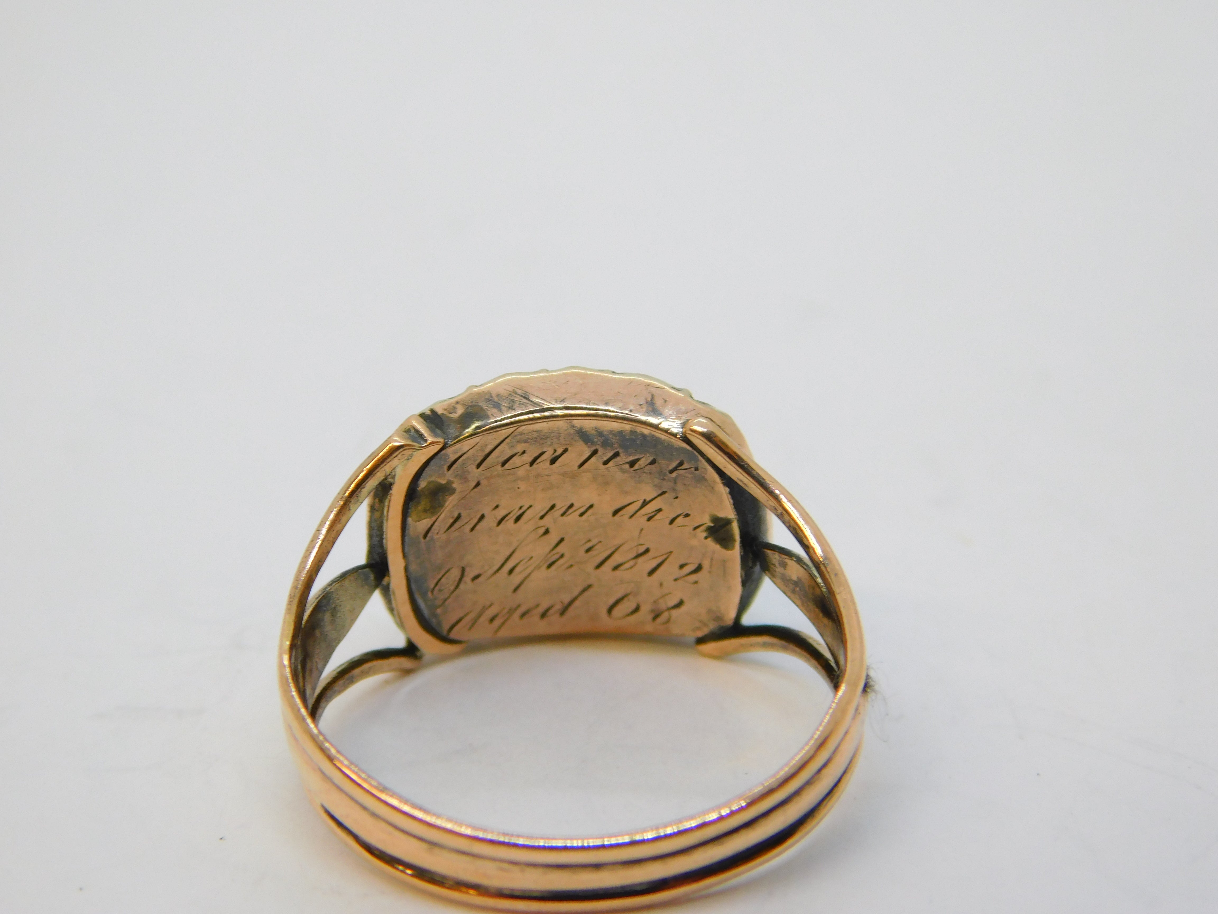Georgian 9ct Rose Gold, Turquoise Mourning Ring 'Dearest Brian, 1812' Antique