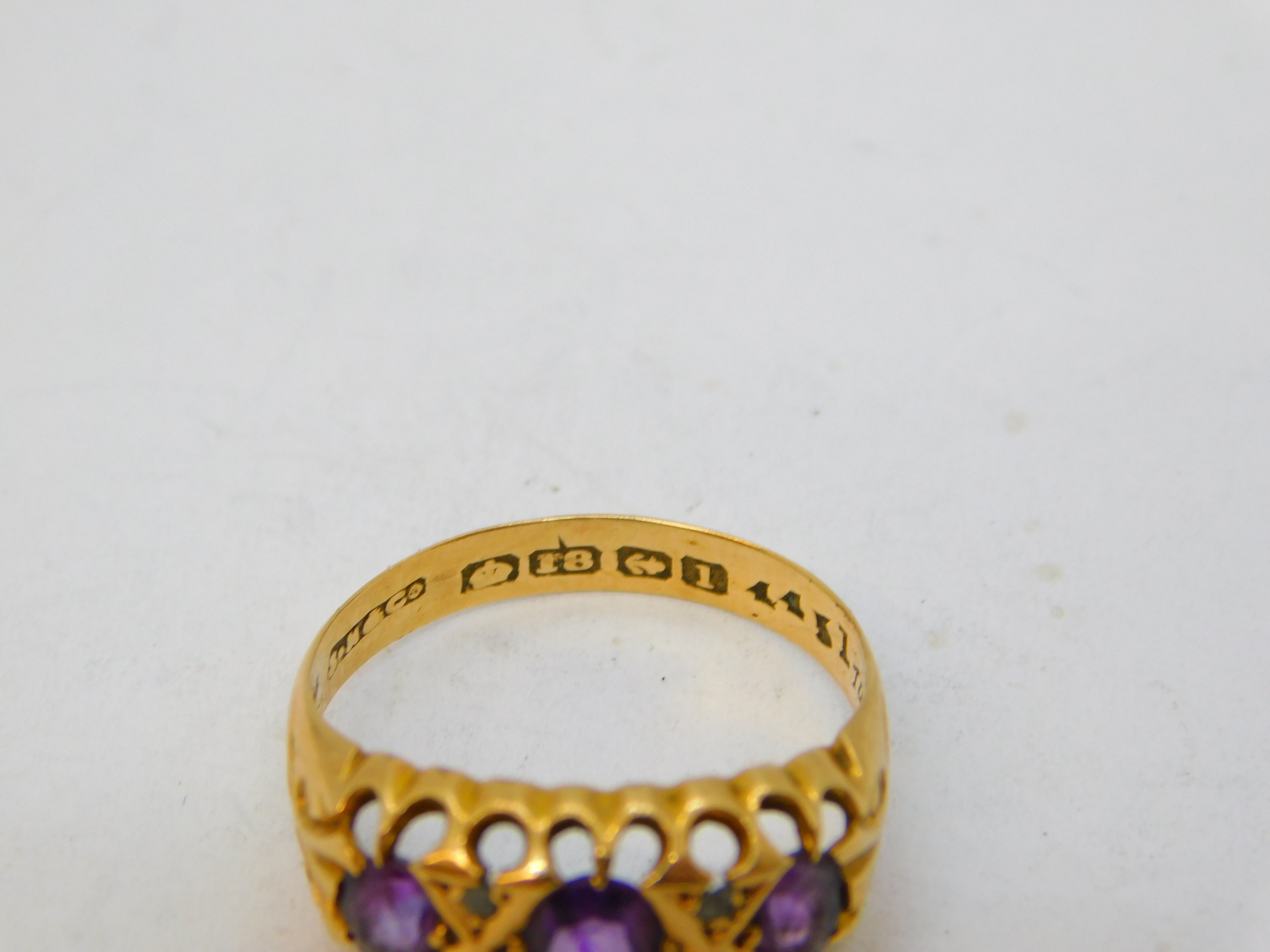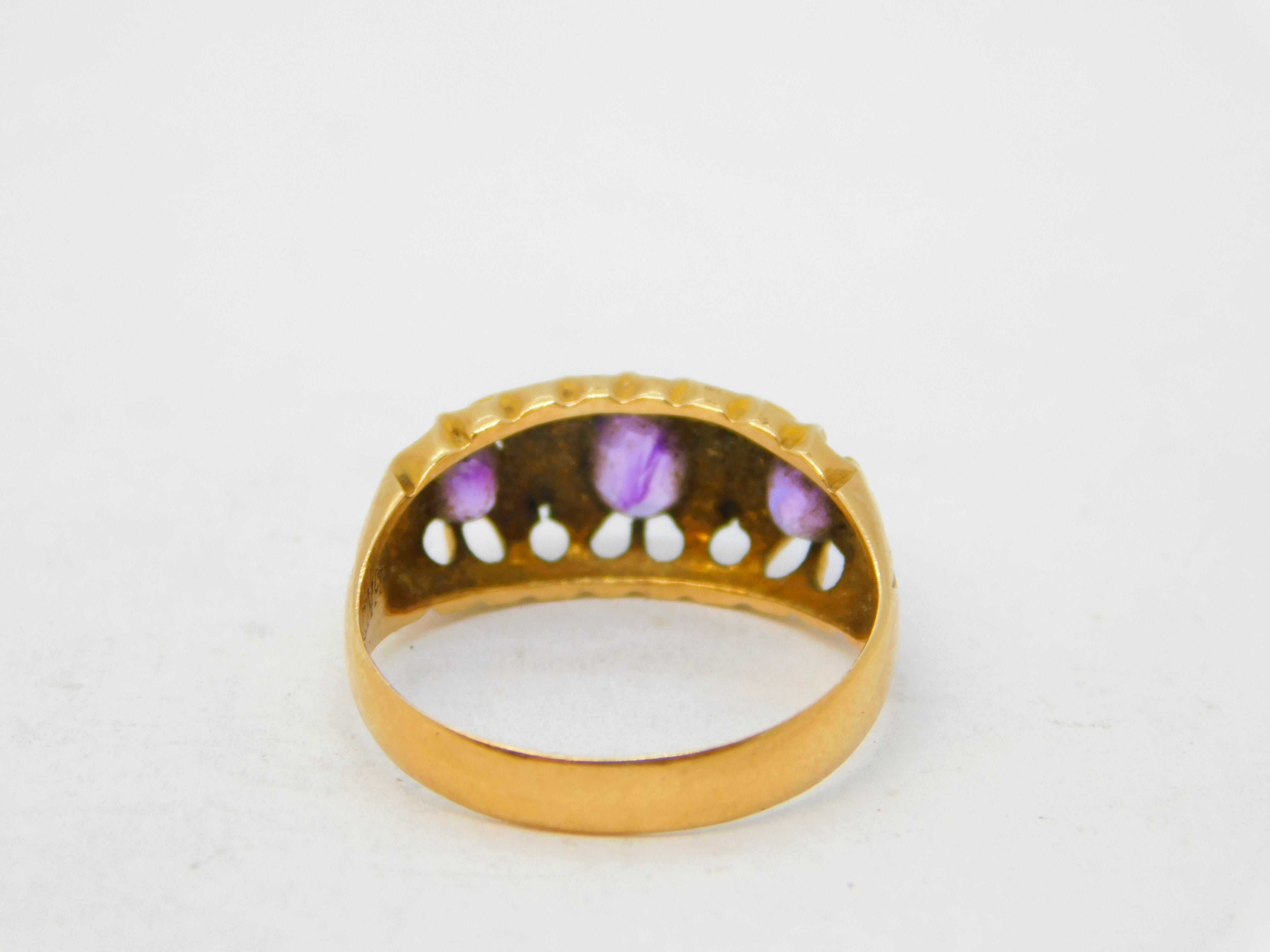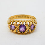 Sampson Mordan 18ct Gold, Amethyst & Diamond Boat Ring Antique Birmingham