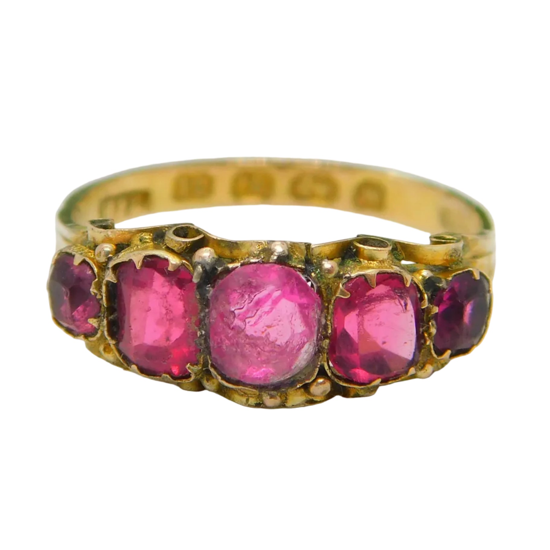 Victorian 12ct Yellow Gold Pink Paste Five-Stone Dress Ring 1871 Birmingham