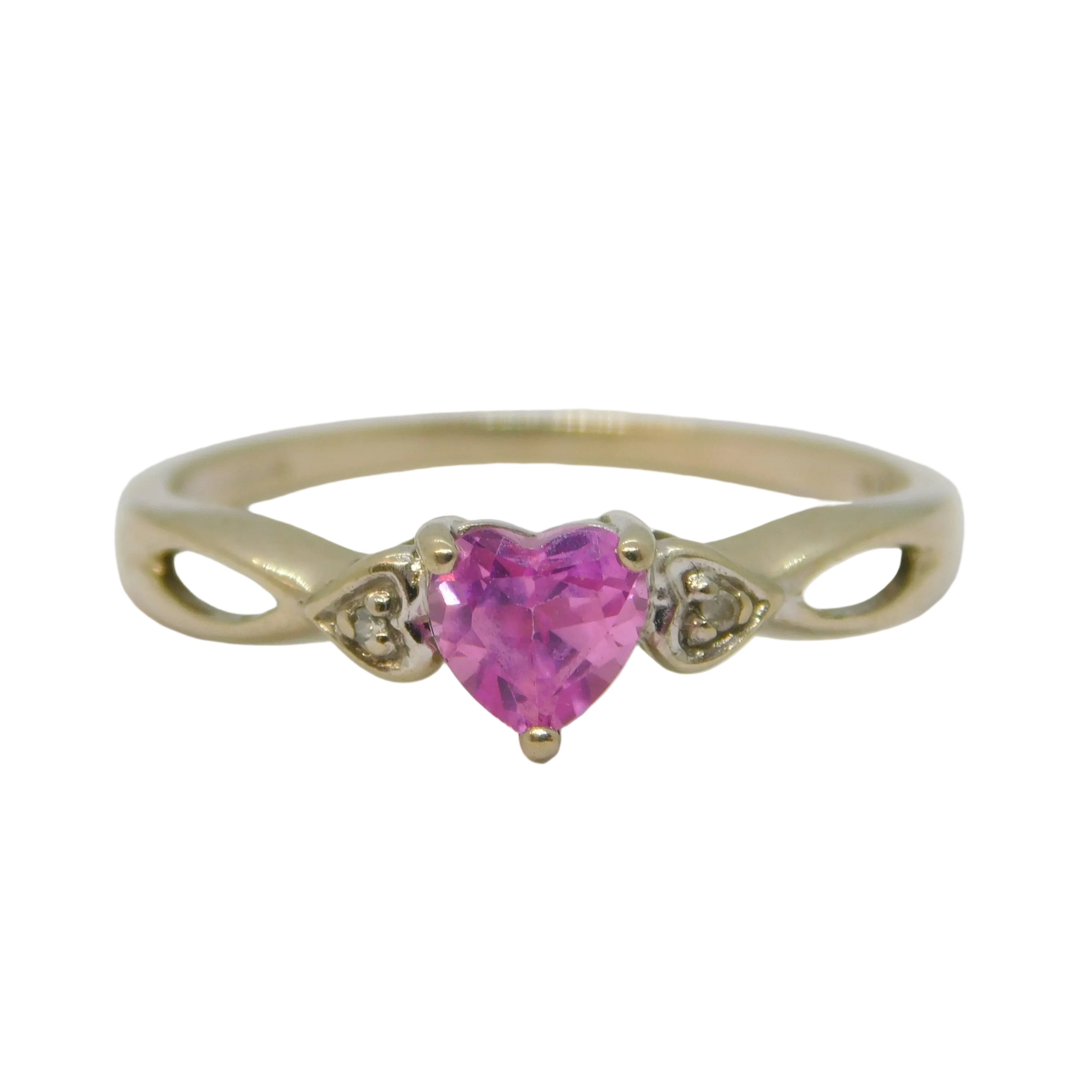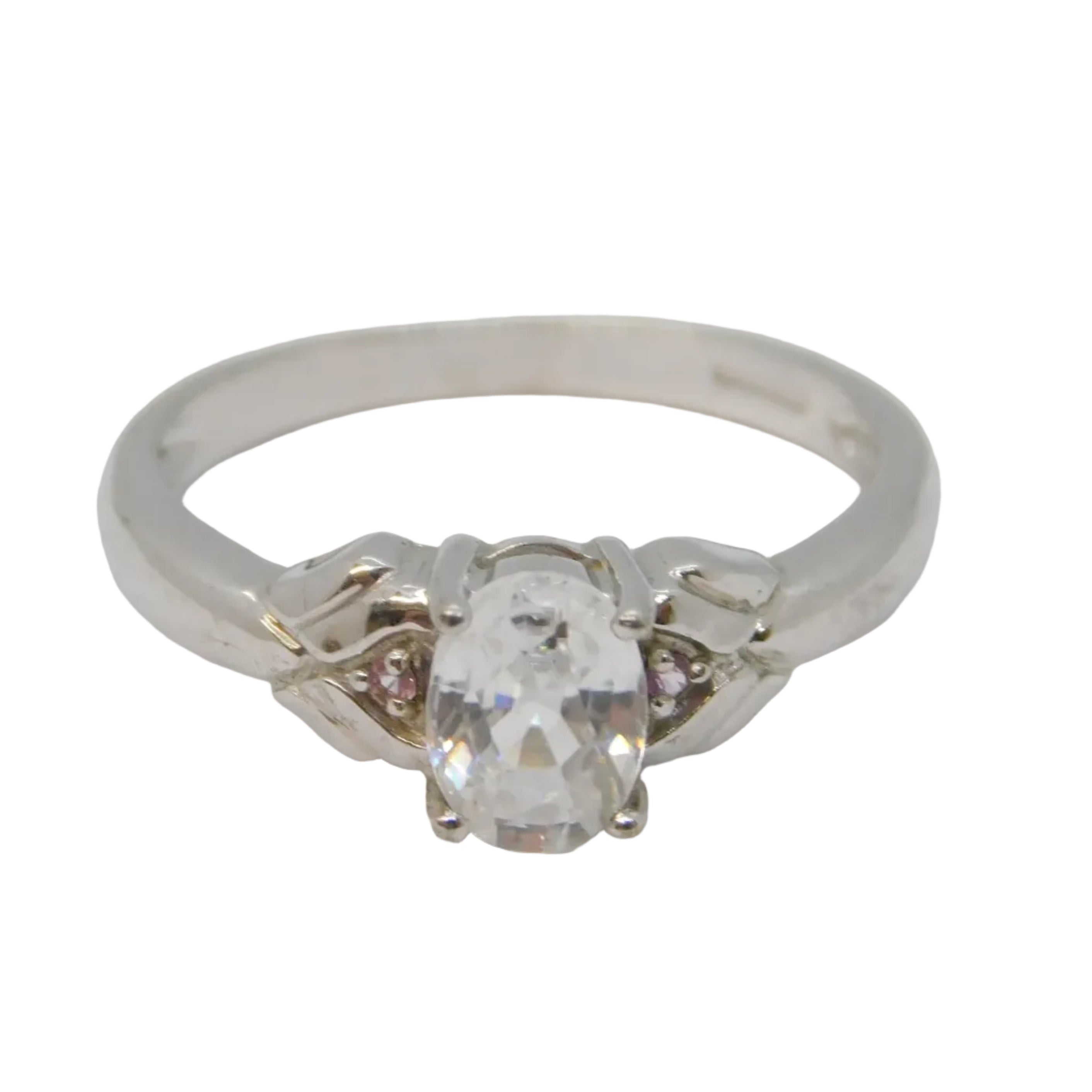 9ct White Gold Ice Zircon & Pink Sapphire Solitaire Ring Vintage c2000