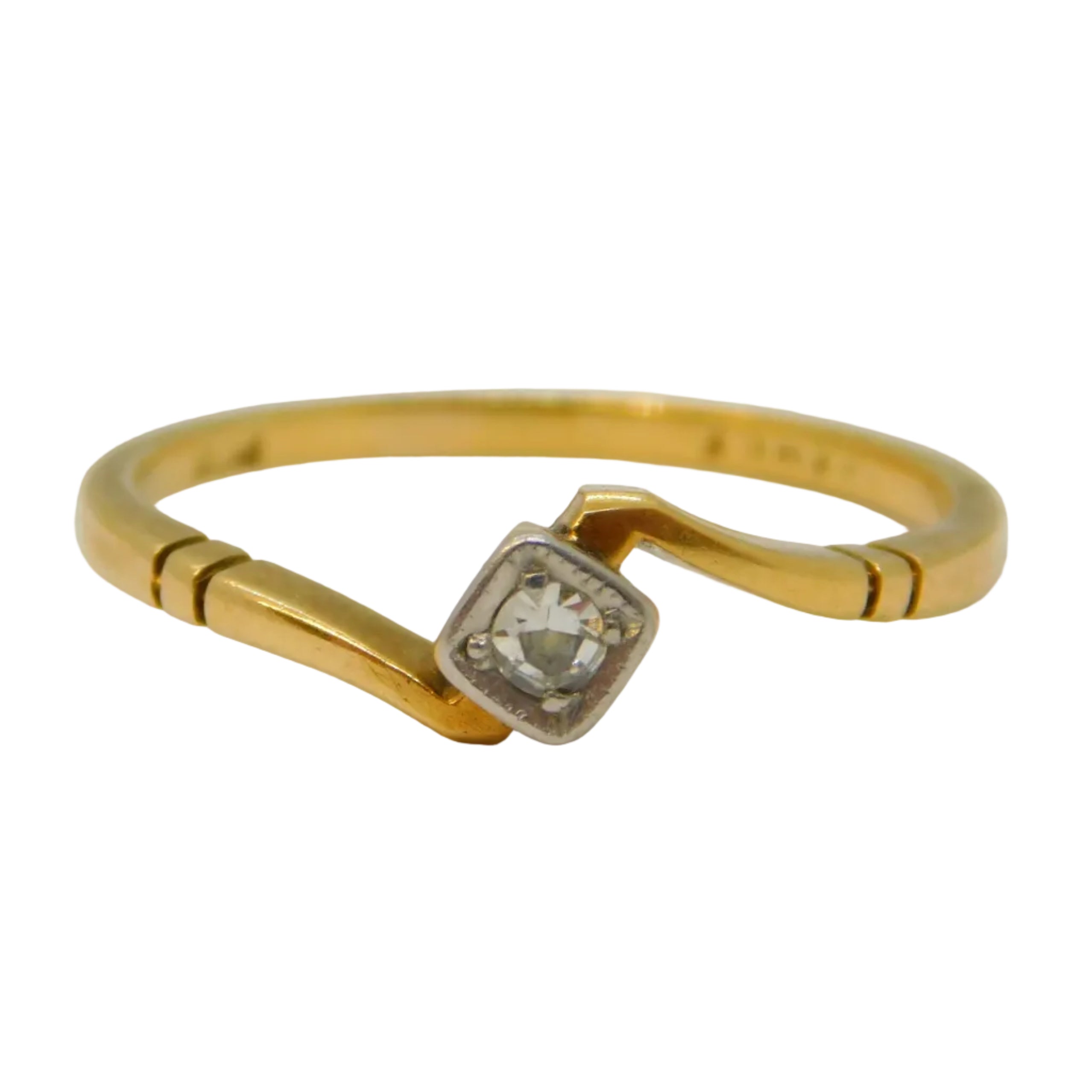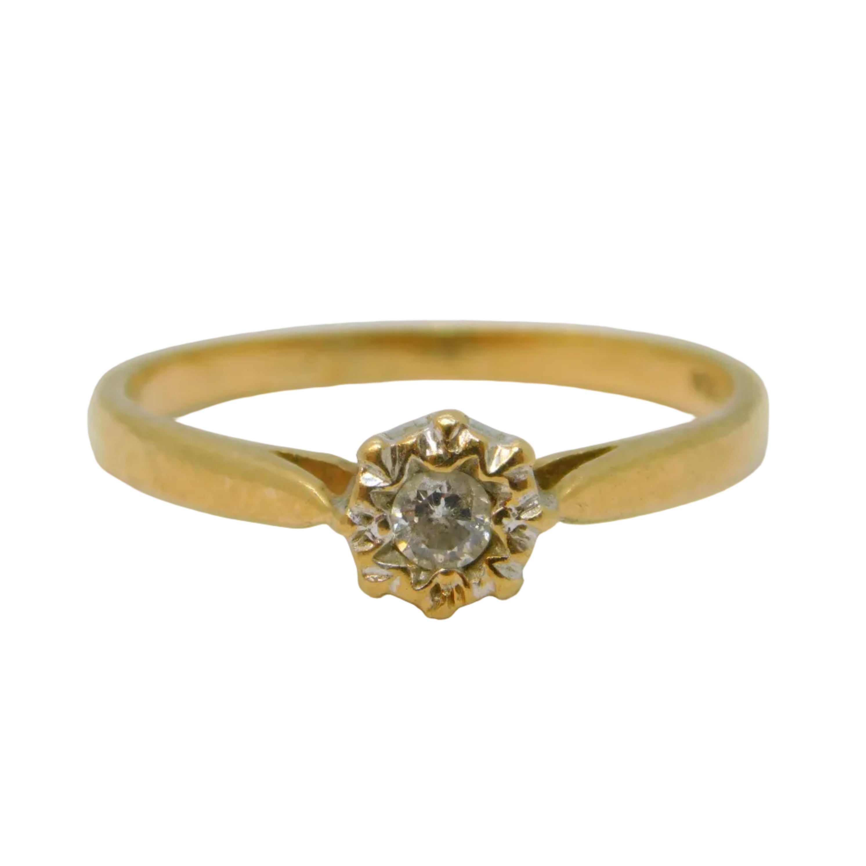 9ct Yellow Gold & 0.1ct Diamond Solitaire Ring Vintage c1970