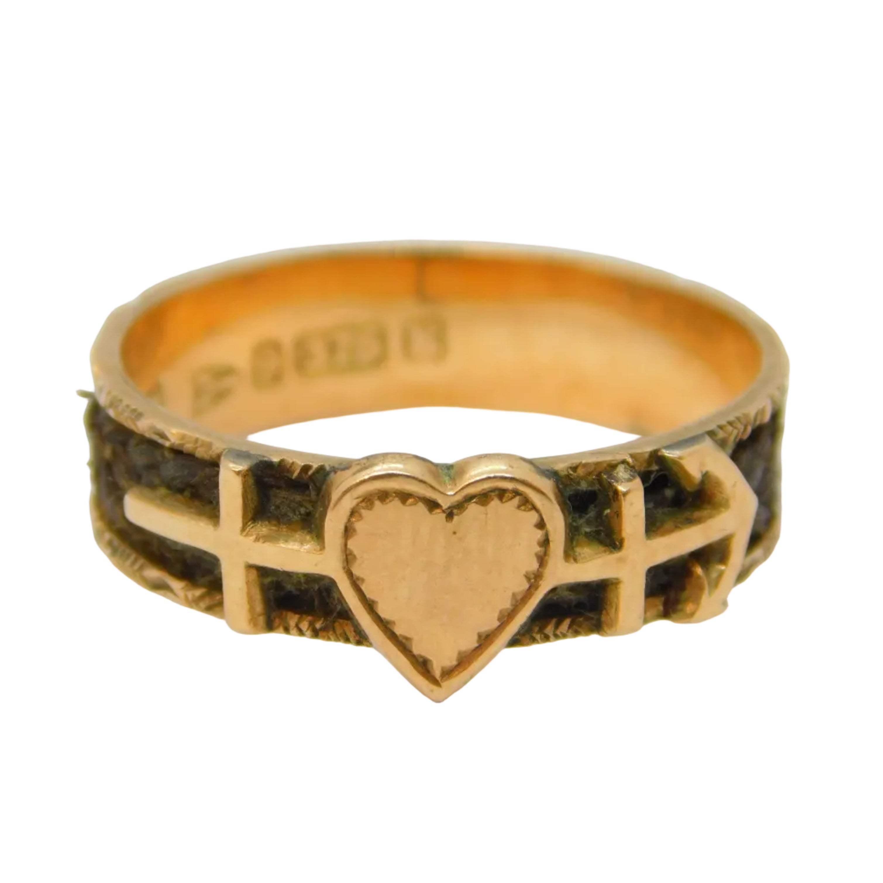 Victorian 9ct Gold 'Faith, Hope, Charity' Hair Weave Mourning Ring Antique 1893