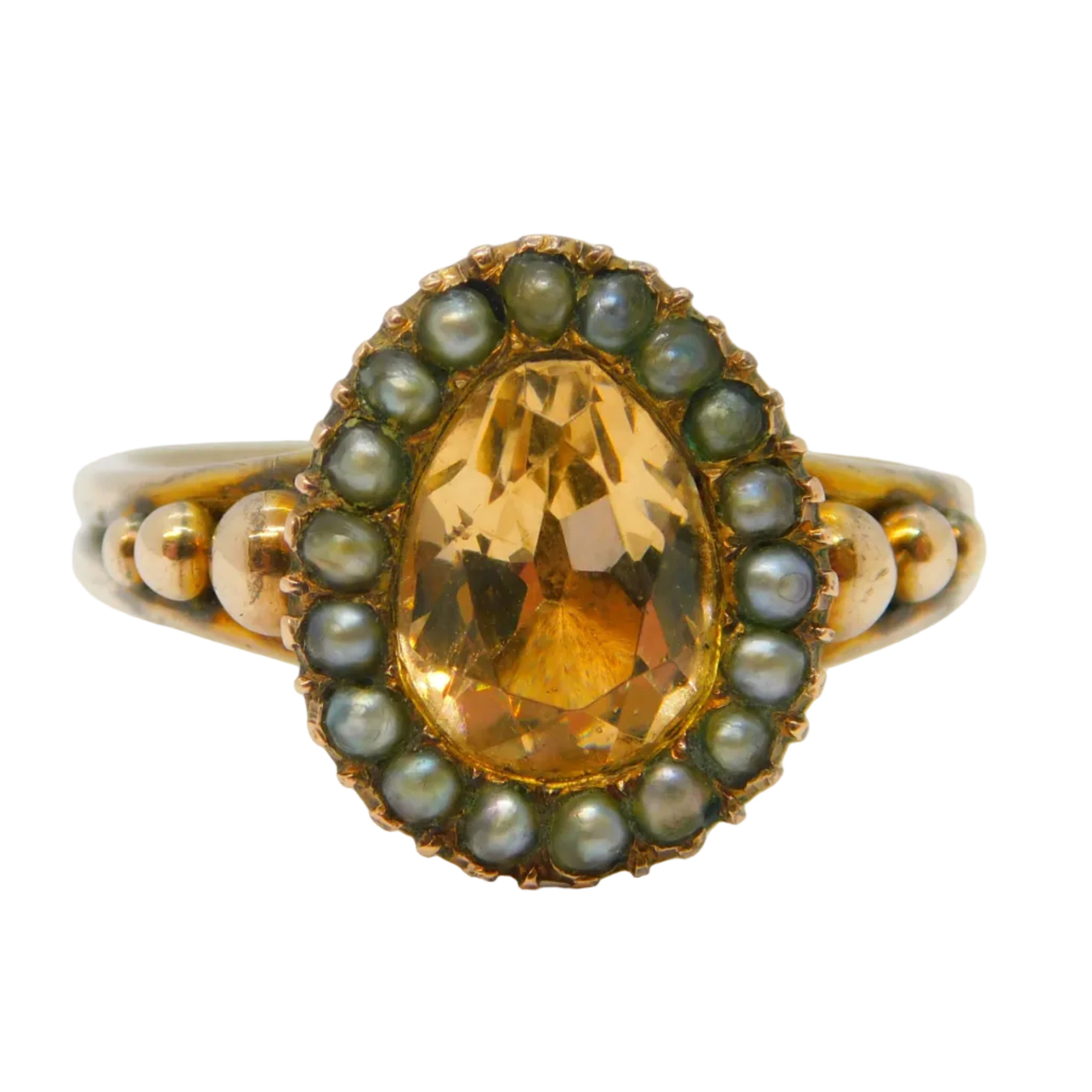 George III 9ct Gold Foil Back Paste & Seed Pearl Pear Shaped Ring Antique c1790