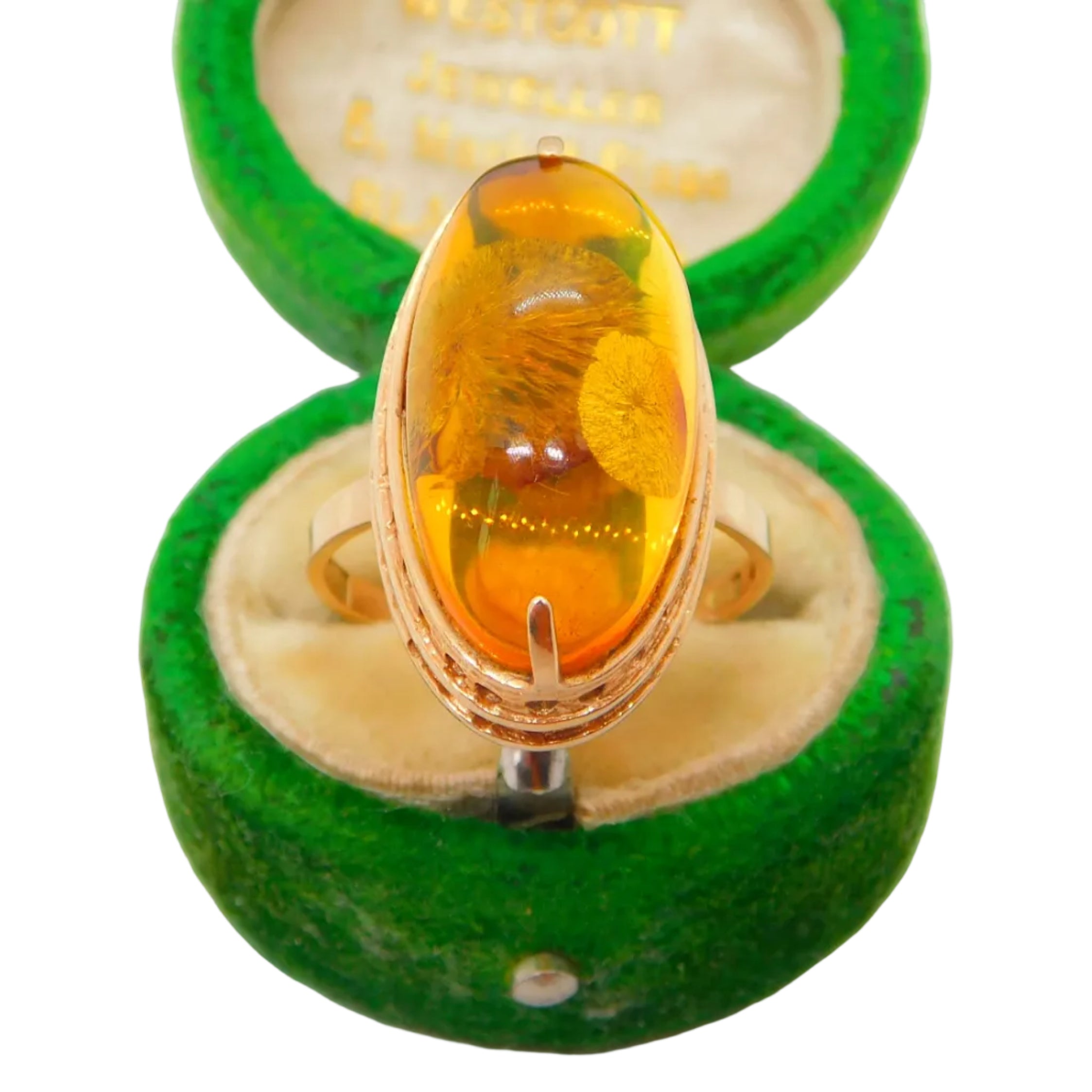 14ct Yellow Gold Large Cabochon Baltic Amber Signet Ring Vintage c1980